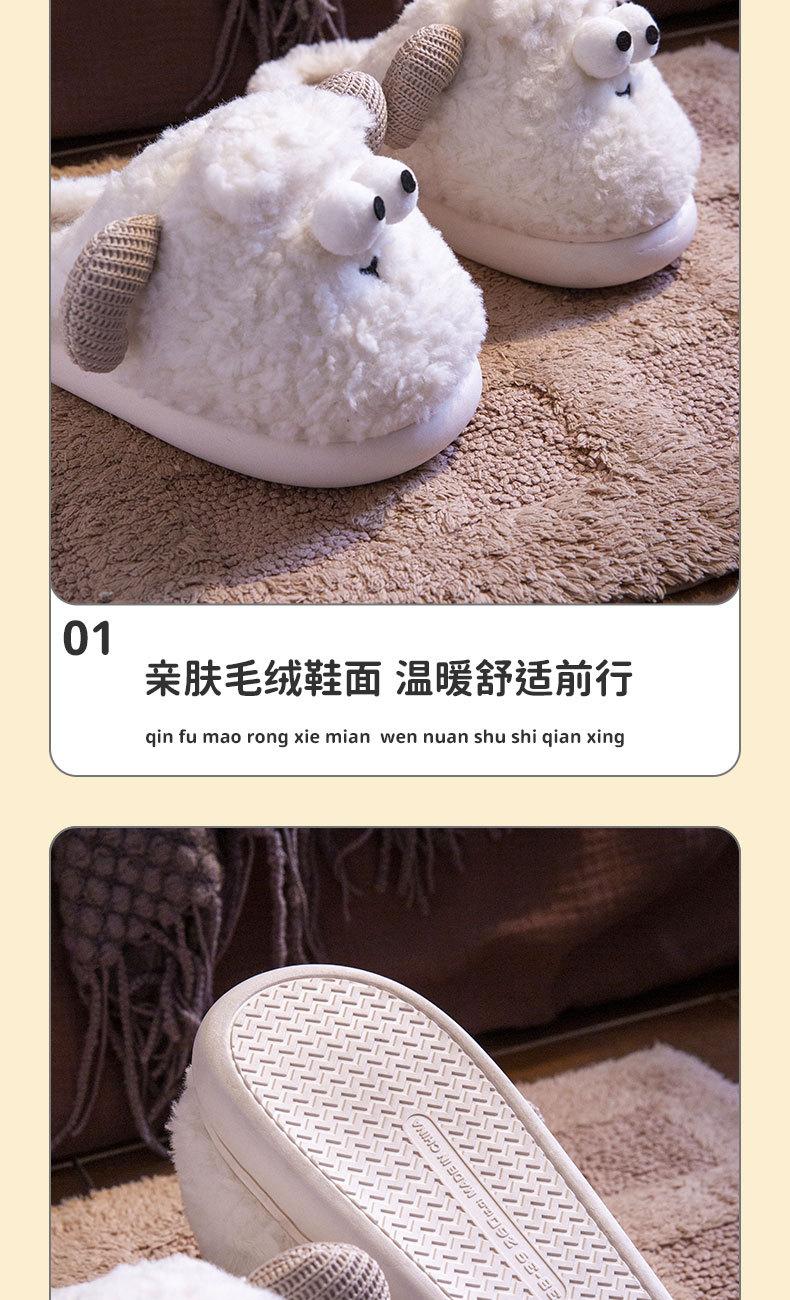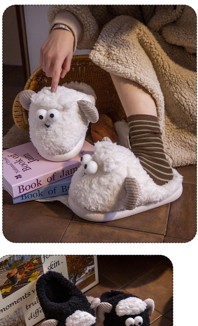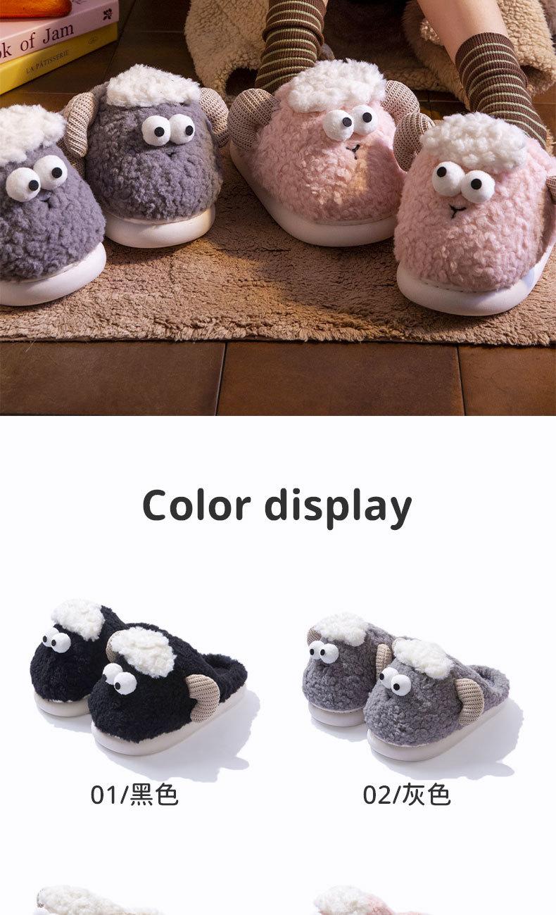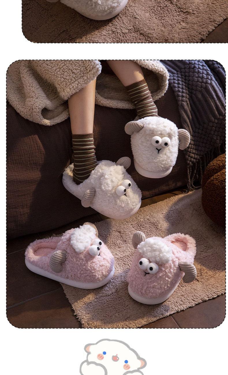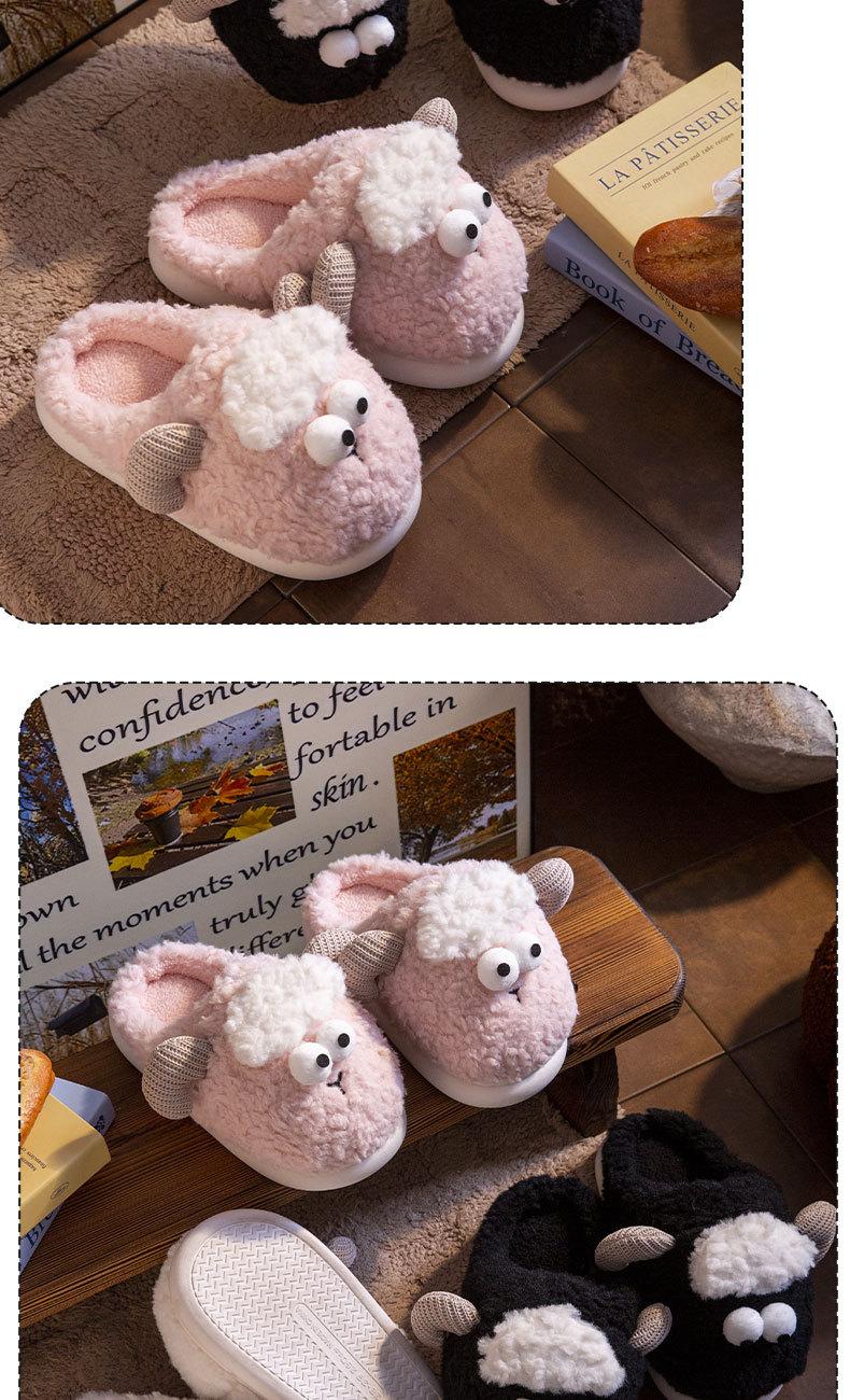 Pantuflas de Algodón de Oveja de Dibujos Animados para Mujer Invierno Pareja Hogar Interior Engrosadas Cálidas de Felpa Hombres Otoño