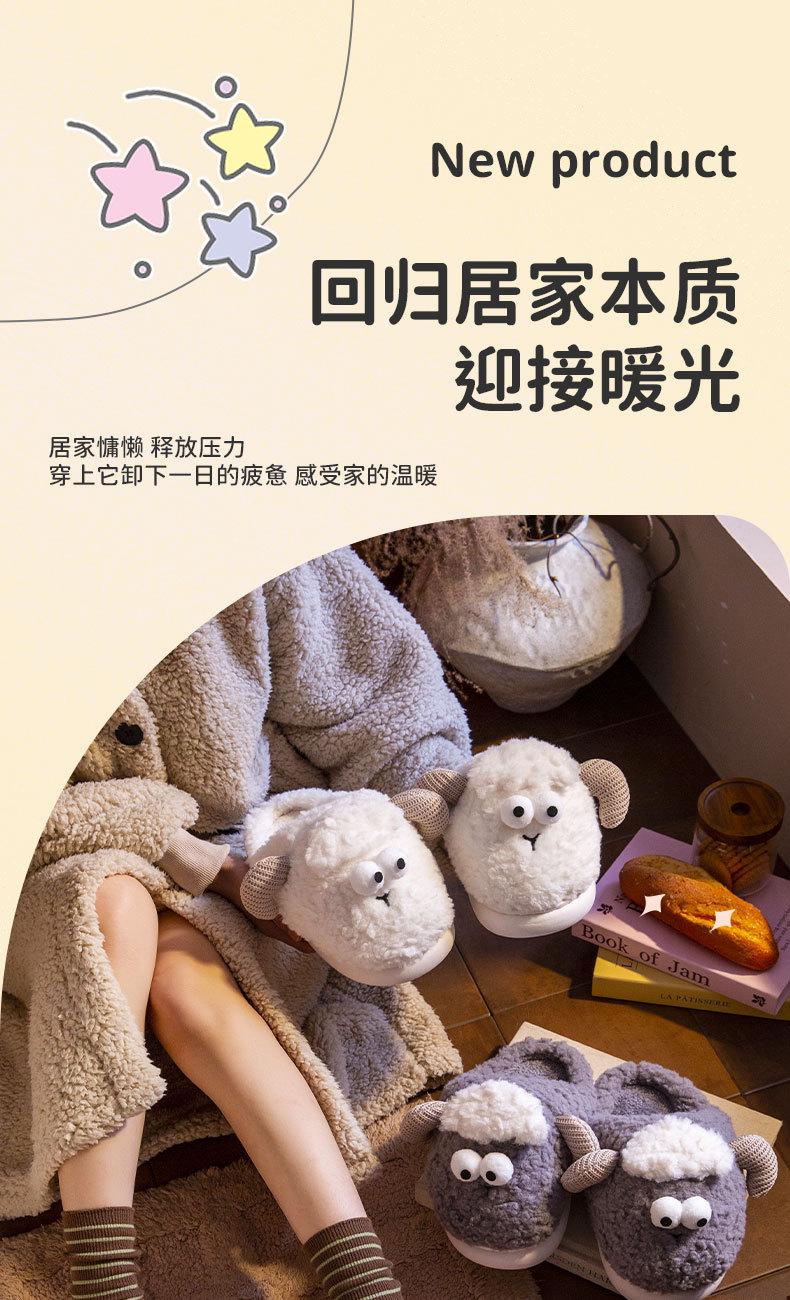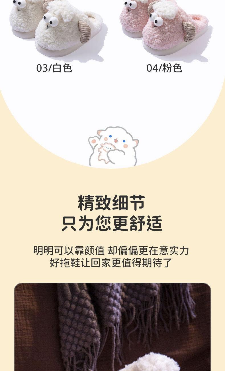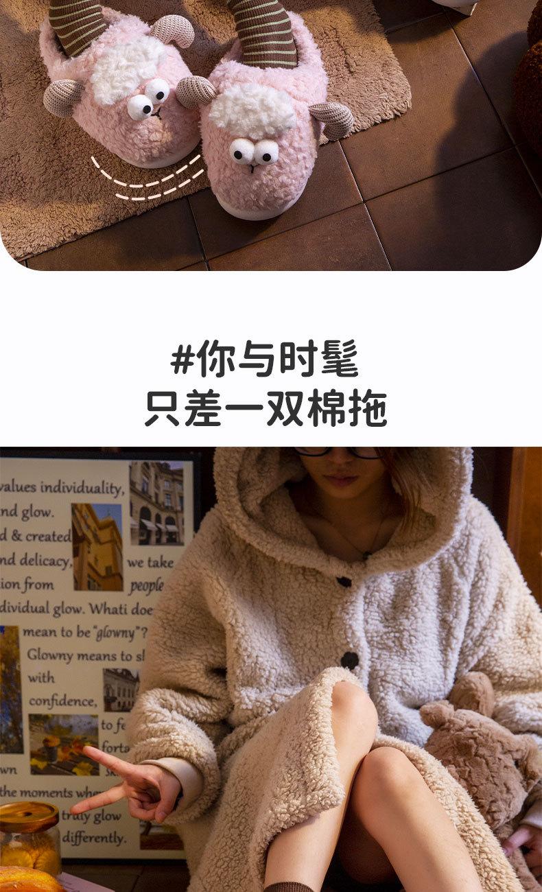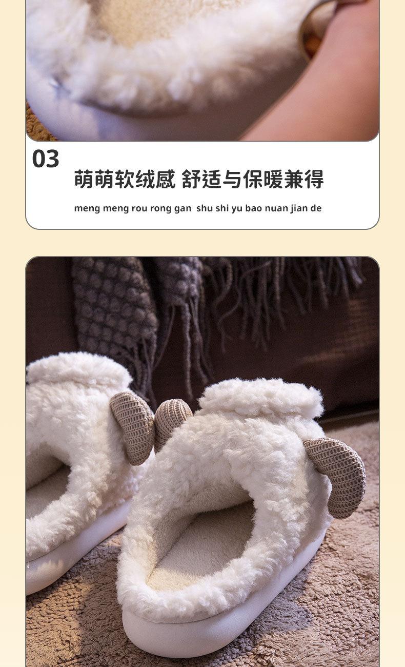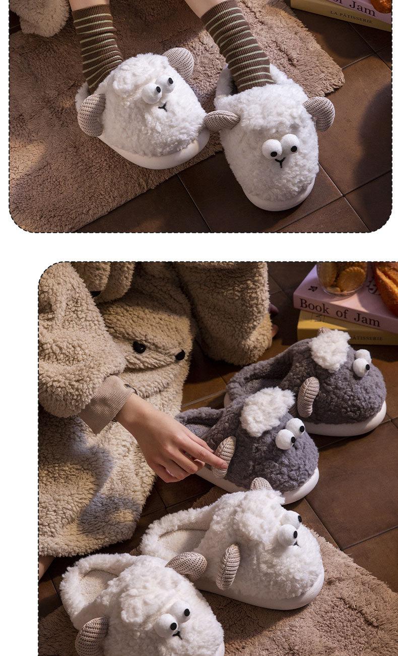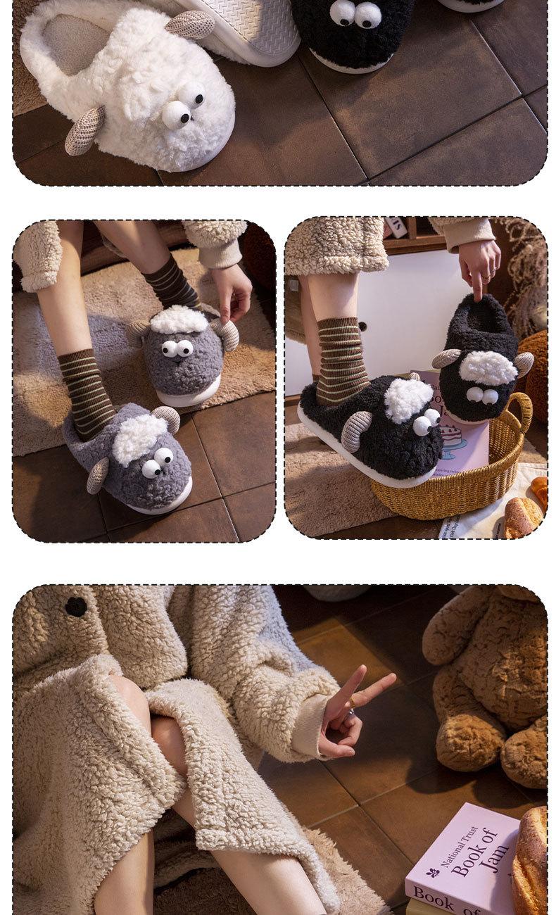 Pantuflas de Algodón de Oveja de Dibujos Animados para Mujer Invierno Pareja Hogar Interior Engrosadas Cálidas de Felpa Hombres Otoño