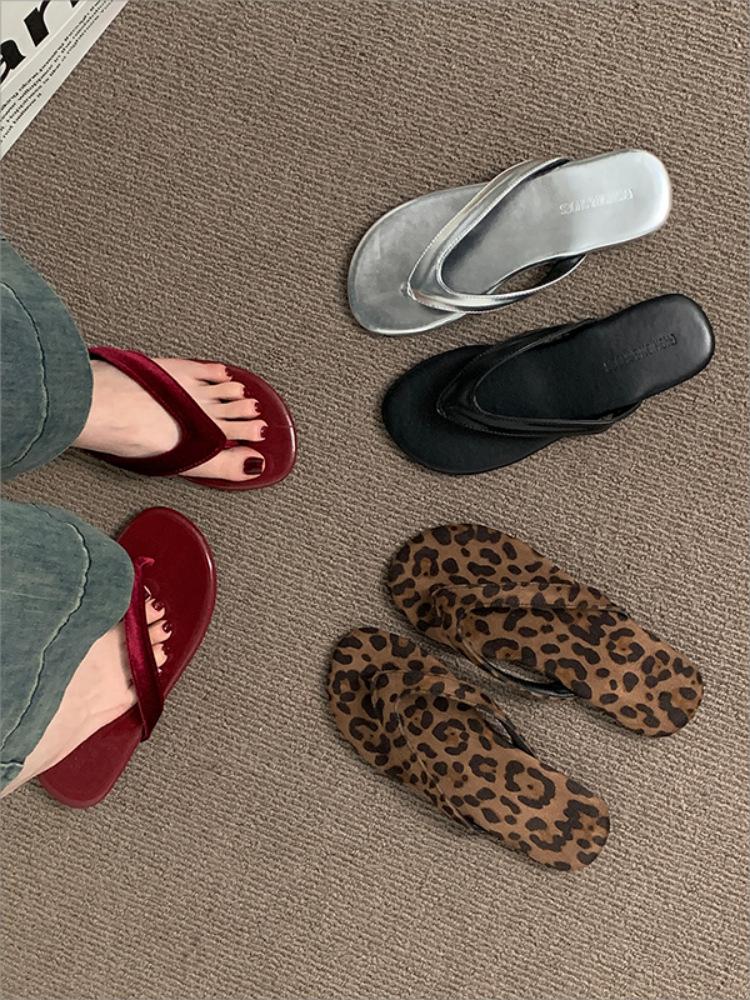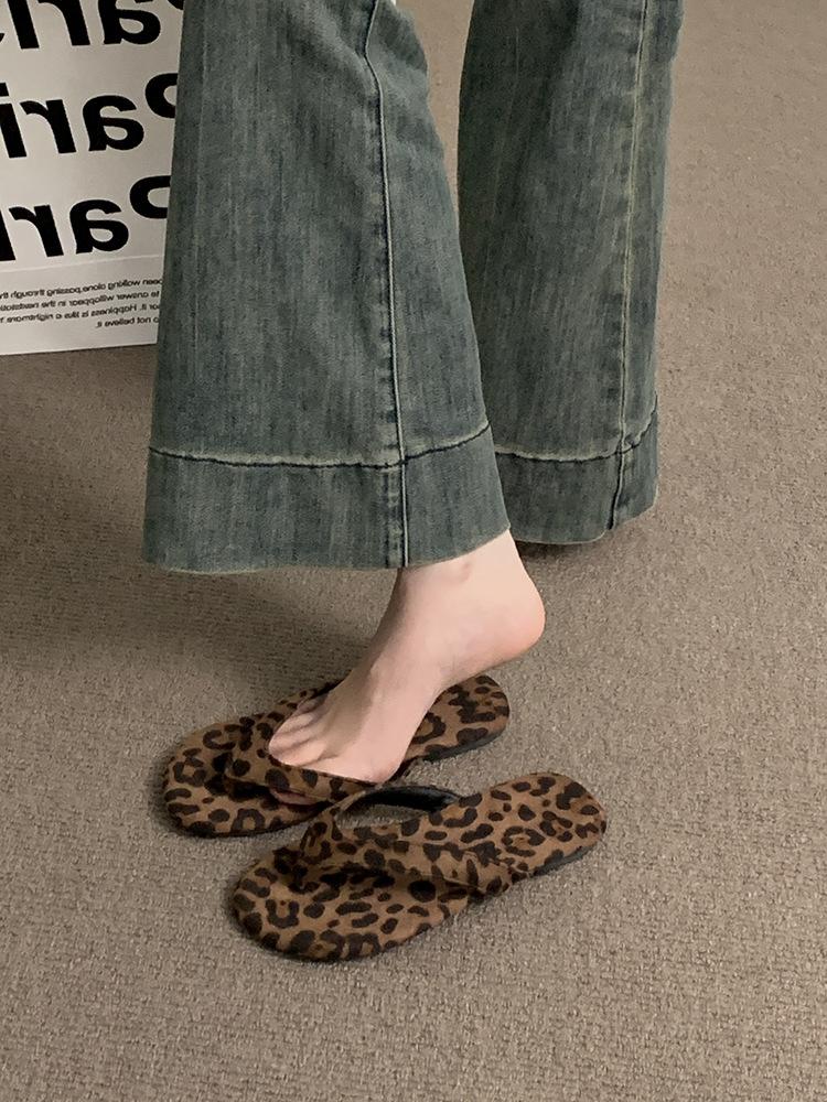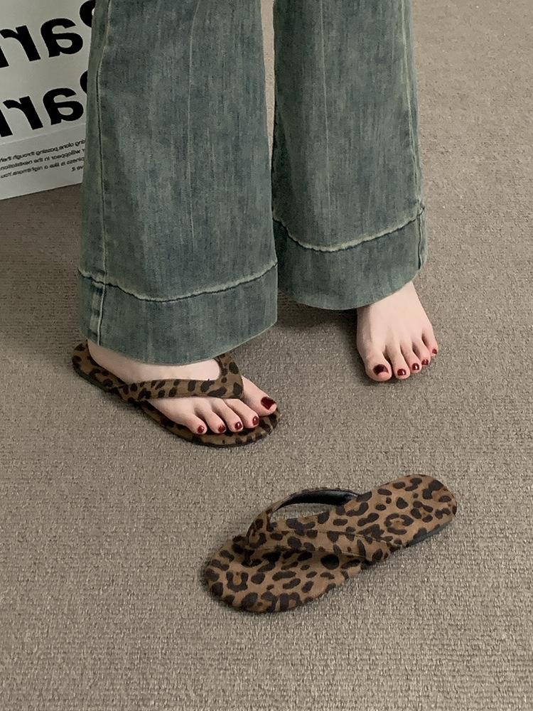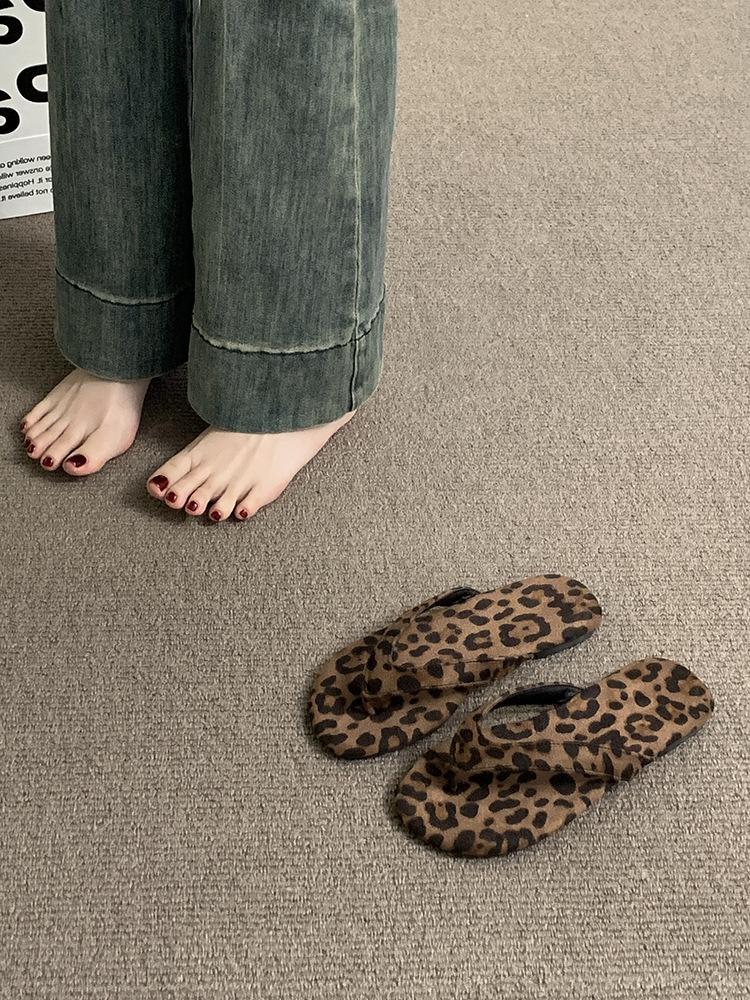 Moda Ins Chanclas Planas para Mujer Verano para Exterior Estampado Leopardo Sandalias y Pantuflas Chanclas para la Playa Zapatos de Mujer