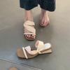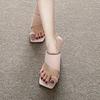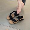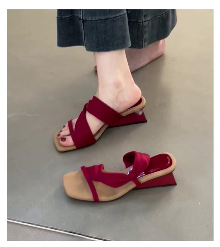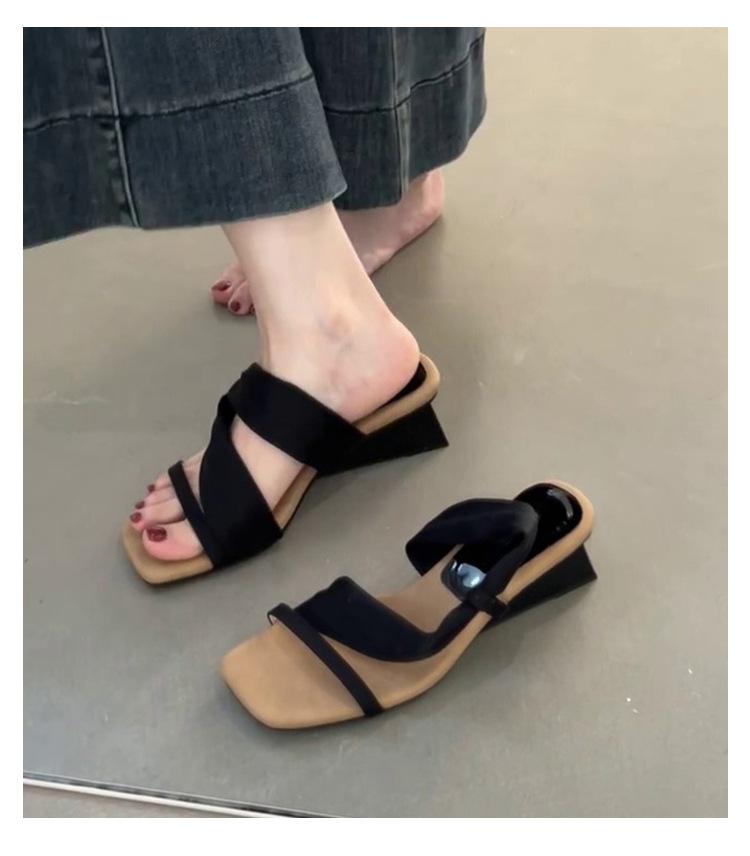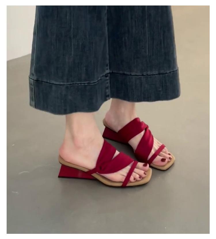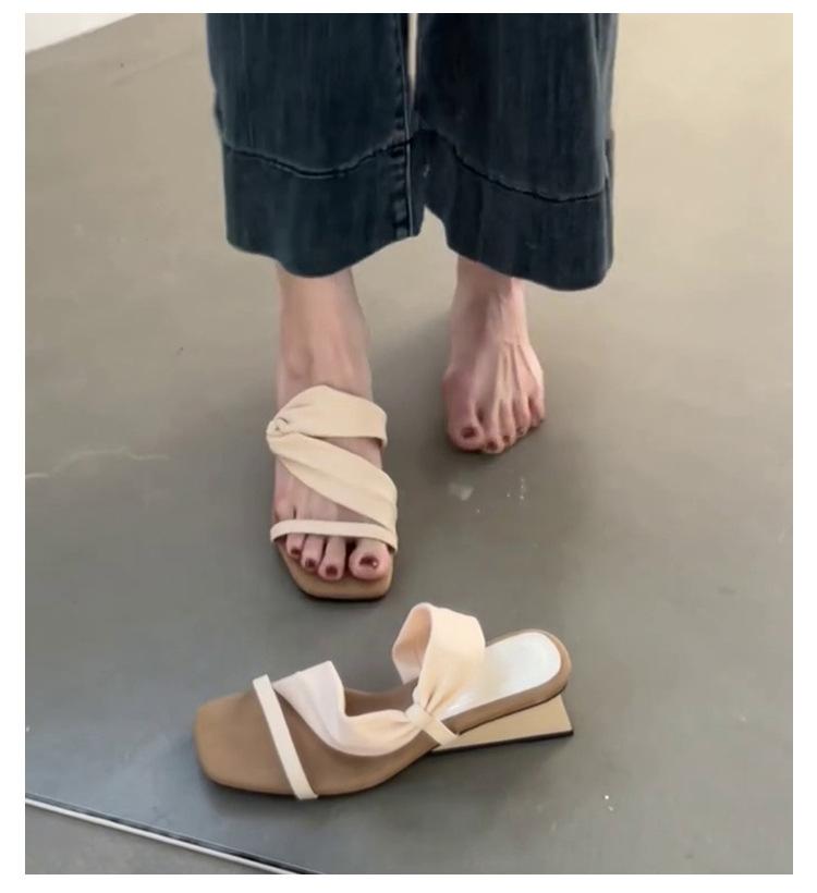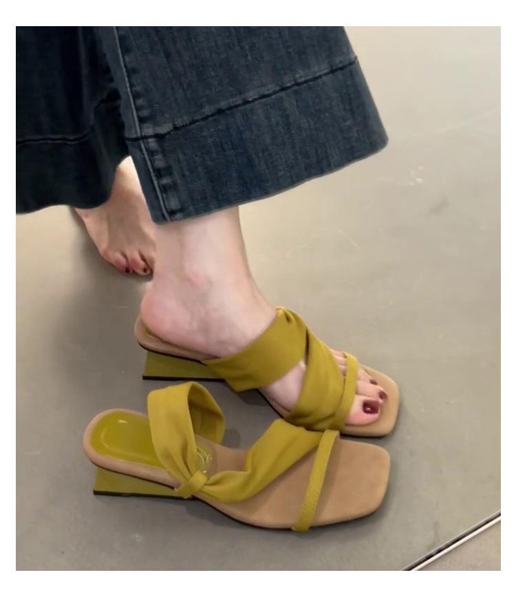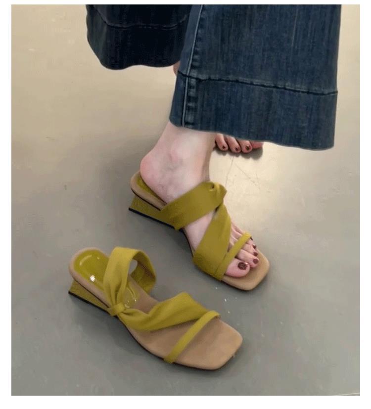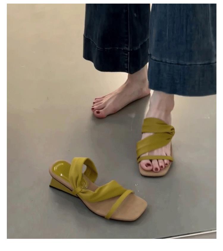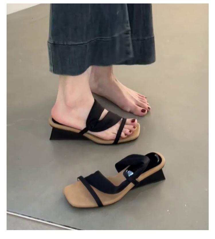 Sandalias de Cuña Estilo Francés Punta Cuadrada para Mujer, Pantuflas de una Tira, Punta Abierta con Falda, Sandalias de Tacón Alto