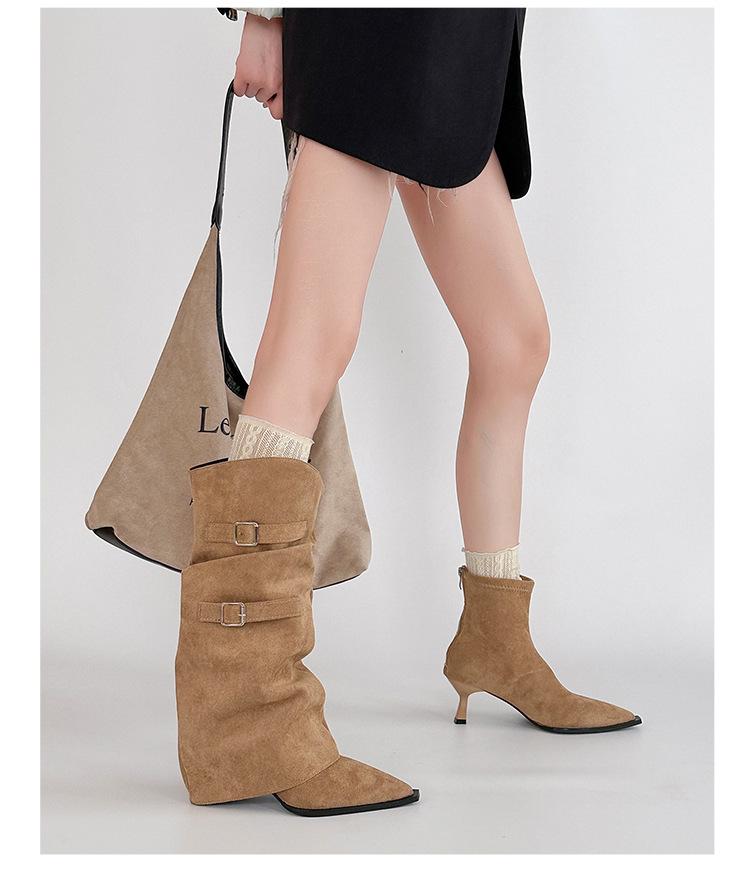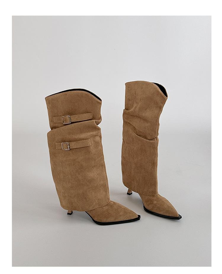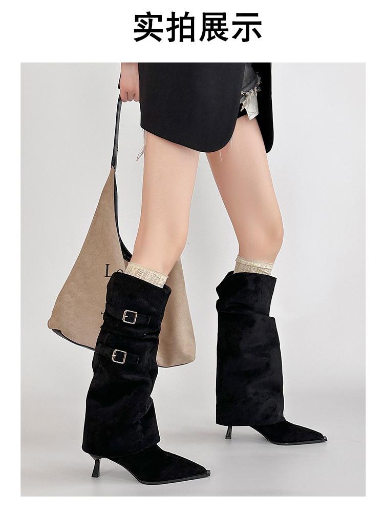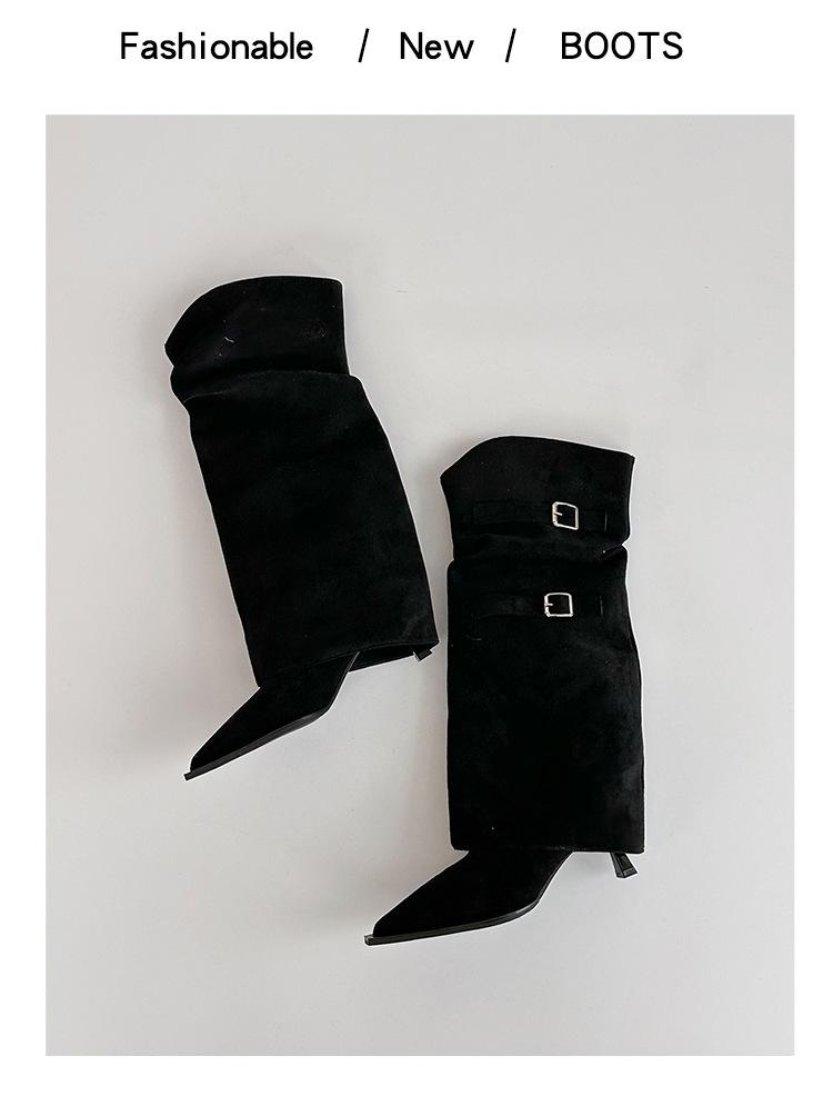 Tribu de Moda Sentido del Diseño Retro Hebilla de Cinturón Puntera Puntiaguda Botas Altas hasta la Rodilla Mujer 2025 Otoño/Invierno Nuevo Estilo Botas de Tacón Alto de Aguja