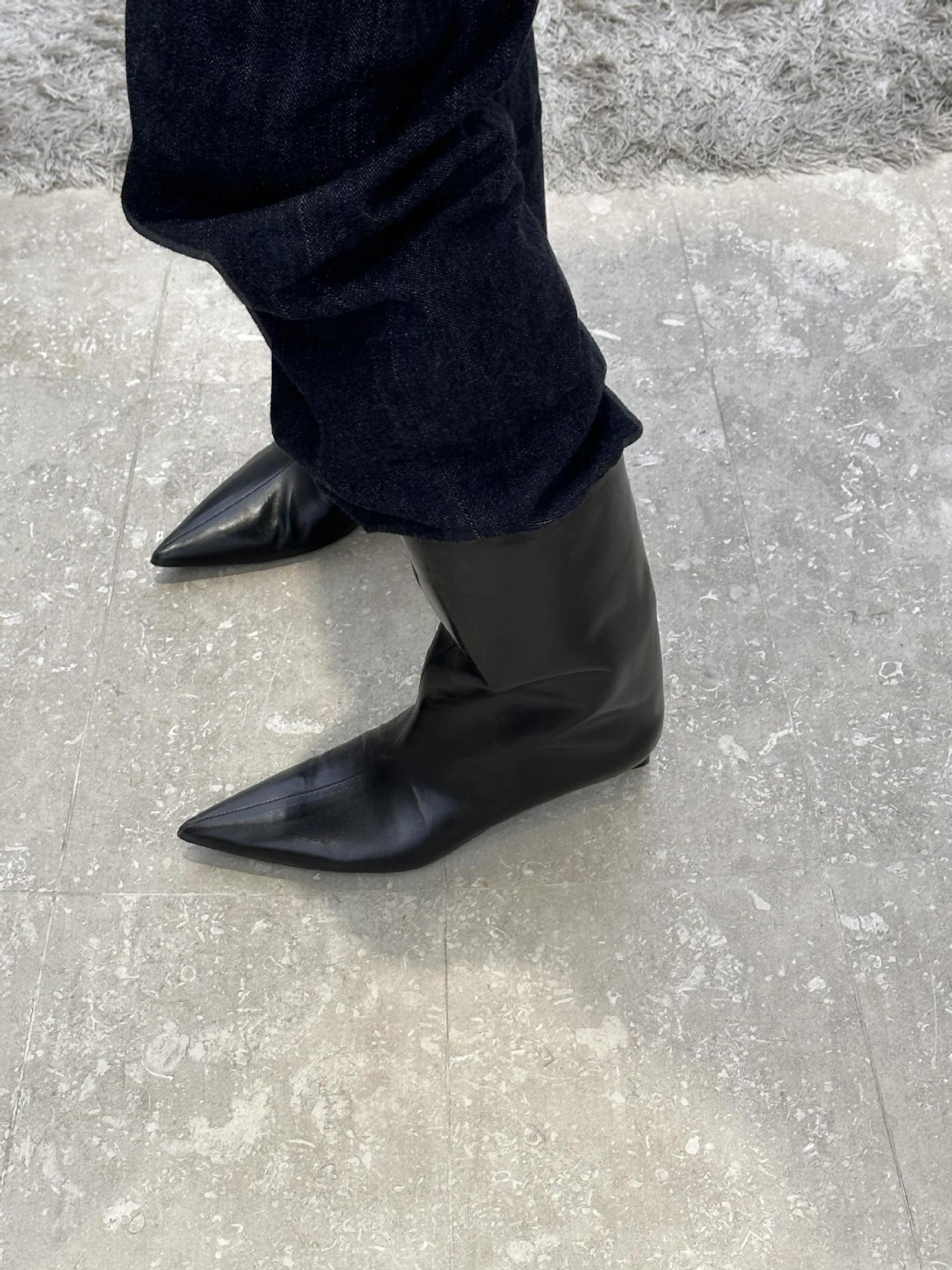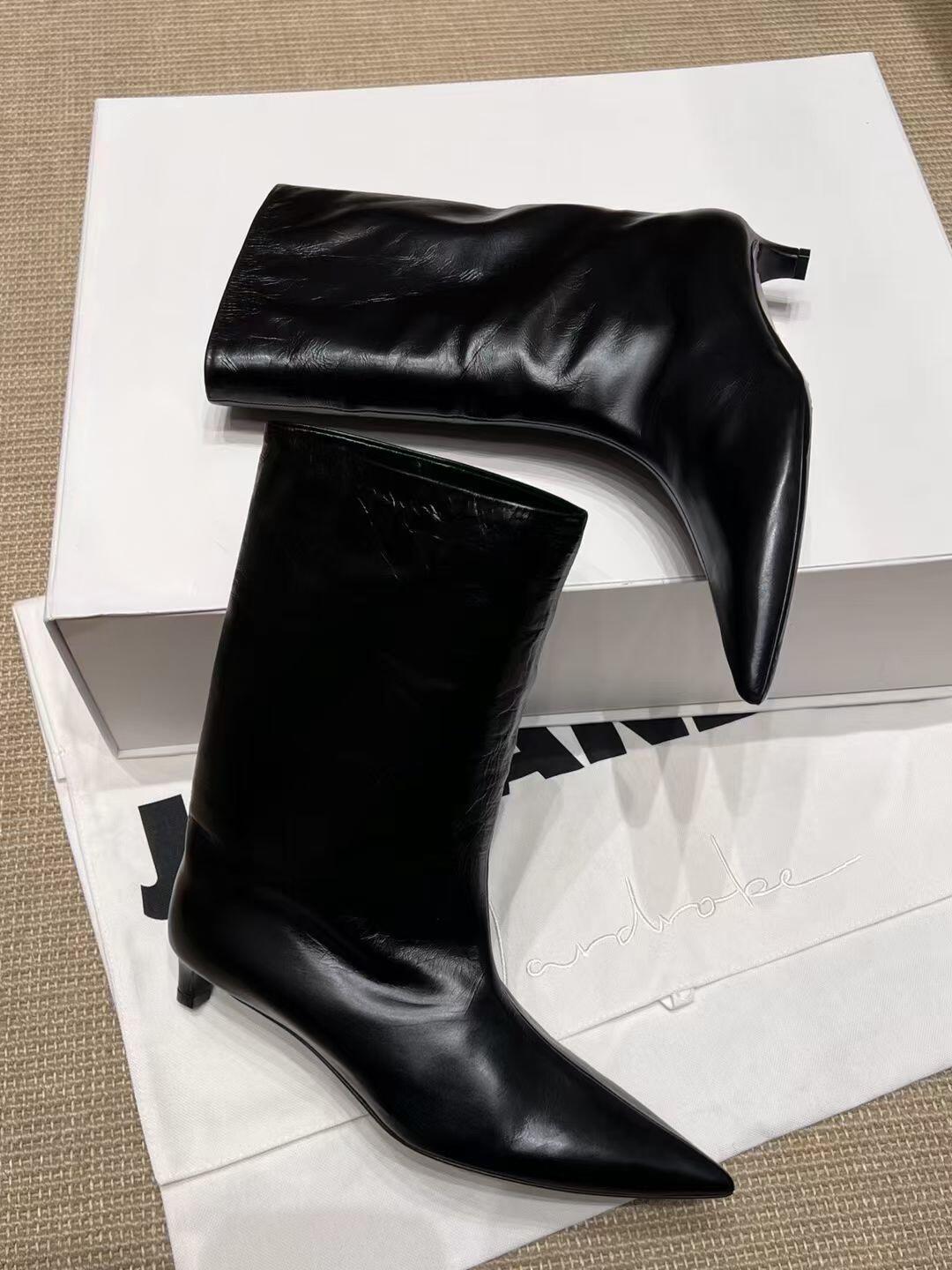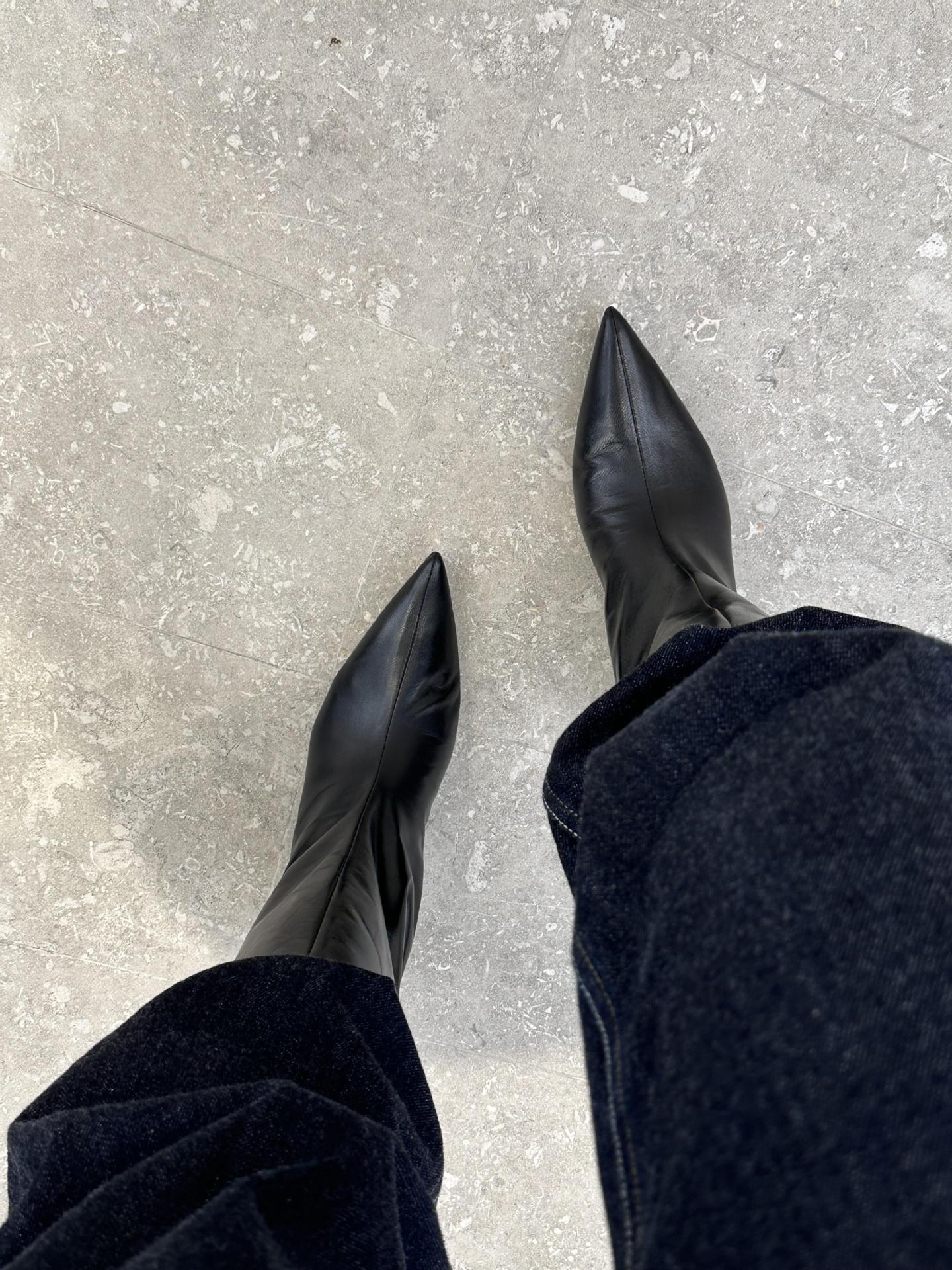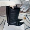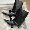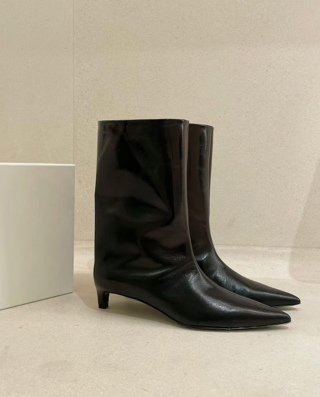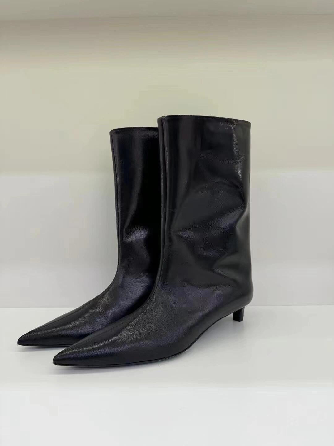 Versión de piel de oveja~Botas de media caña de tacón alto con punta afilada de cuero genuino a la moda para mujer, botas pequeñas de tobillo de pantorrilla ancha francesas, botas cortas de caballero, botas Martin