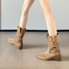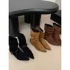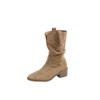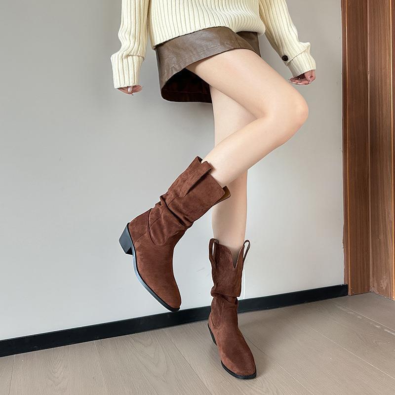 2025 Nuevas Botas Slouchy de Punta Botines Tacón Alto Vintage Superb Western Caballero Botas Boca en V Media Caña Mujer