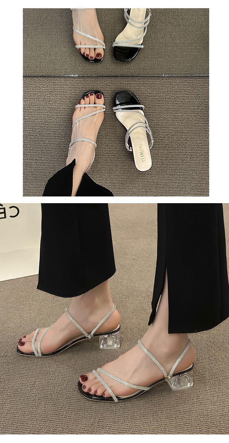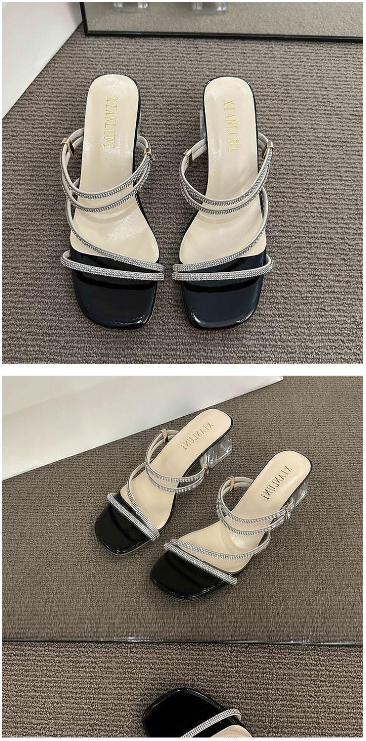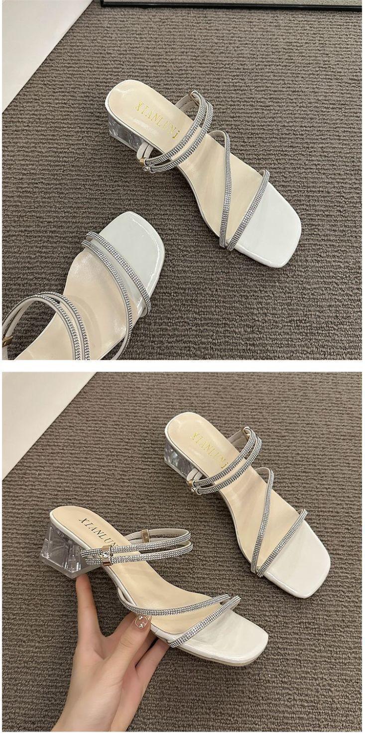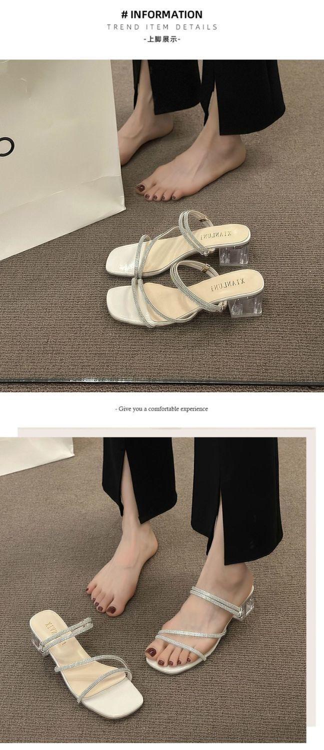 Sandalias de Cristal de Diseño Francés Viento Moda Dos Usos Zapatillas Elegantes Estilo Pequeño Fragante Primavera/Verano Pedrería Hada Nuevo