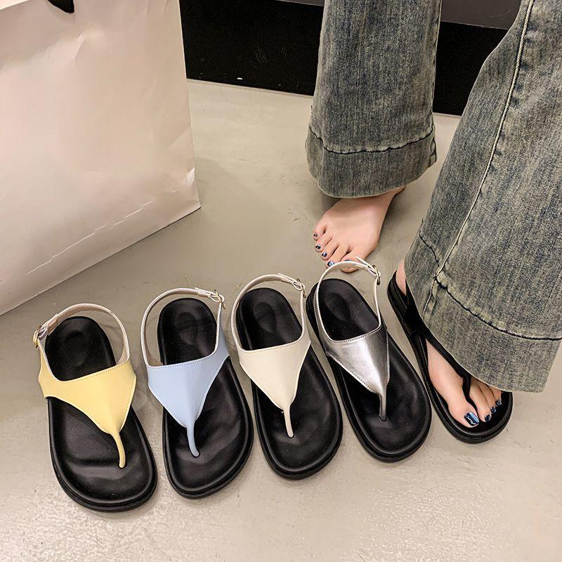 Sandalias planas retro estilo coreano para mujer verano 2025 nueva moda casual versátiles sandalias de playa para mujer