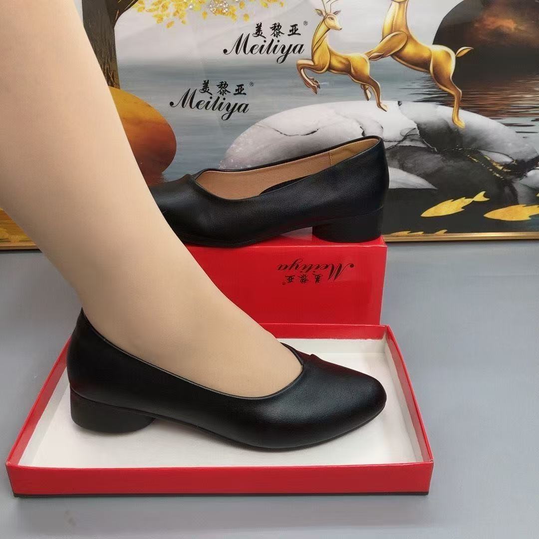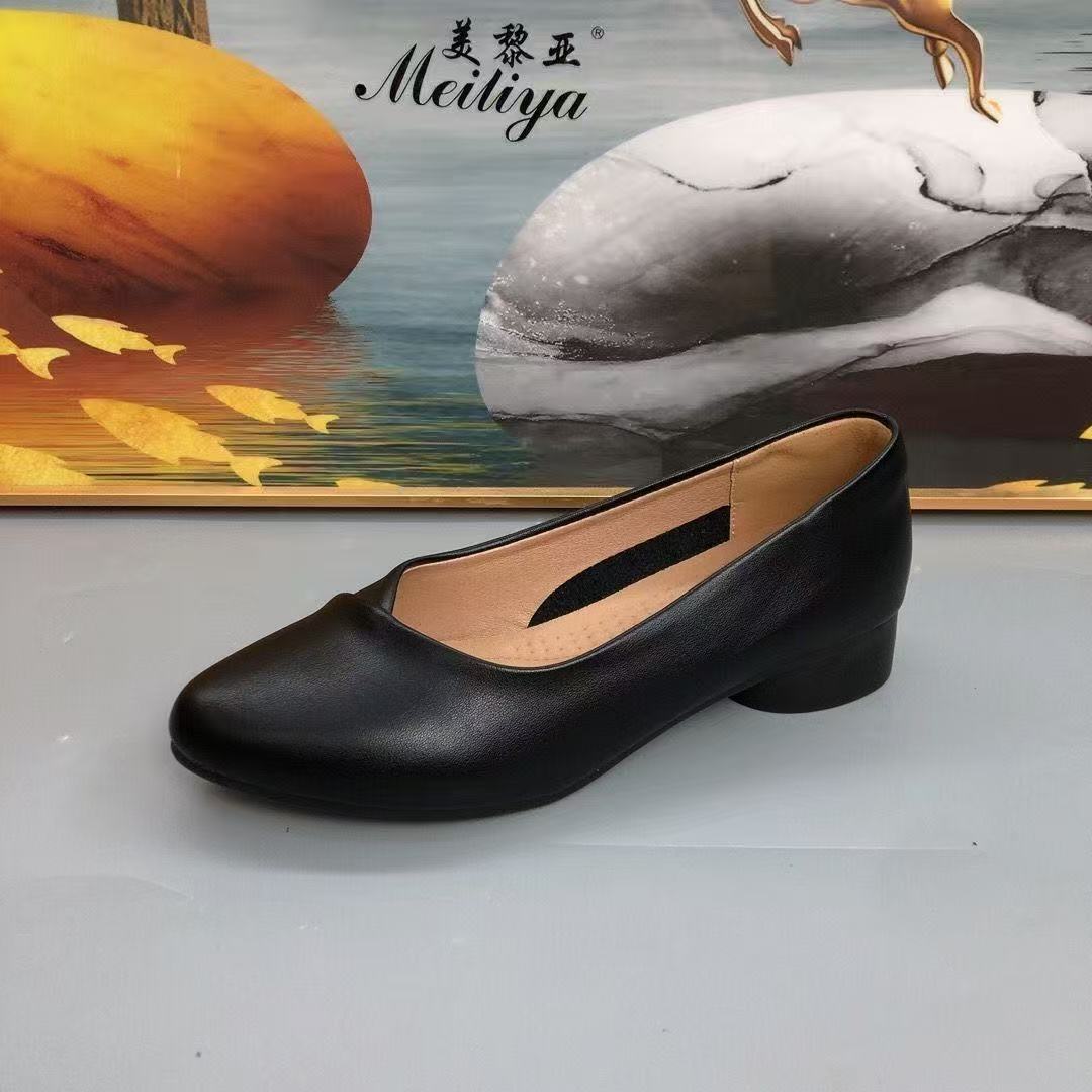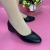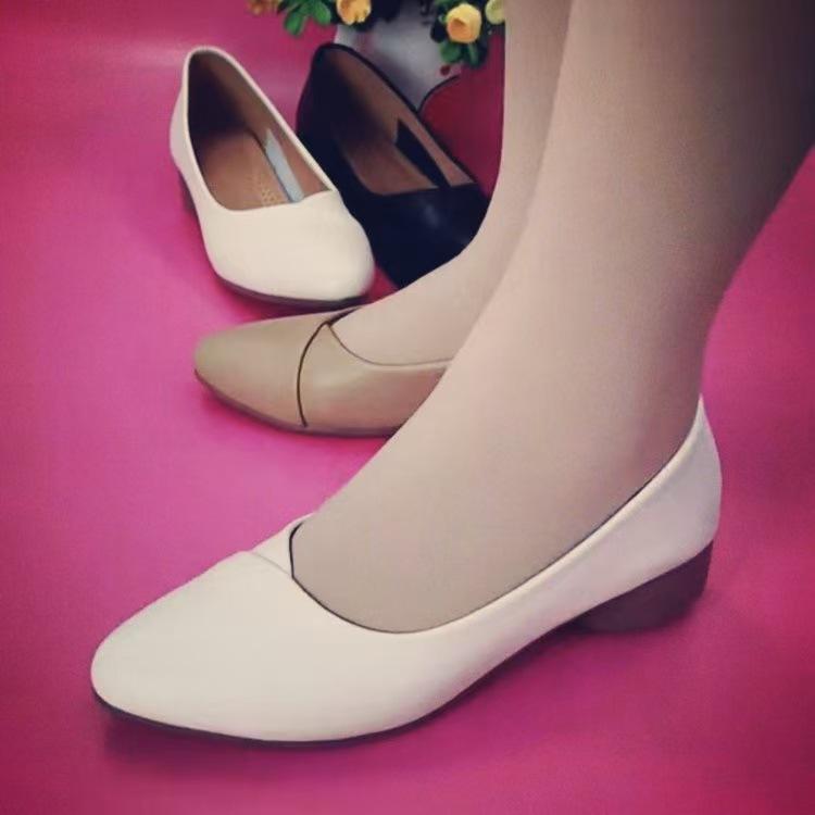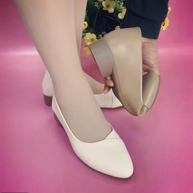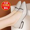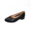 Zapatos de trabajo versátiles de cuero sin cordones de tacón bajo, negros, punta puntiaguda, escote bajo, otoño 2025 nuevos, zapatos individuales de tacón grueso para mujer