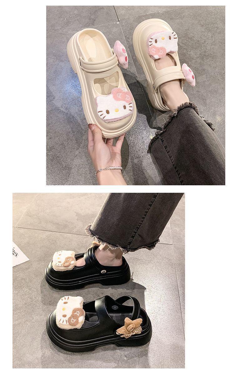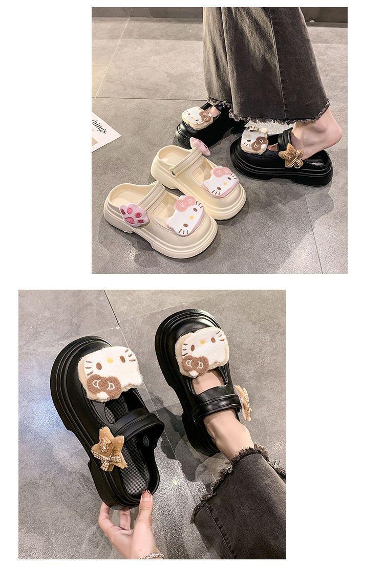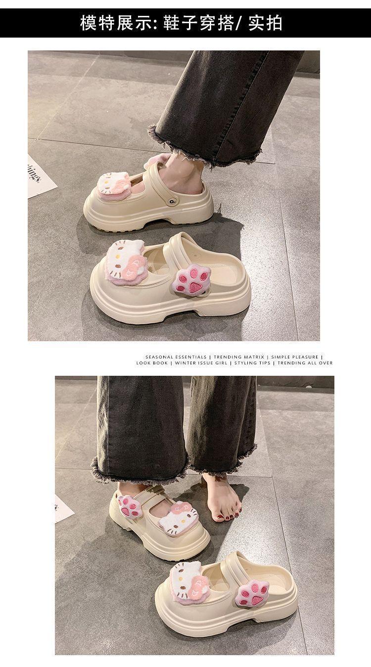 Sandalias Perforadas Lindas y Femeninas para Mujer, Moda Nueva de Verano 2025, Mules de Punta Cerrada de Suela Gruesa para Uso Exterior