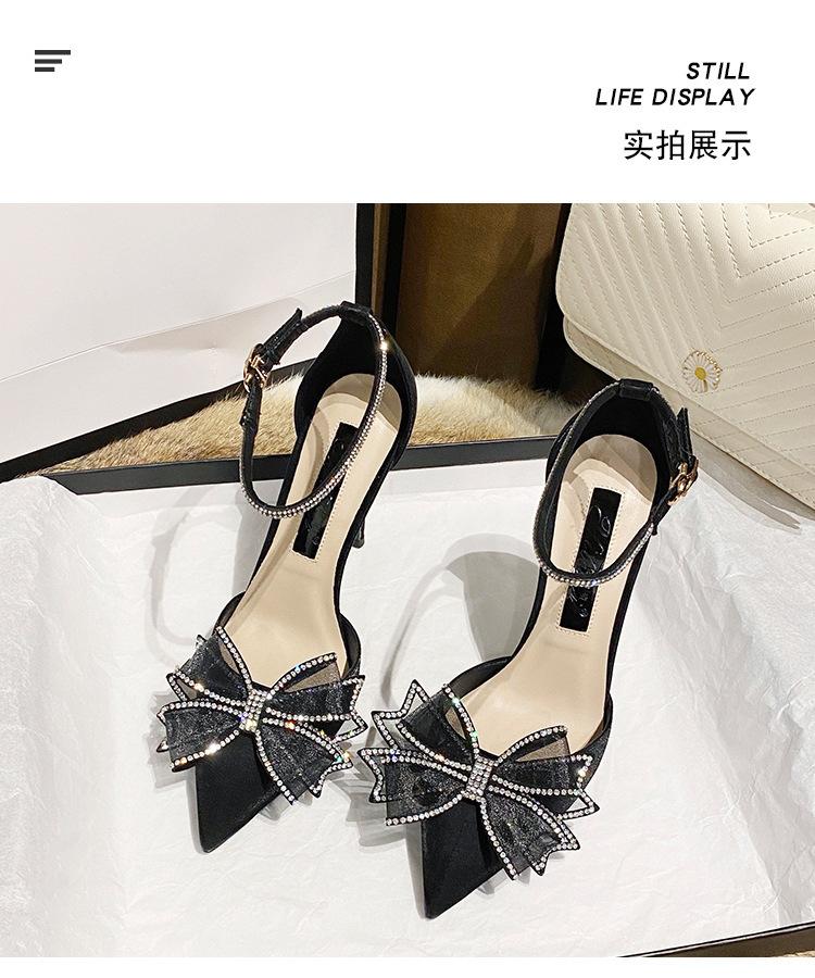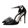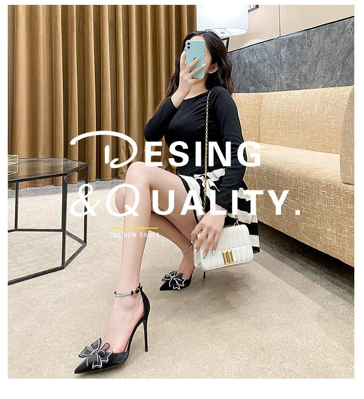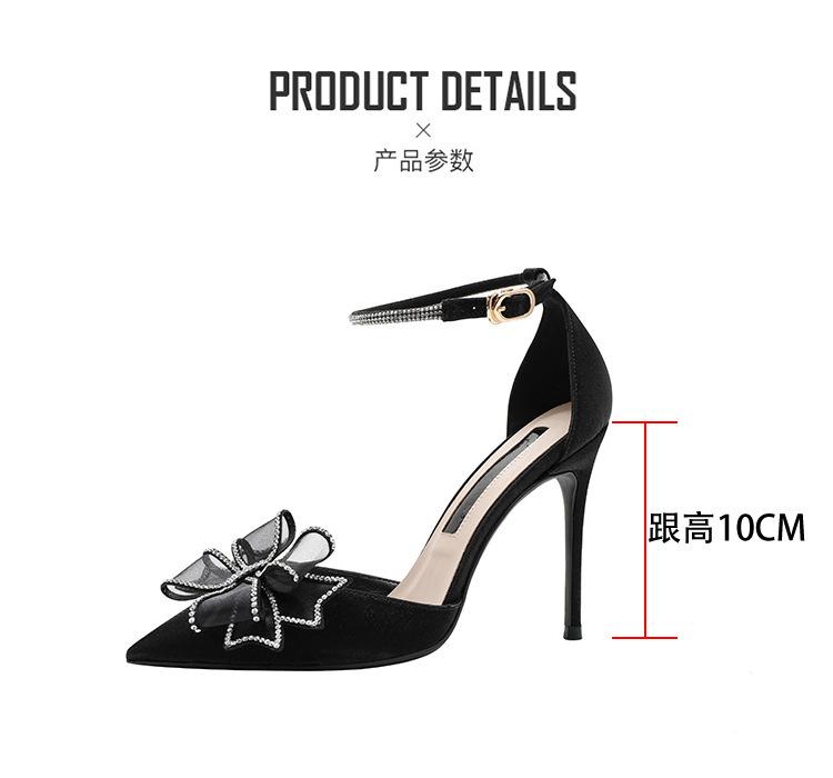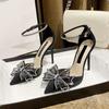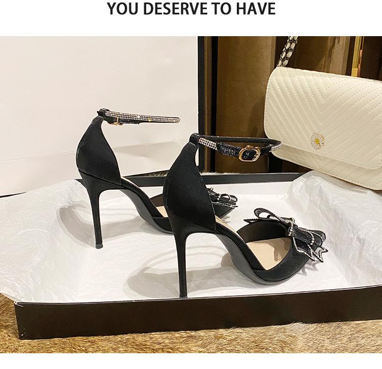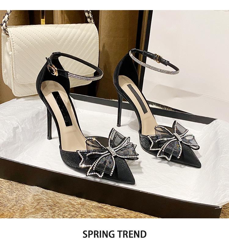 Tacones Altos con Lazo de Pedrería Mujer 2023 Nuevo Primavera y Otoño Punta Afilada Celebridad de Internet Punta Cerrada Sandalias de Aguja Estilo Hada