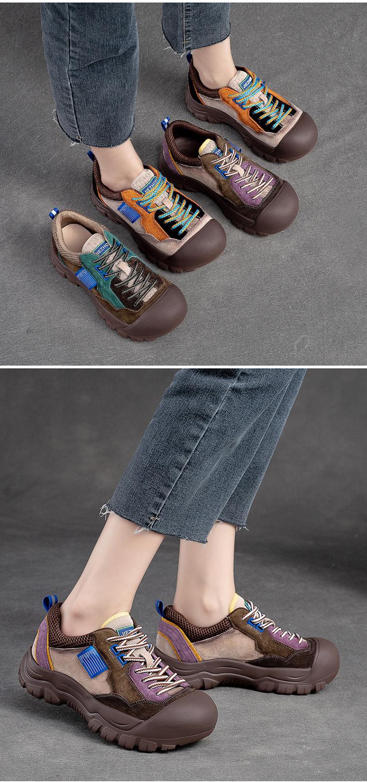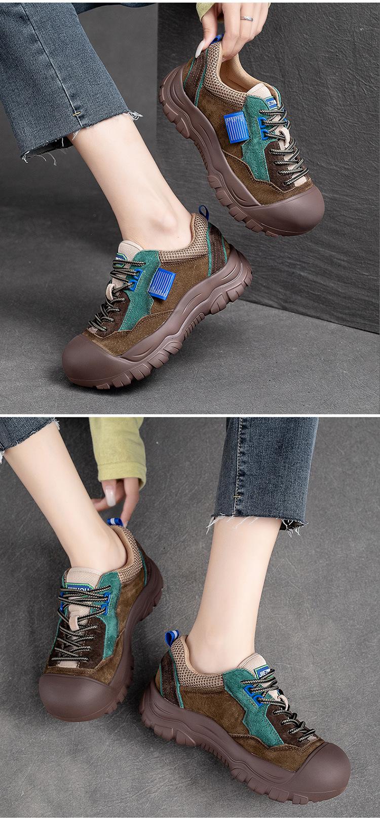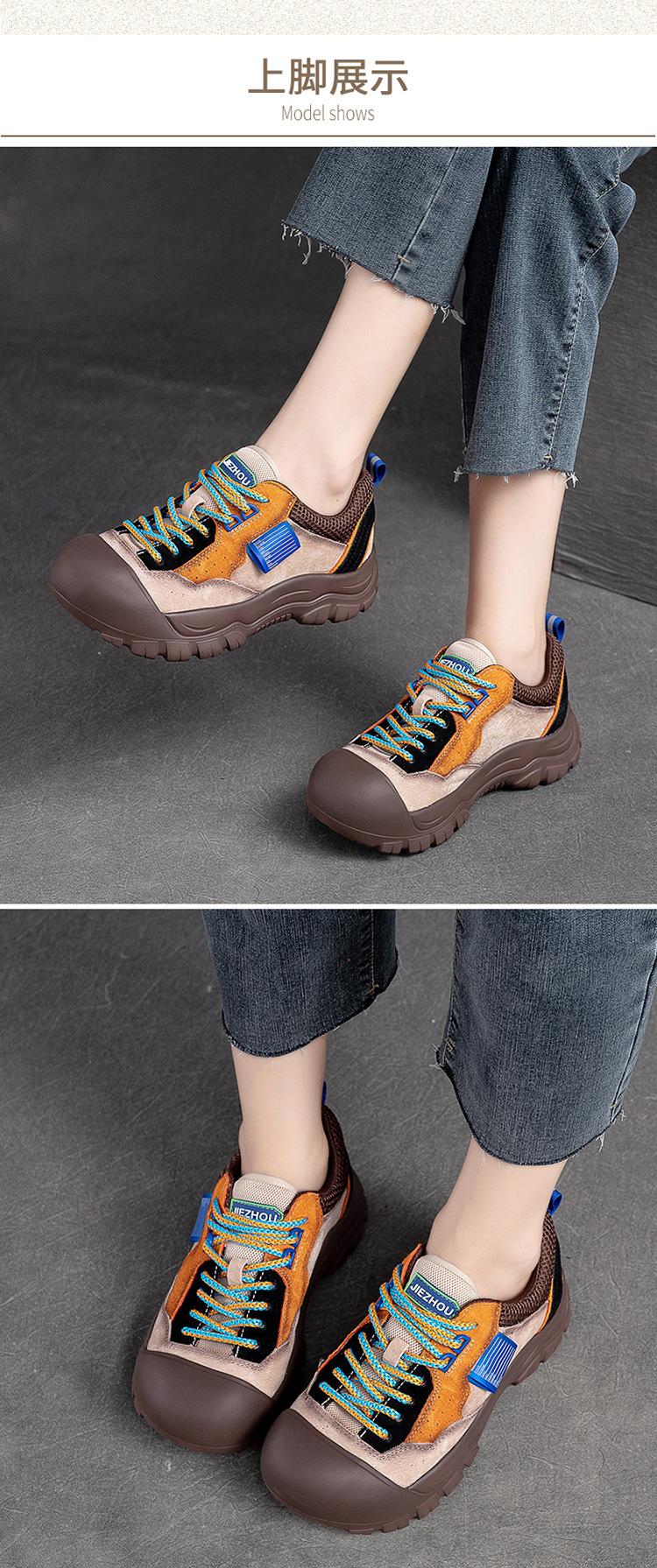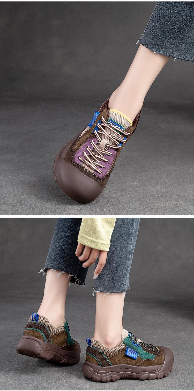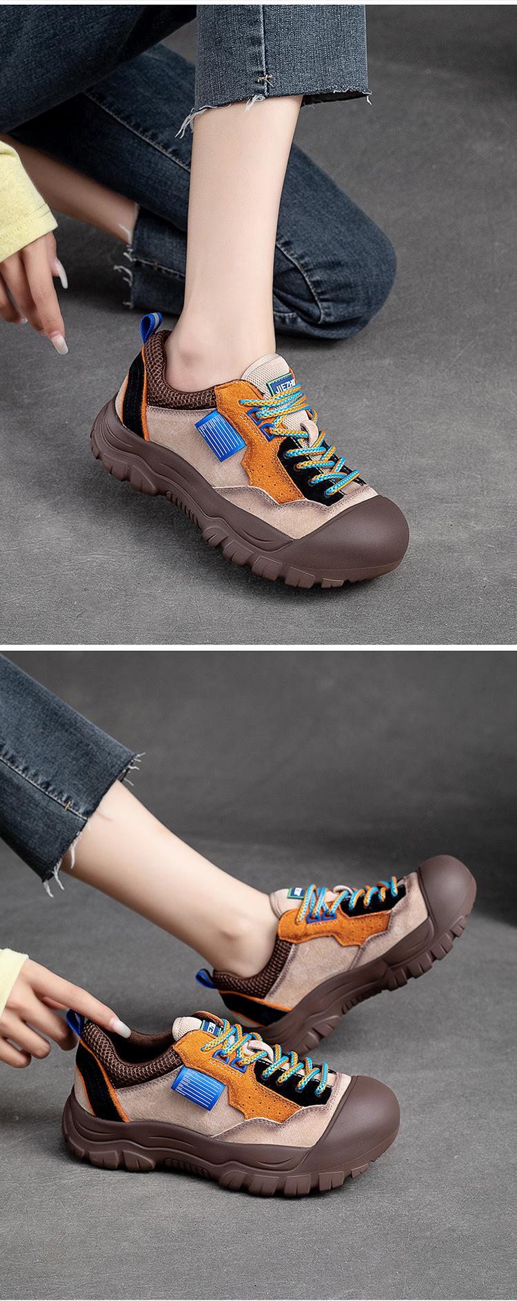 Jie Zhou 2025 Otoño Nuevo Retro Punta Redonda Bloque de Color Zapatos Individuales de Mujer Cordones Frontales Ligeros Cómodos Casual Moda Versátil