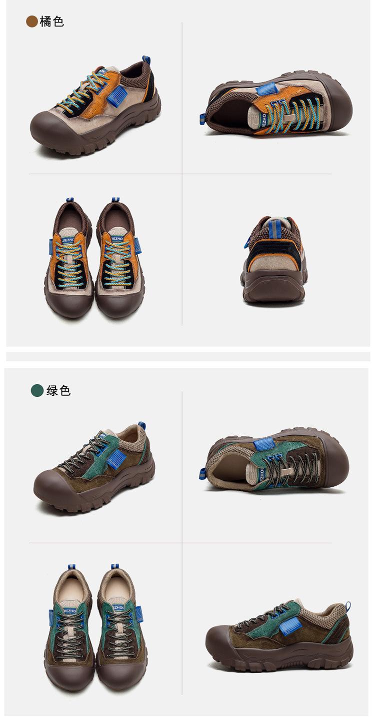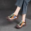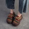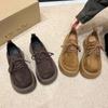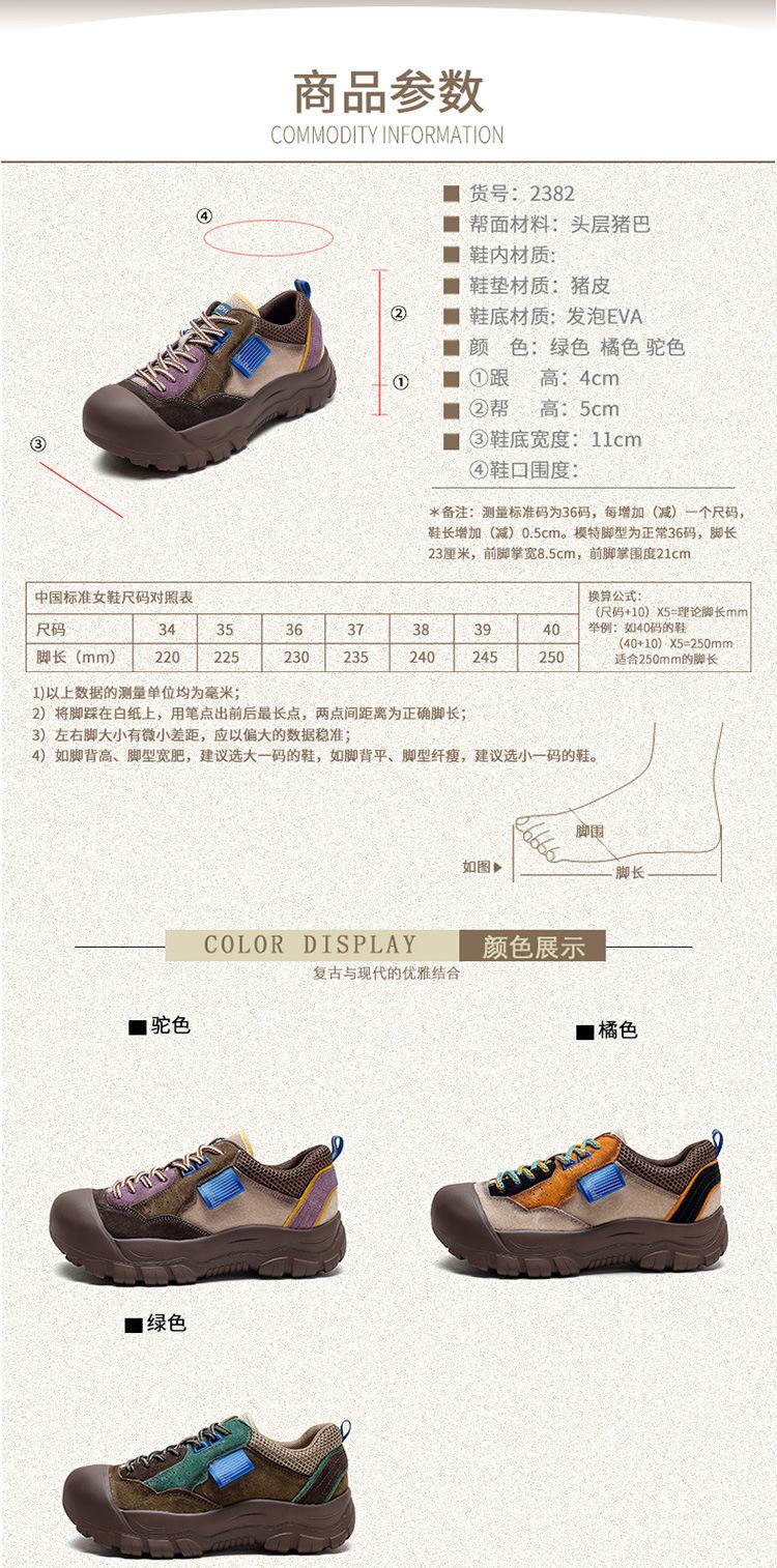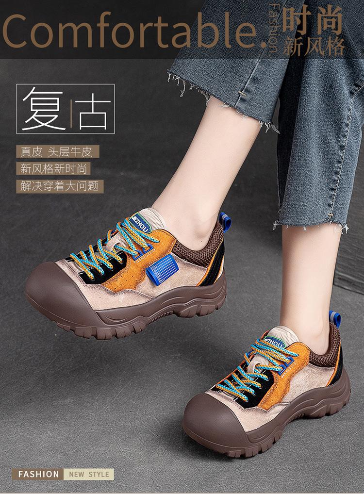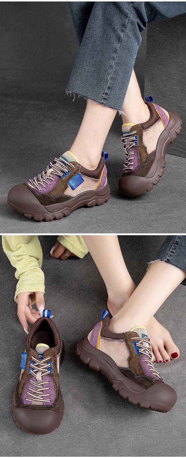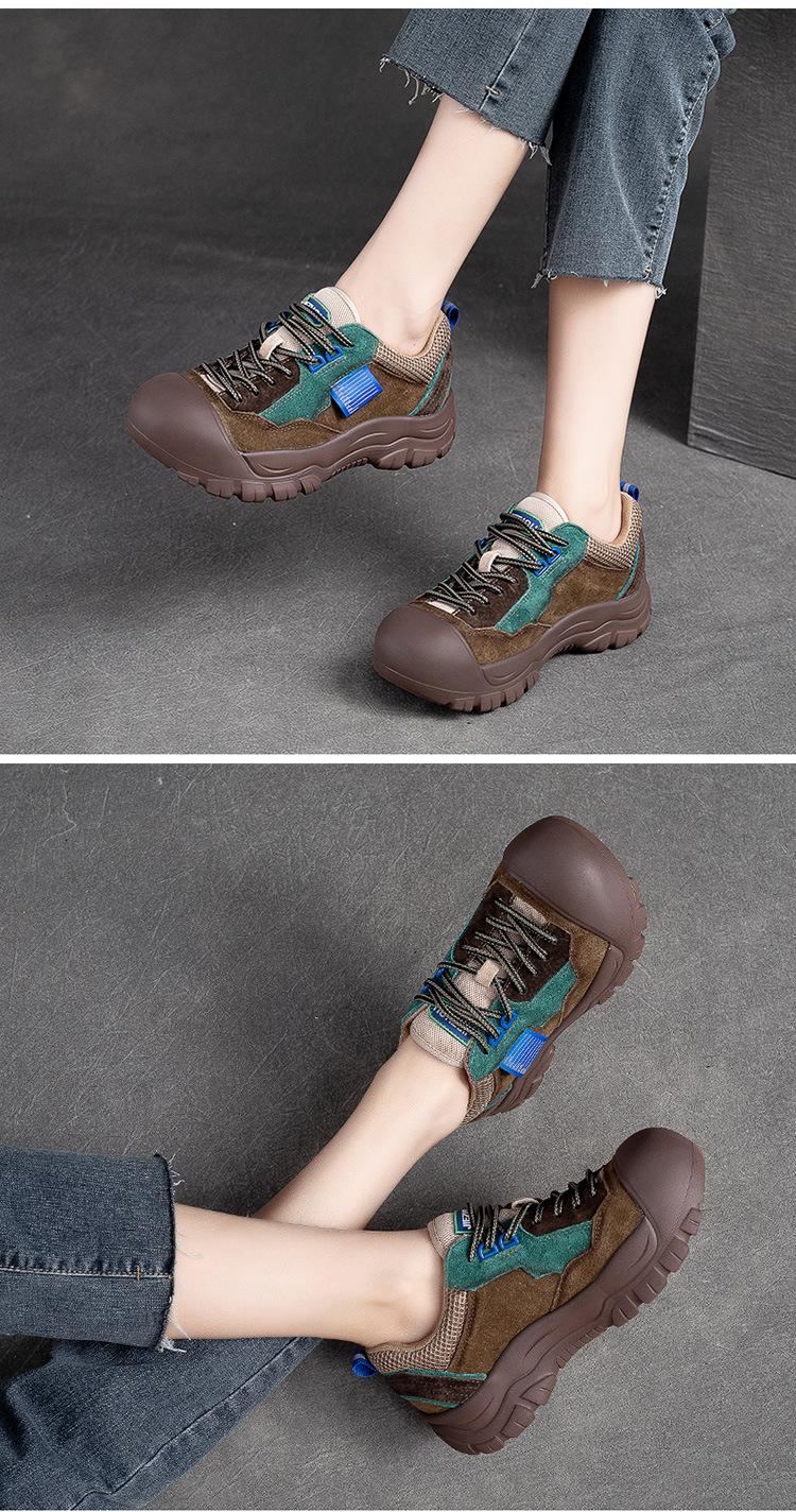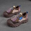 Jie Zhou 2025 Otoño Nuevo Retro Punta Redonda Bloque de Color Zapatos Individuales de Mujer Cordones Frontales Ligeros Cómodos Casual Moda Versátil