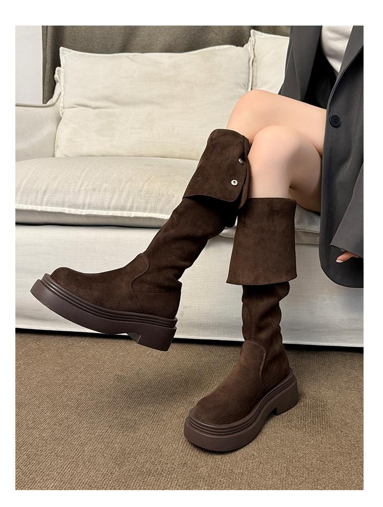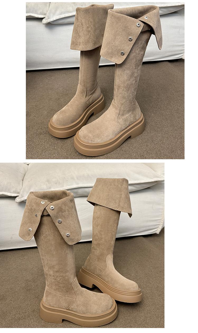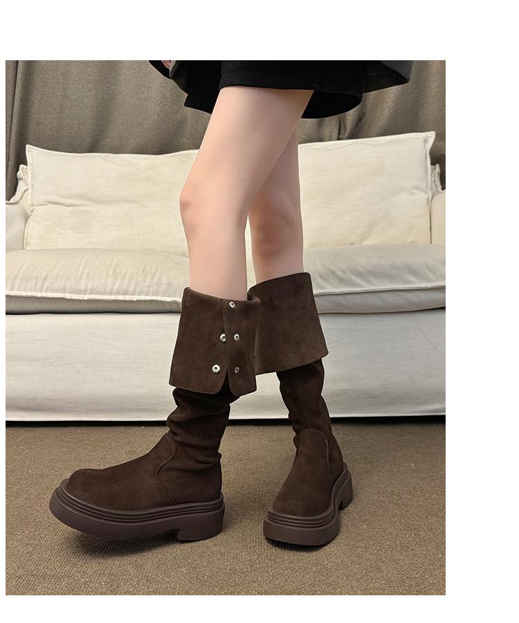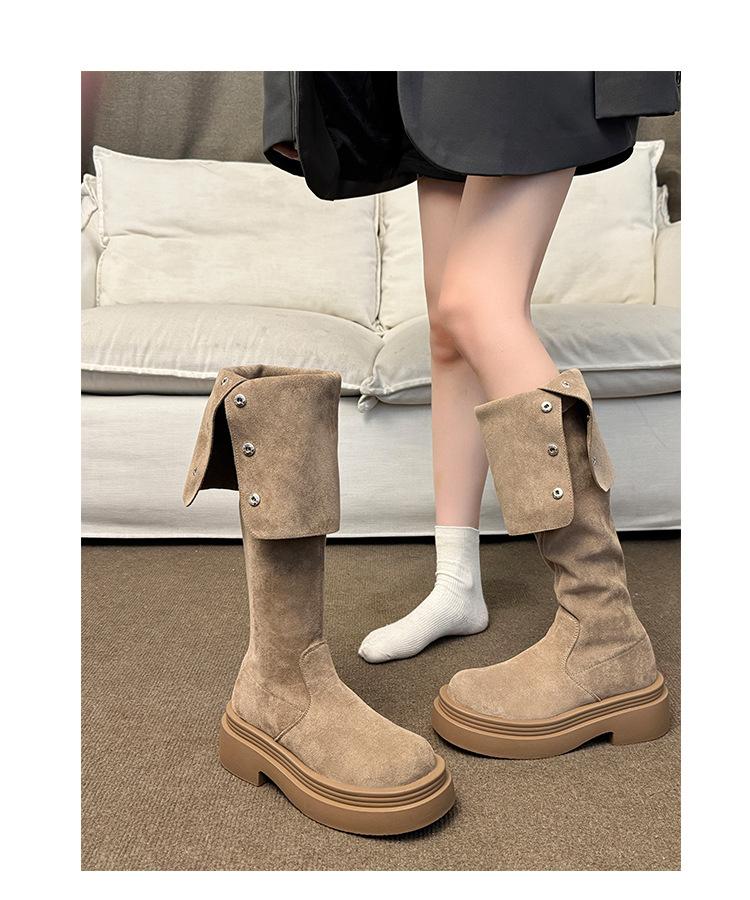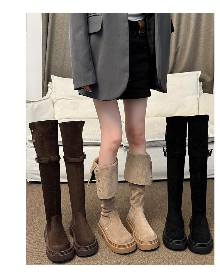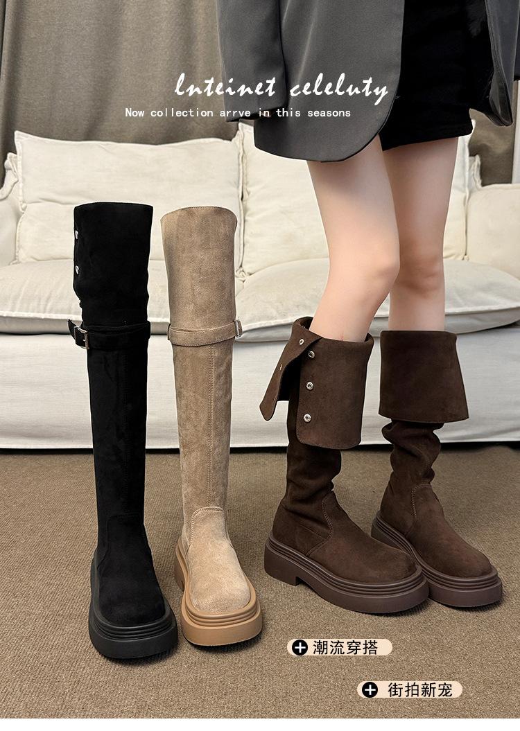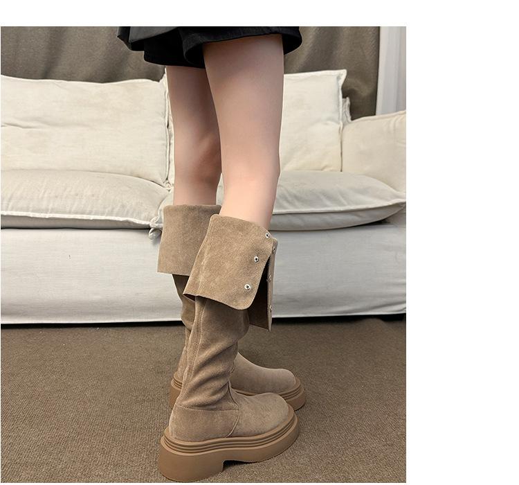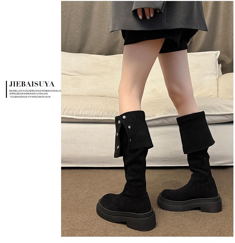 Botas por encima de la rodilla para mujer botas largas 2025 nuevo otoño e invierno dos formas de uso plegables de suela pequeña gruesa elásticas de caña alta botas de caballero