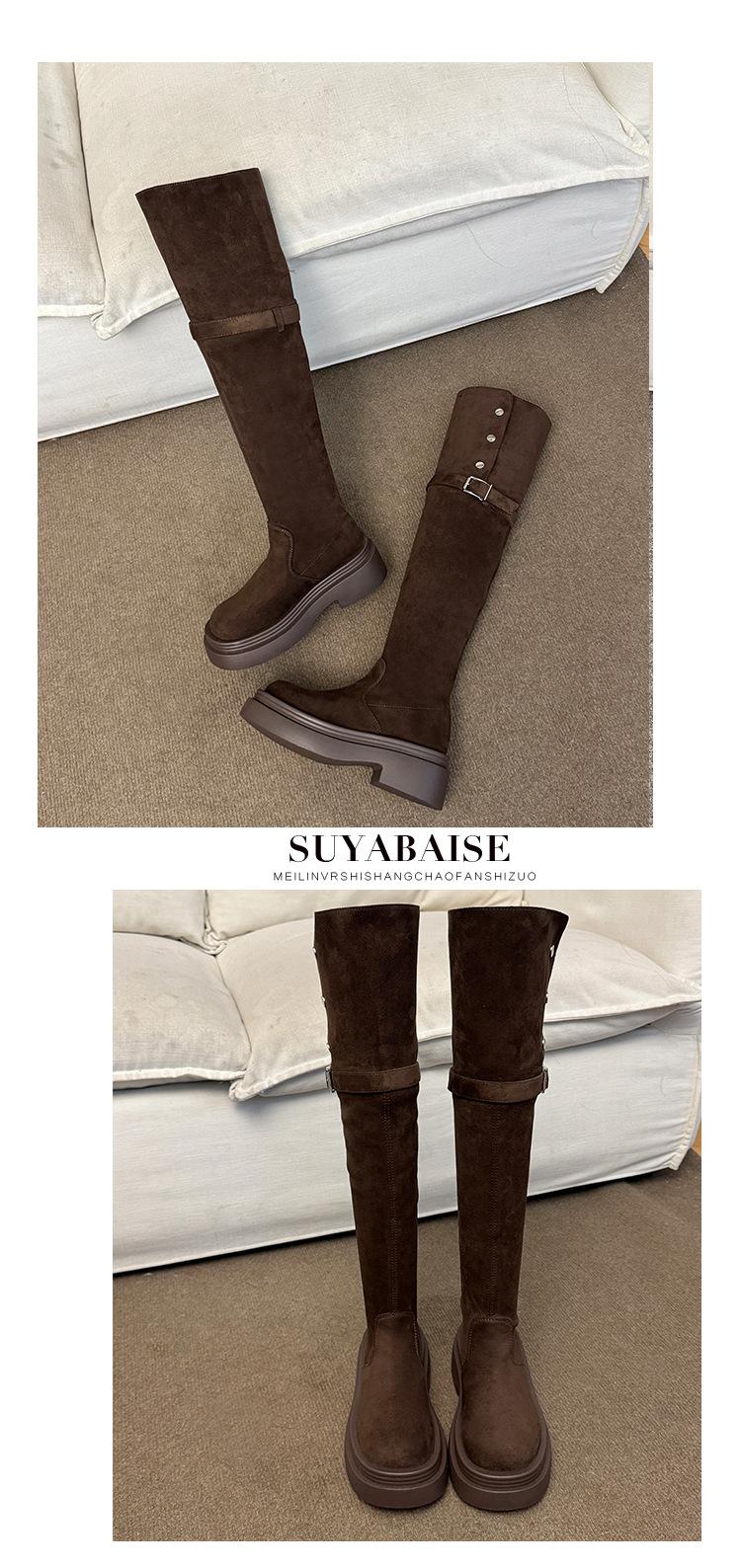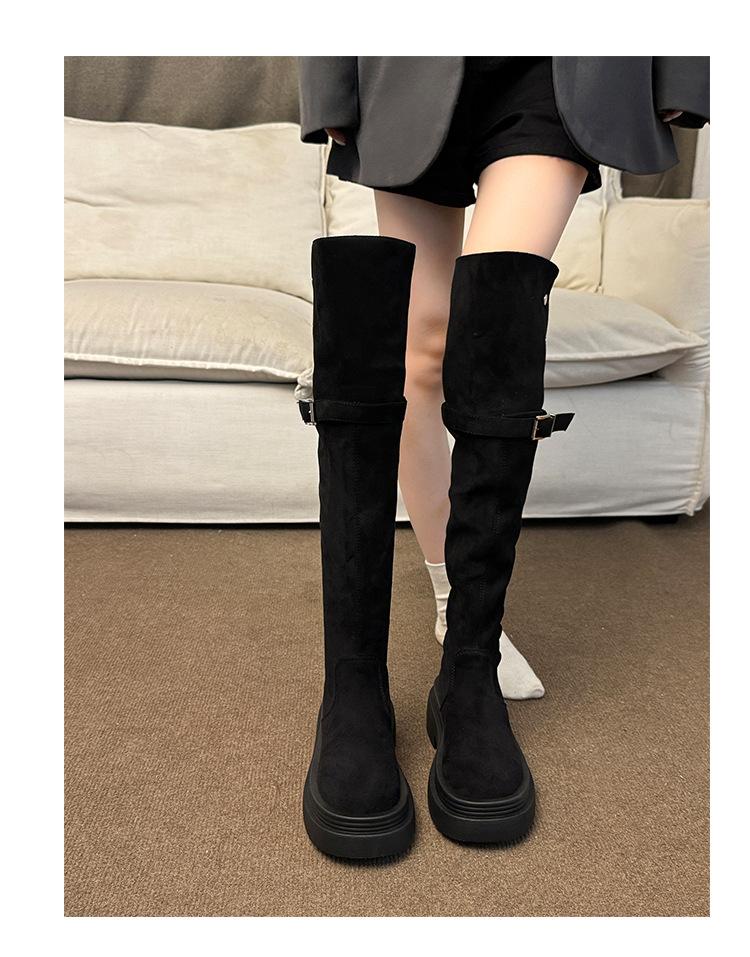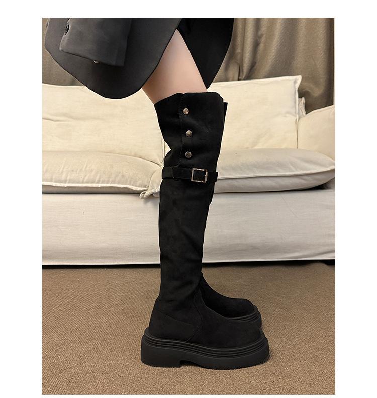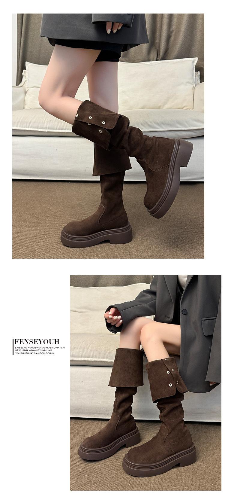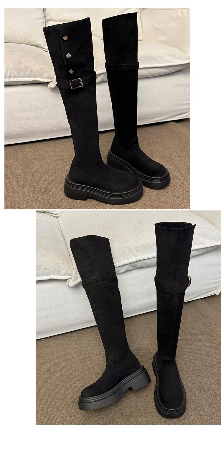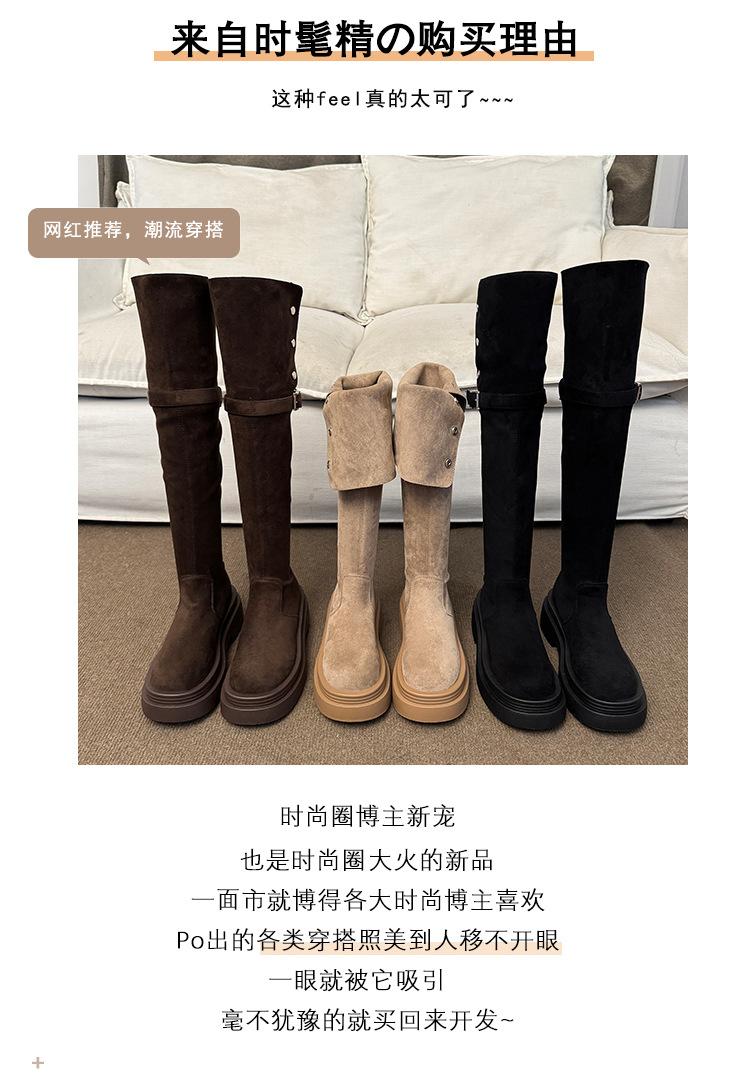 Botas por encima de la rodilla para mujer botas largas 2025 nuevo otoño e invierno dos formas de uso plegables de suela pequeña gruesa elásticas de caña alta botas de caballero