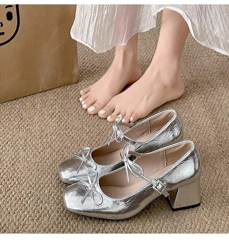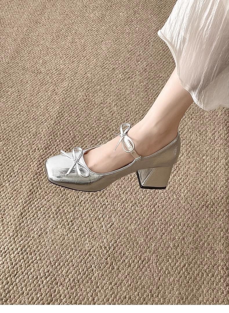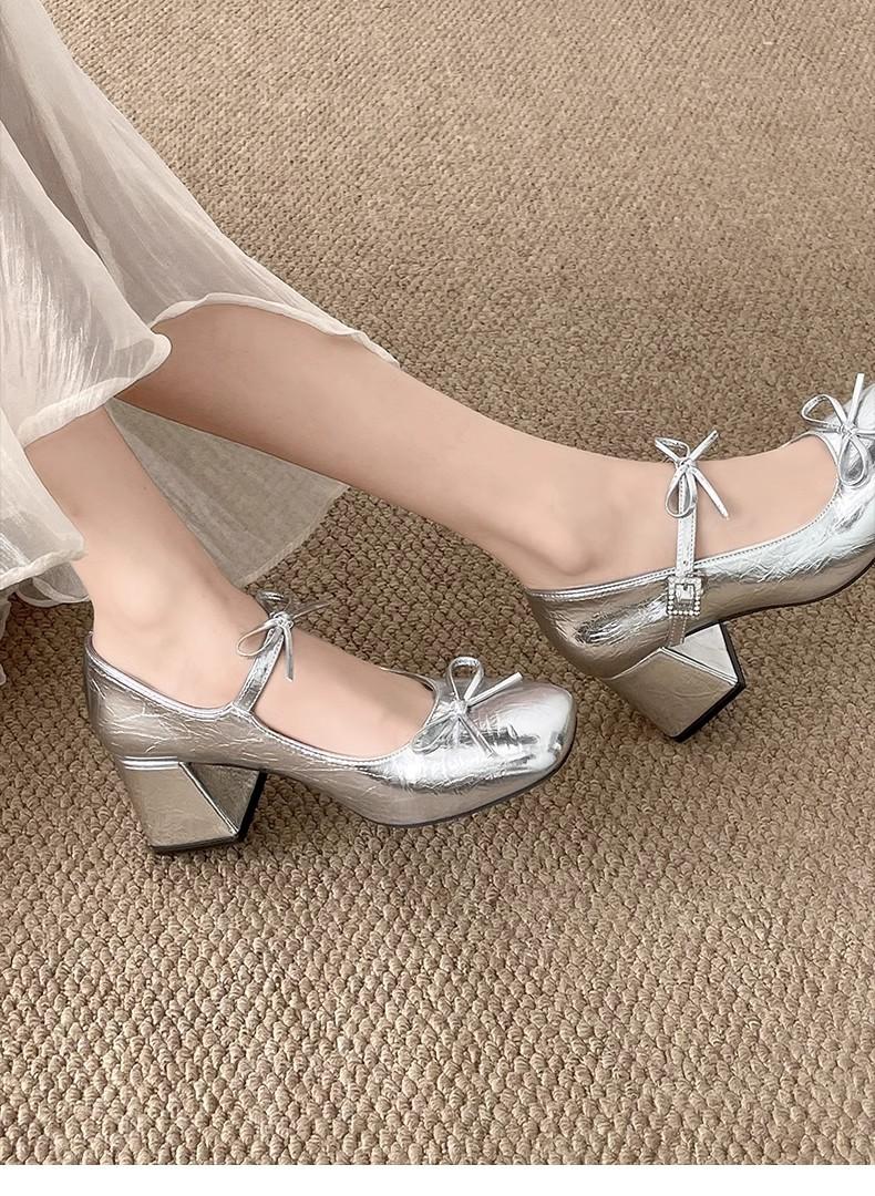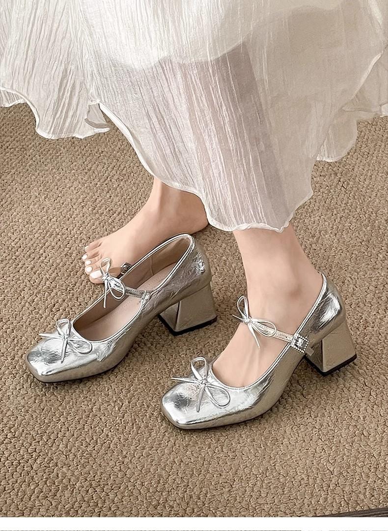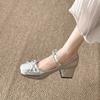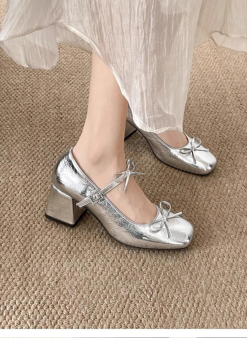 Zapatos de Tacón Mary Jane Tacón Grueso Plata Zapatos Individuales Mujer 2025 Nuevo Primavera Verano Temperamento Estilo Francés Combinar Falda Zapatos de Cuero Pequeños