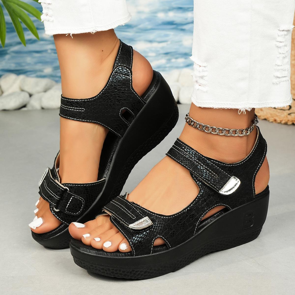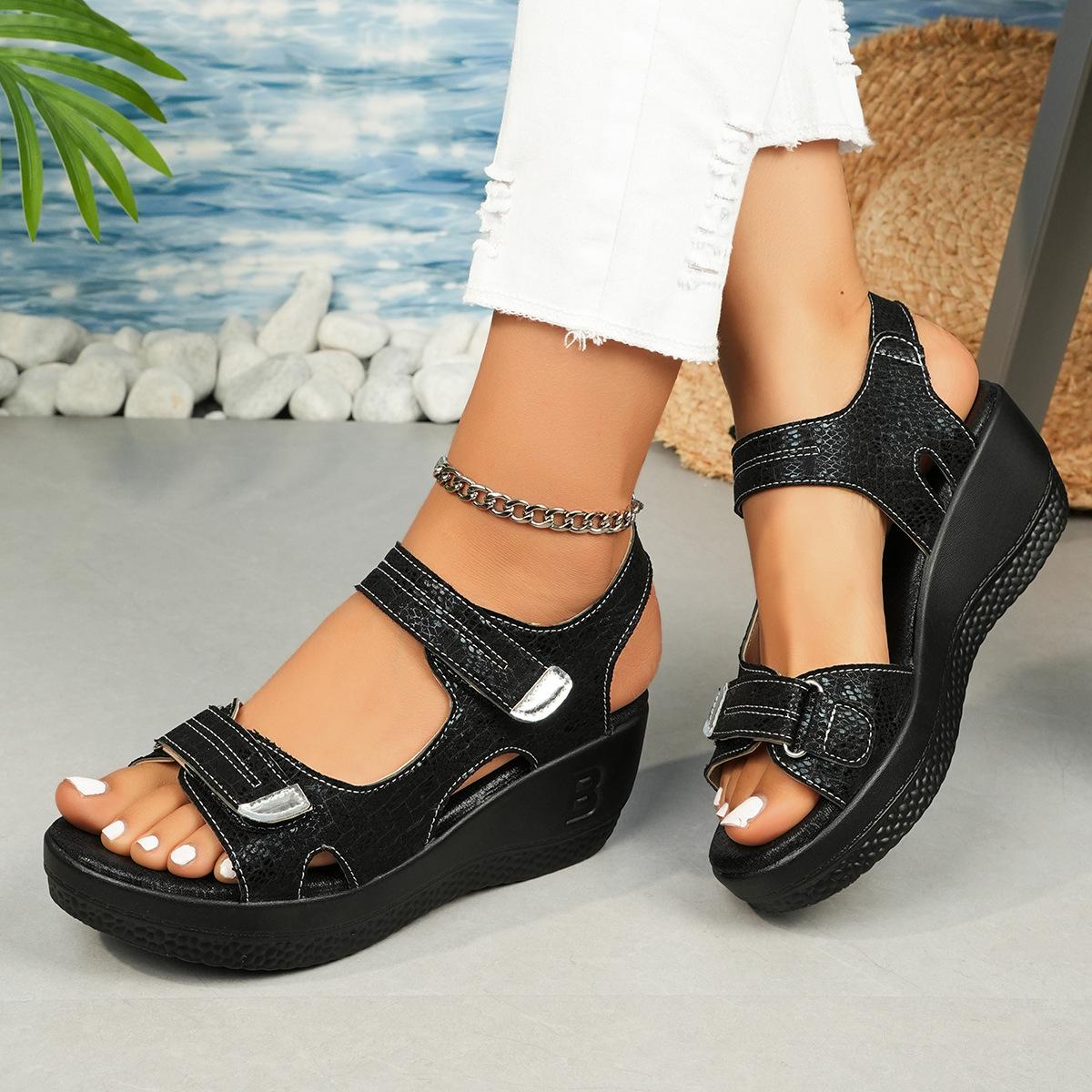 2025 Nuevos Zapatos de Verano para Mujer de Comercio Exterior Sandalias Casuales de Plataforma Tira Única Sandalias de Velcro Zapatos de Mujer