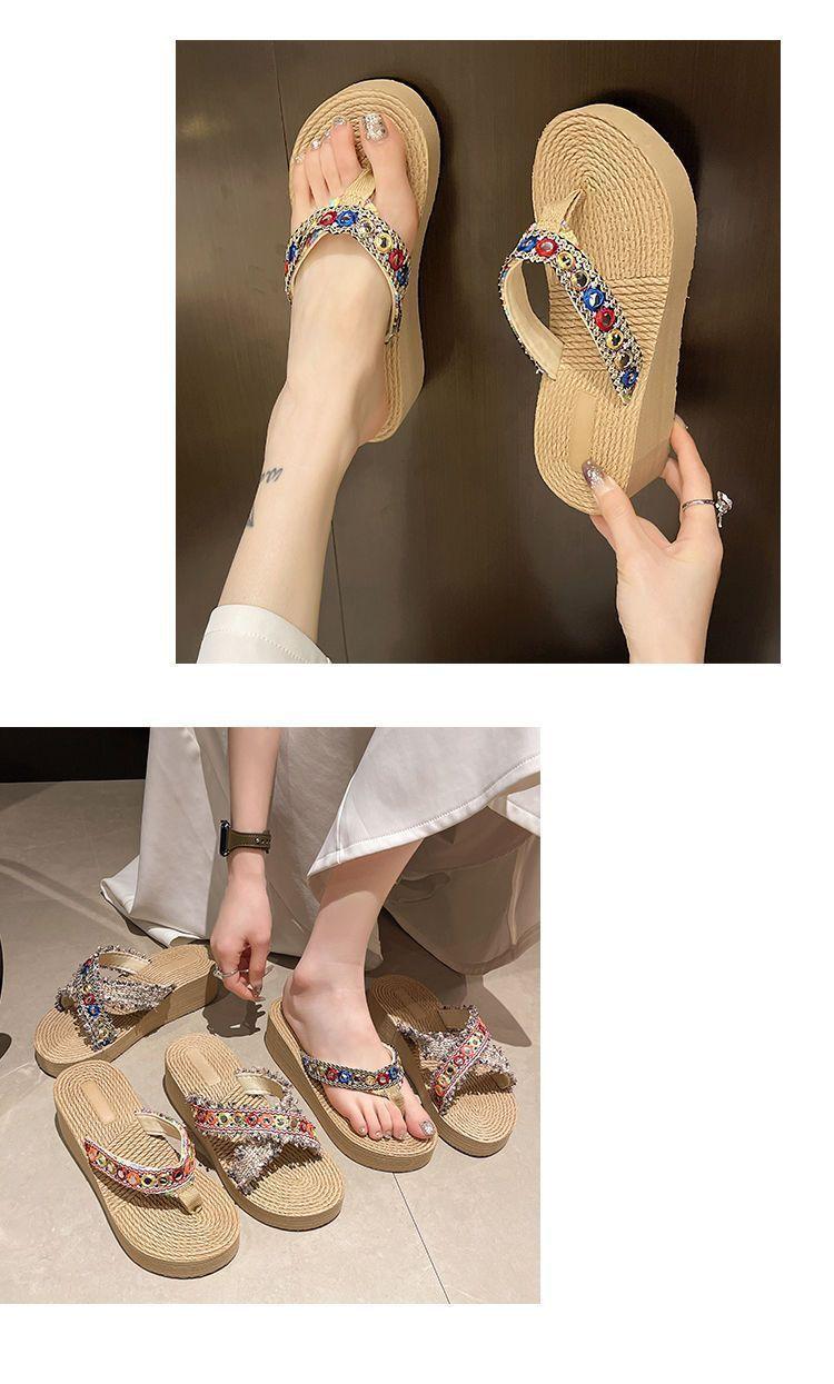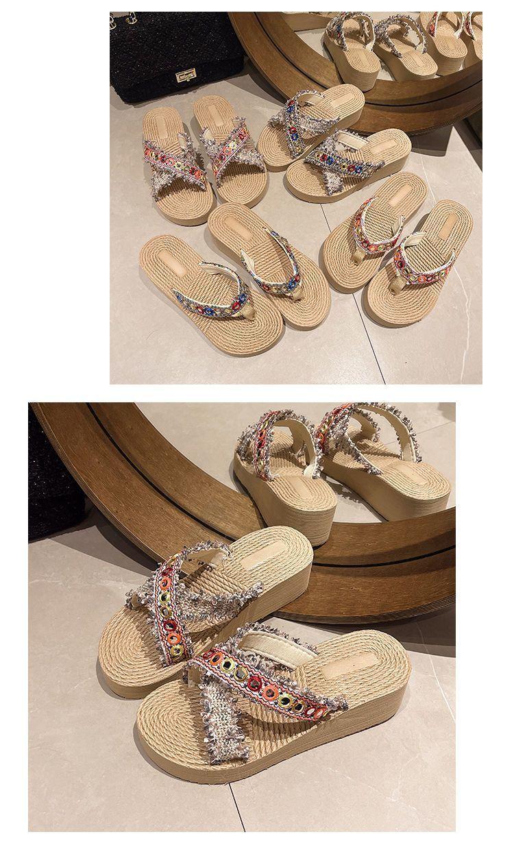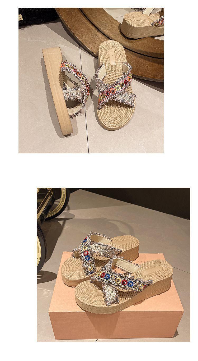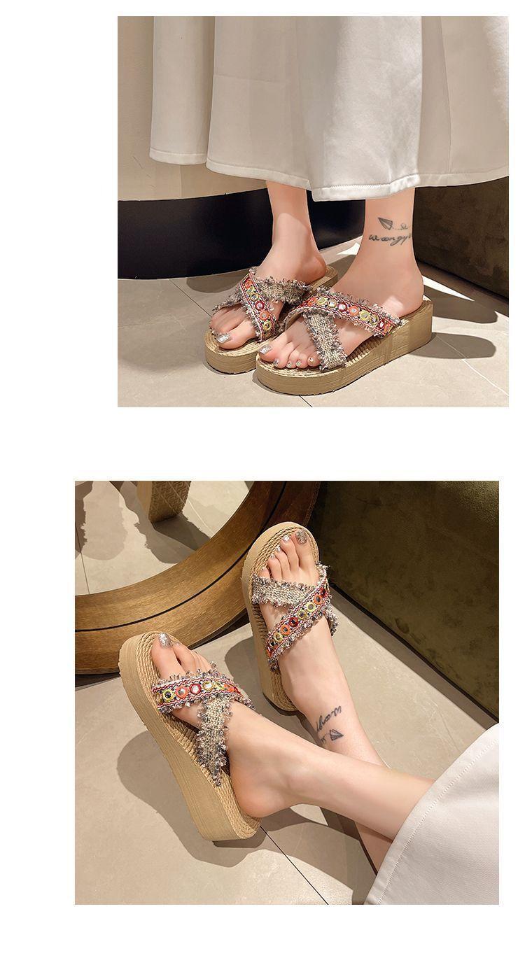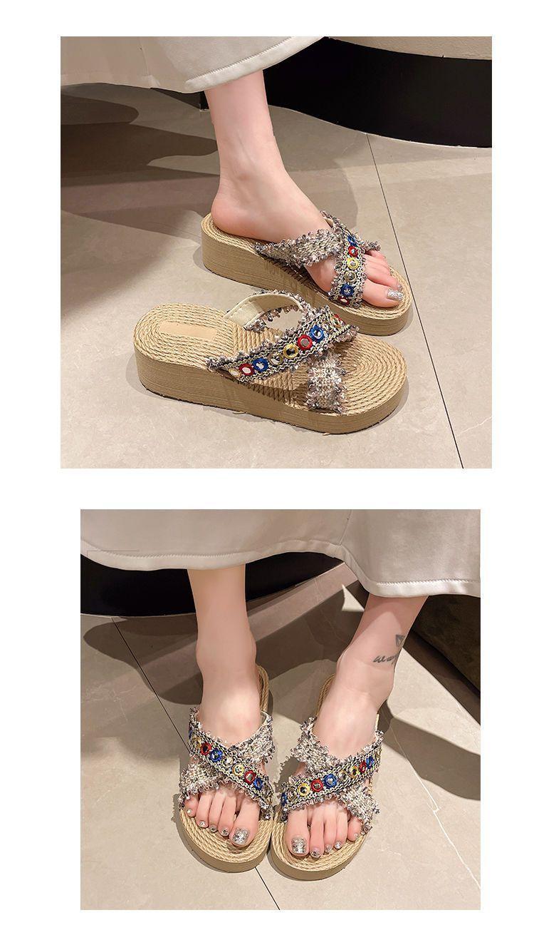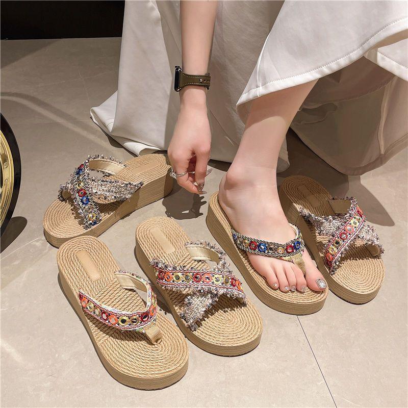 2025 Verano Nueva Moda Versátil Cómodas Frescas Pantuflas Pantuflas de Mujer Retro Suela Gruesa Playa Pantuflas Frescas de Mujer