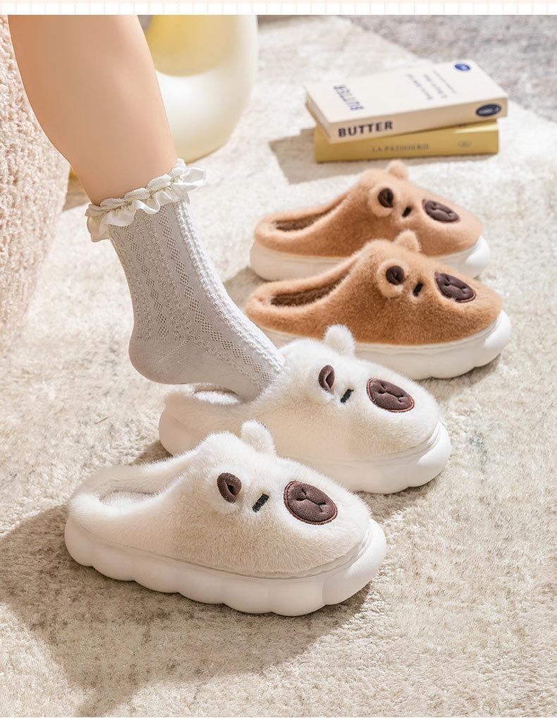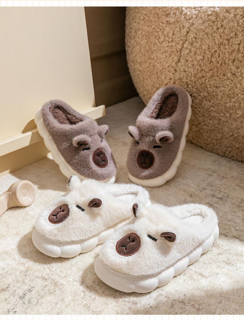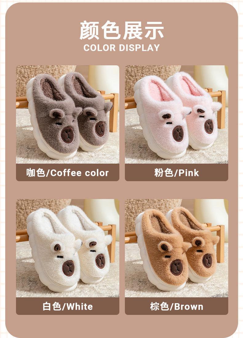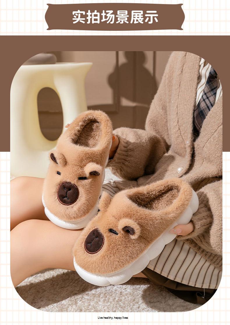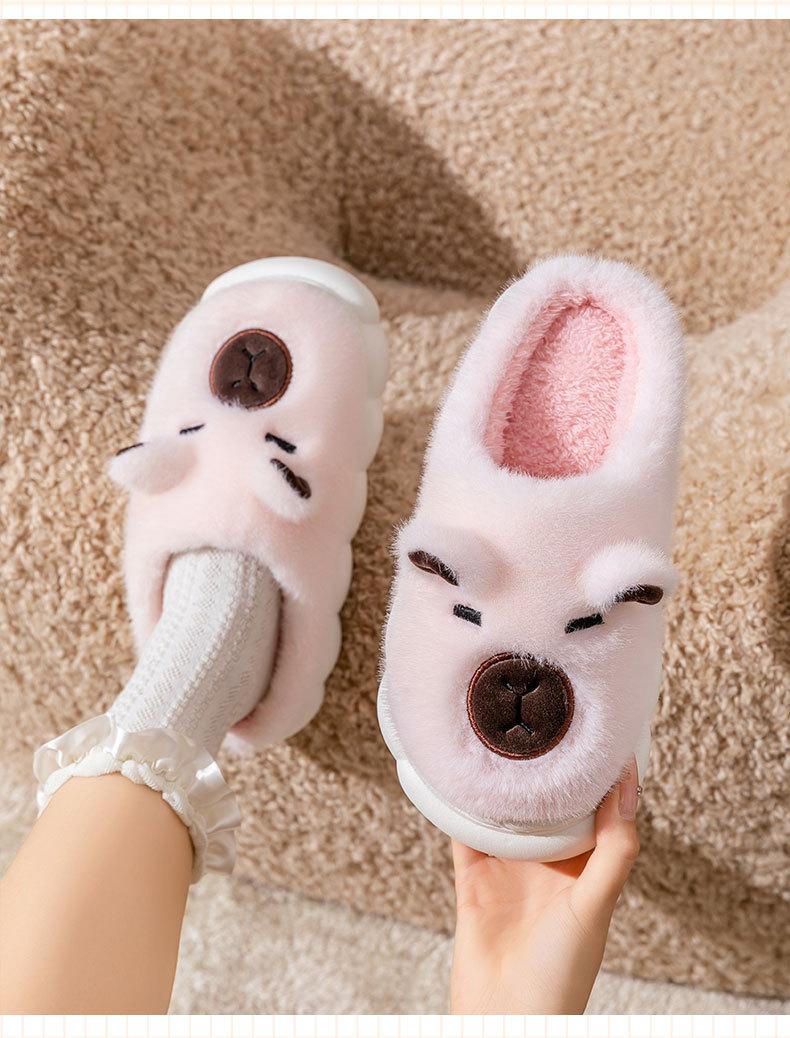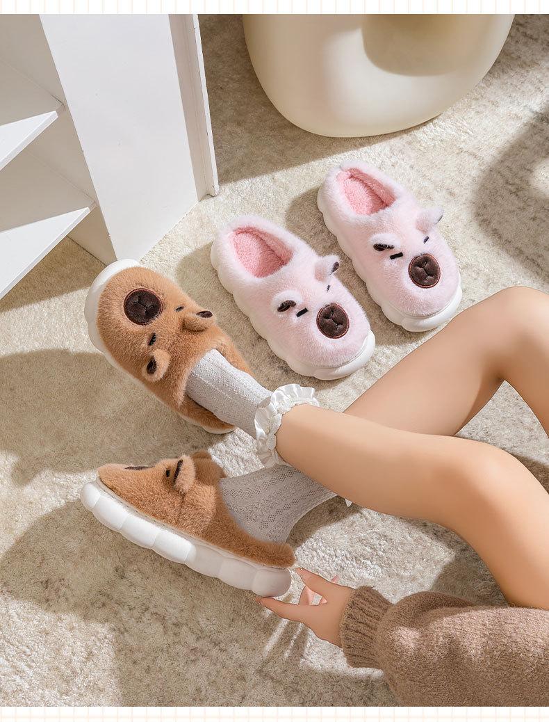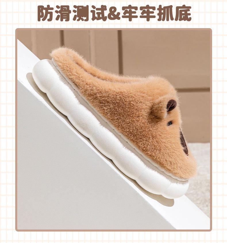 Pantuflas de algodón de dibujos animados lindos de otoño e invierno para hombres y mujeres para interior del hogar de suela gruesa más terciopelo cálido para exterior pareja pantuflas peludas