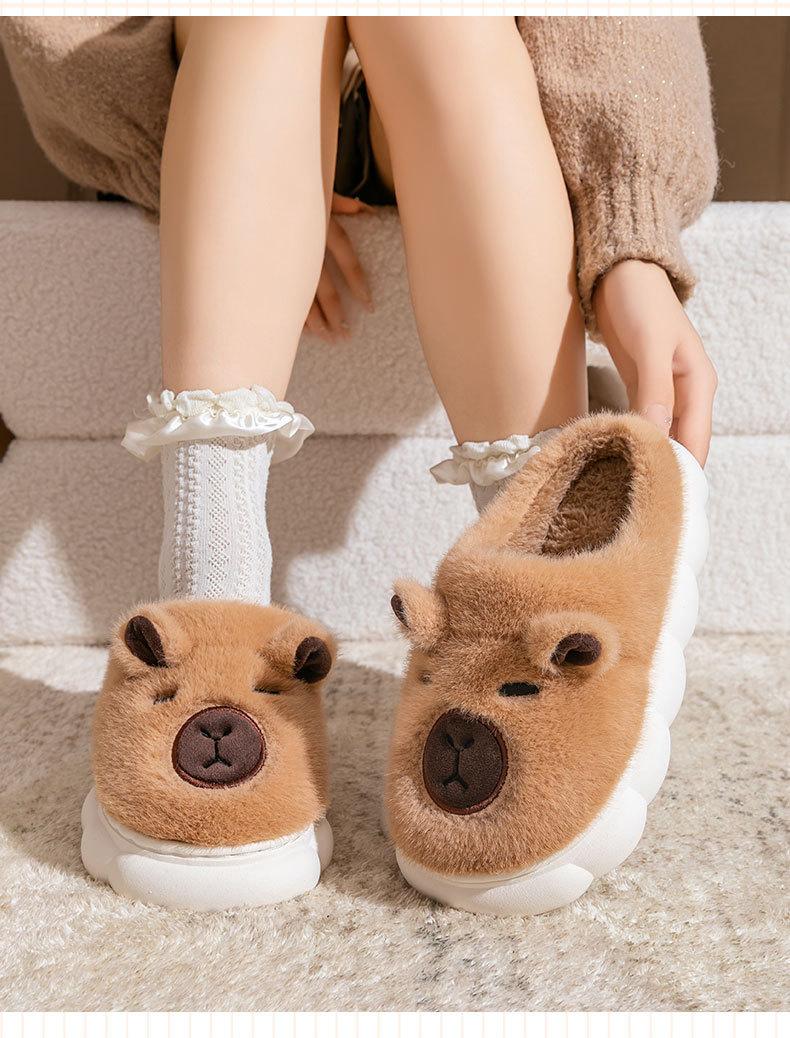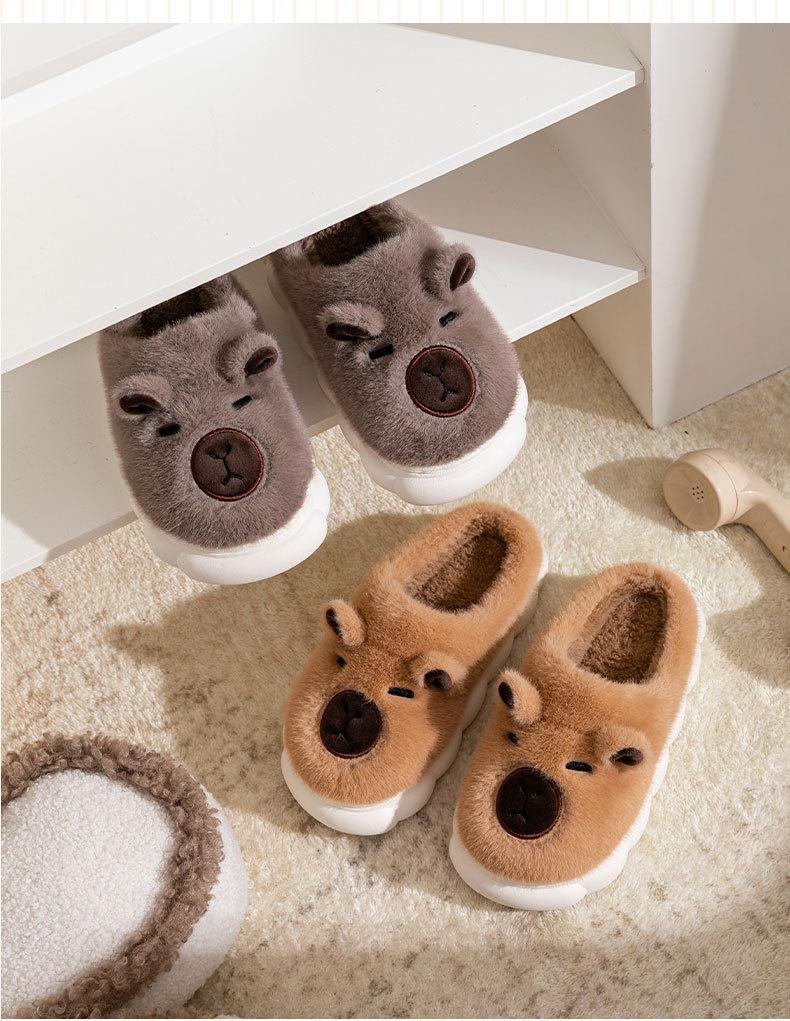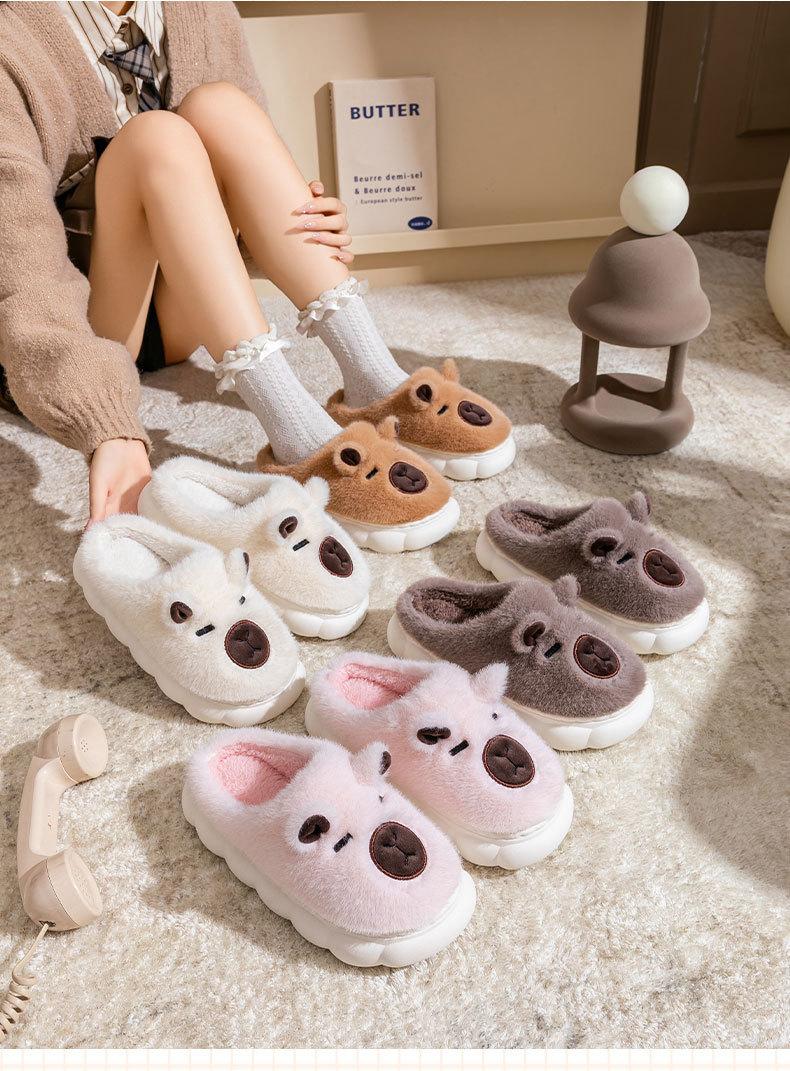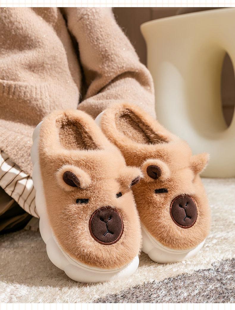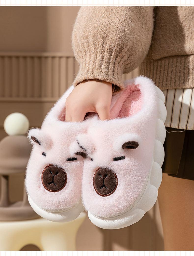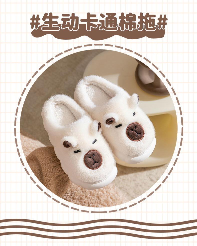 Pantuflas de algodón de dibujos animados lindos de otoño e invierno para hombres y mujeres para interior del hogar de suela gruesa más terciopelo cálido para exterior pareja pantuflas peludas