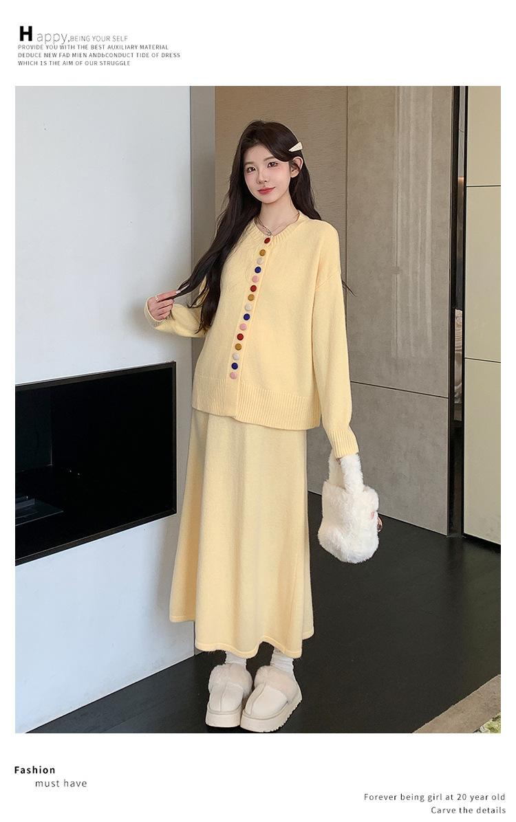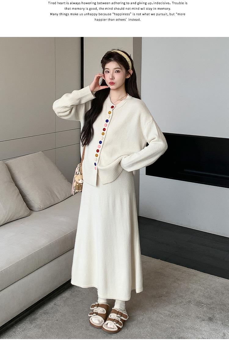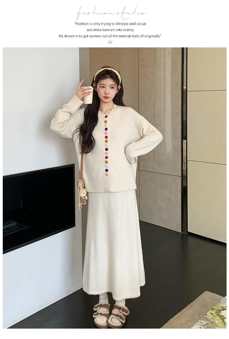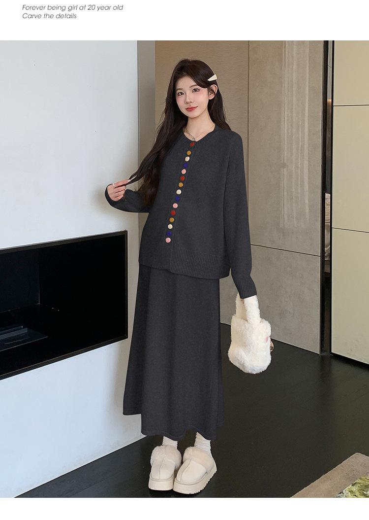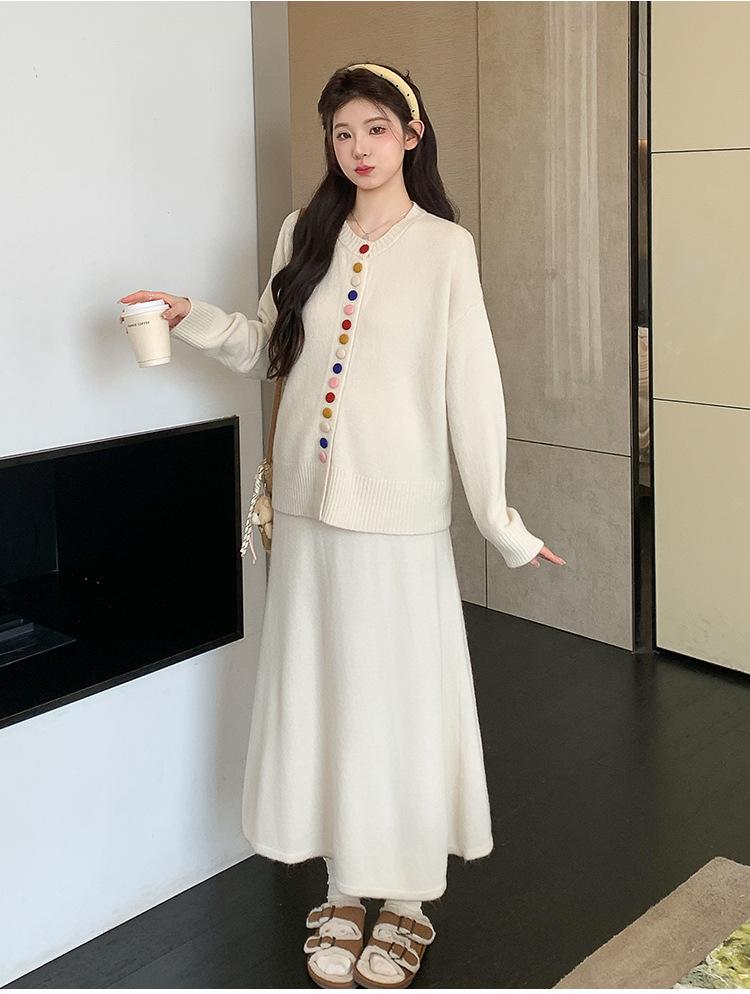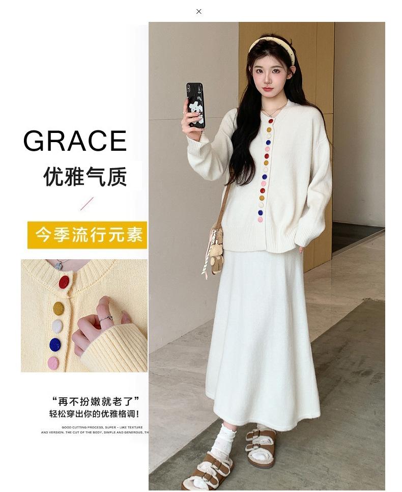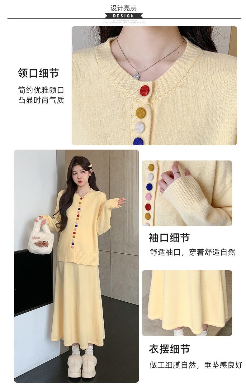 En Stock Otoño/Invierno 2025 Estilo Coreano Holgado Arcoíris Botón Jersey Top de Maternidad + Falda Midi Set de Maternidad Tejido