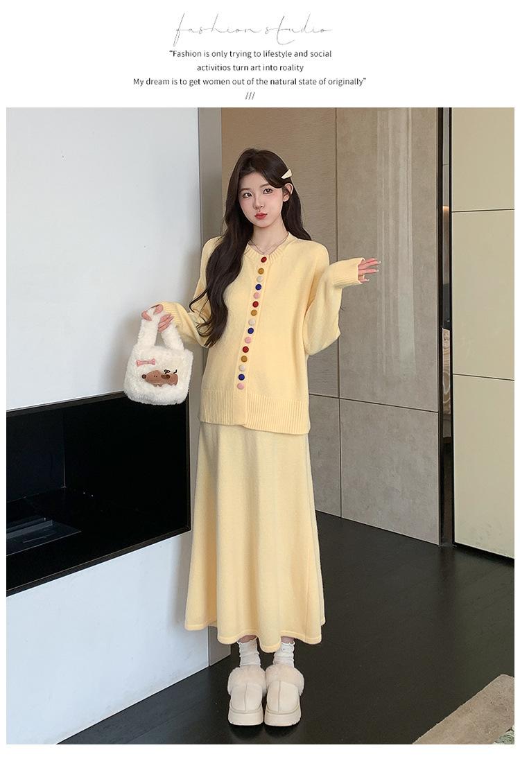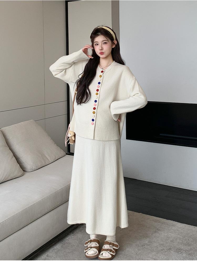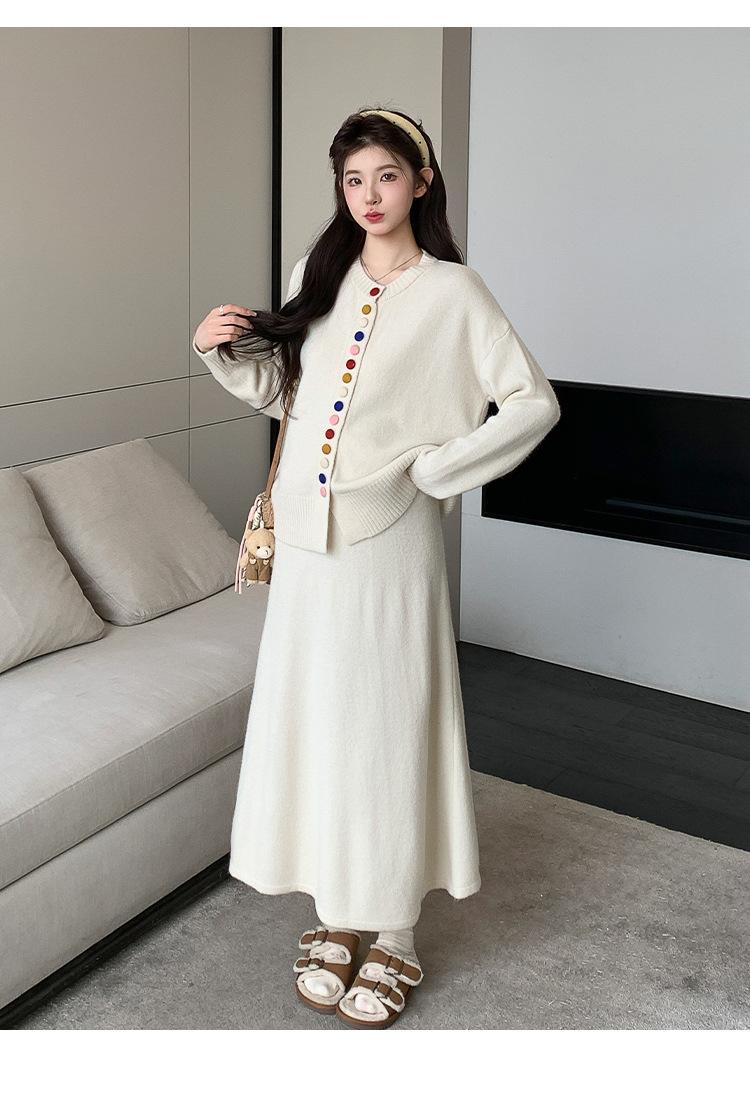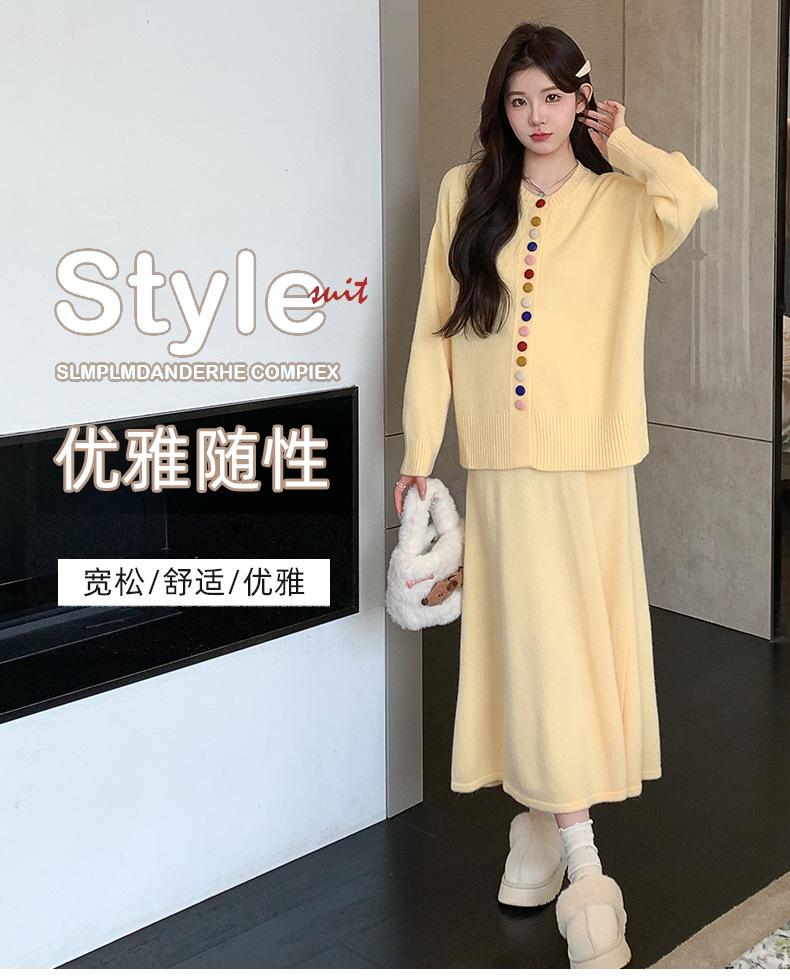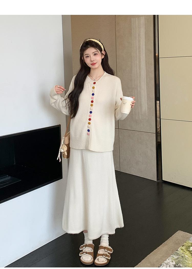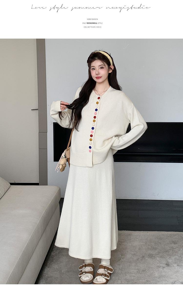 En Stock Otoño/Invierno 2025 Estilo Coreano Holgado Arcoíris Botón Jersey Top de Maternidad + Falda Midi Set de Maternidad Tejido