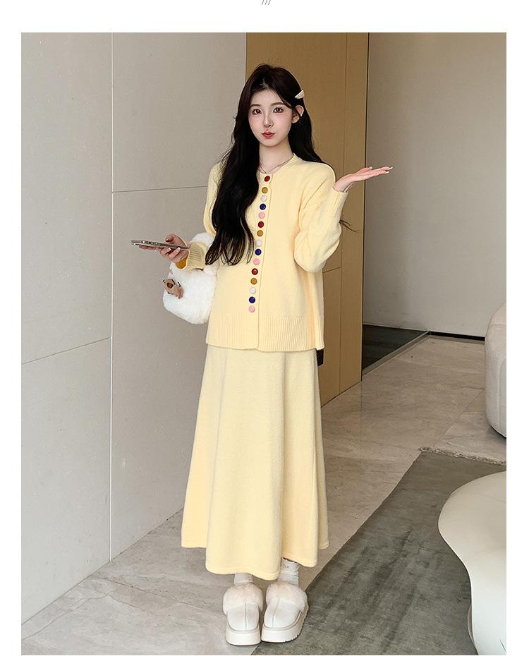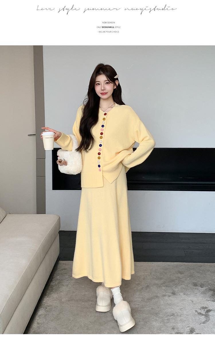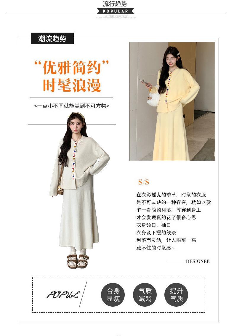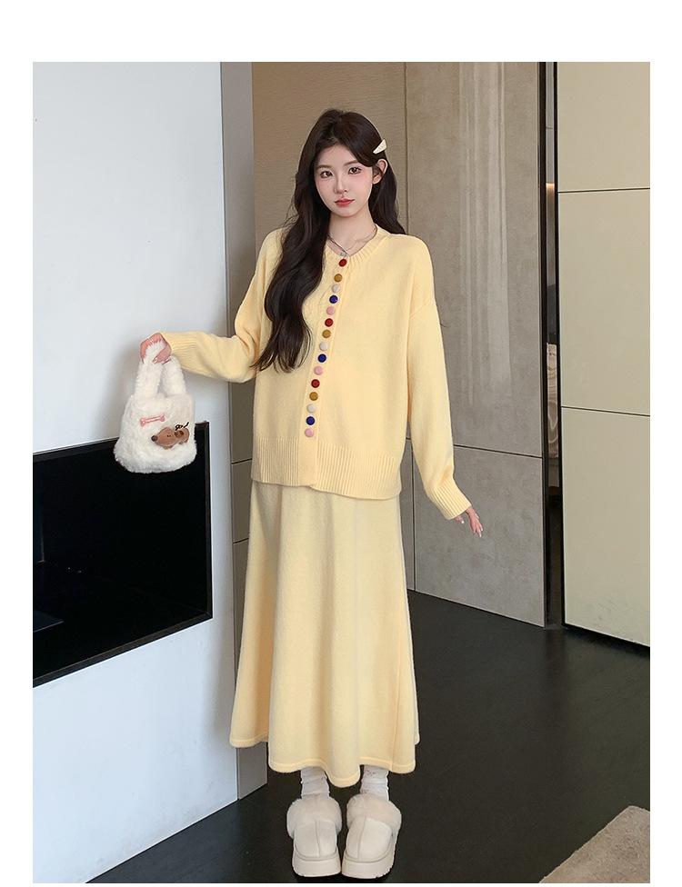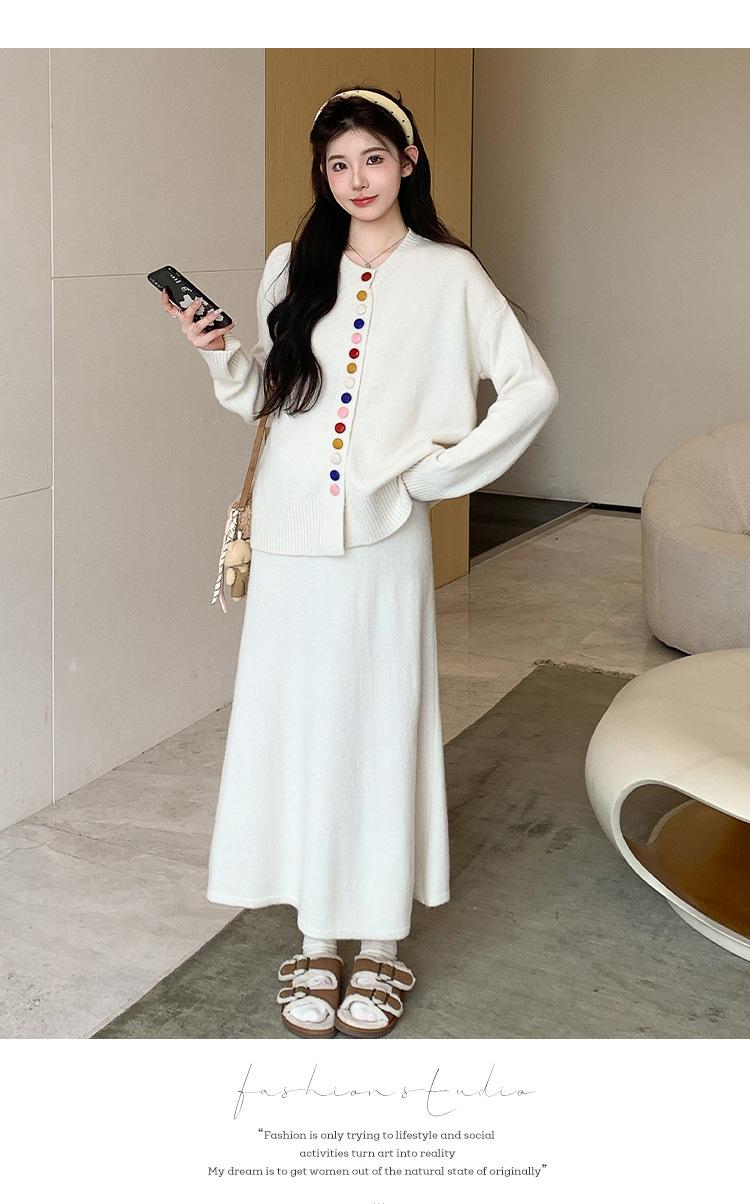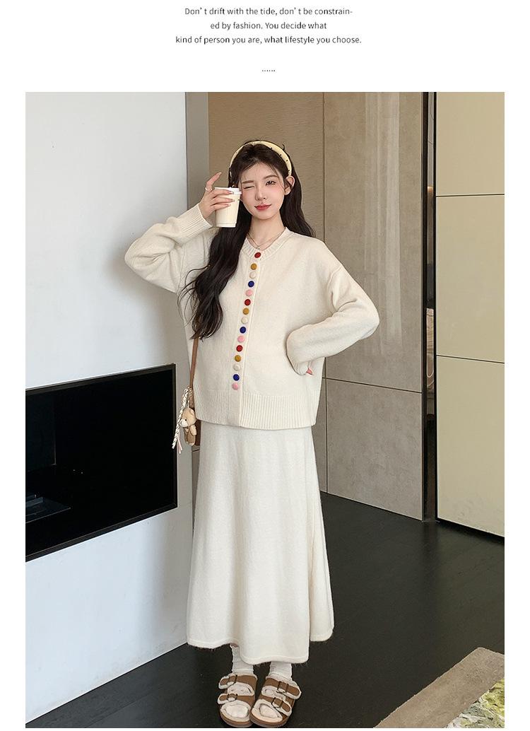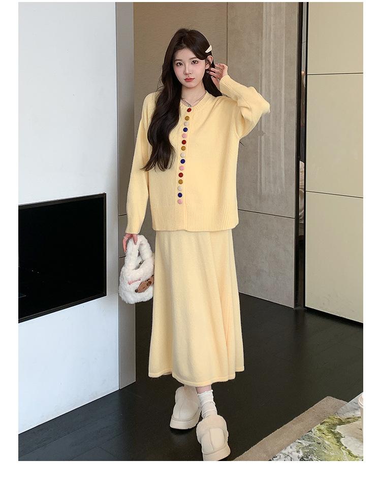 En Stock Otoño/Invierno 2025 Estilo Coreano Holgado Arcoíris Botón Jersey Top de Maternidad + Falda Midi Set de Maternidad Tejido