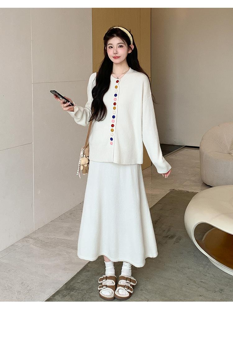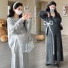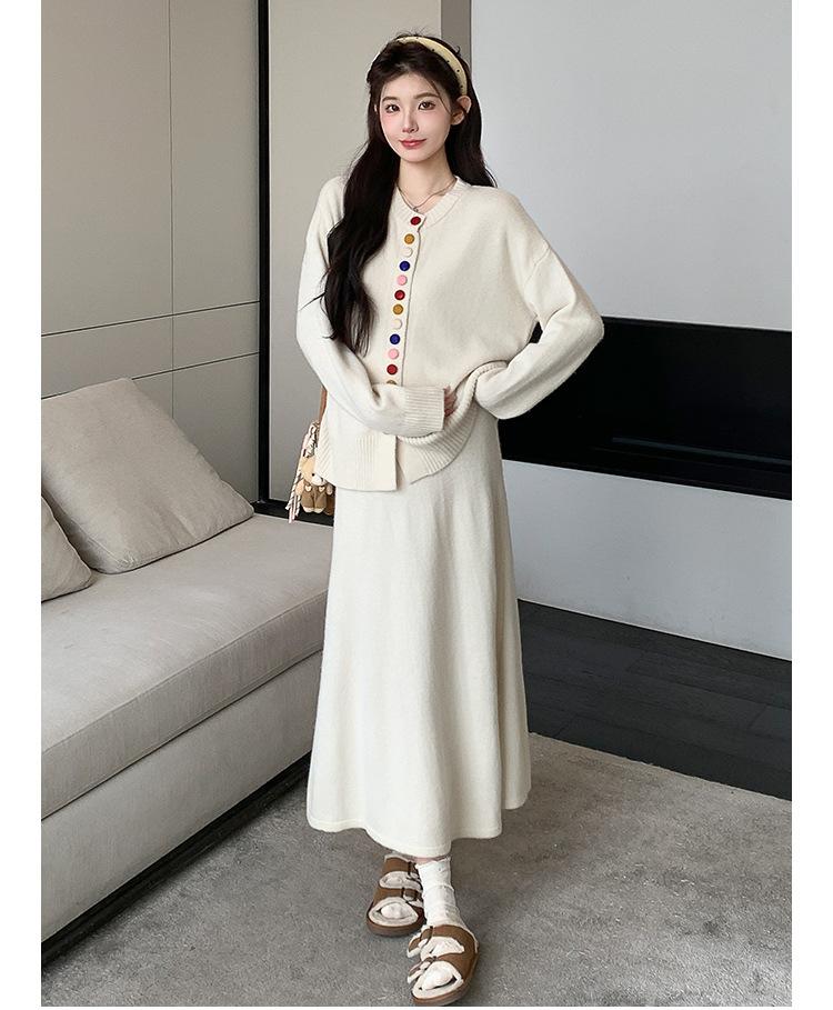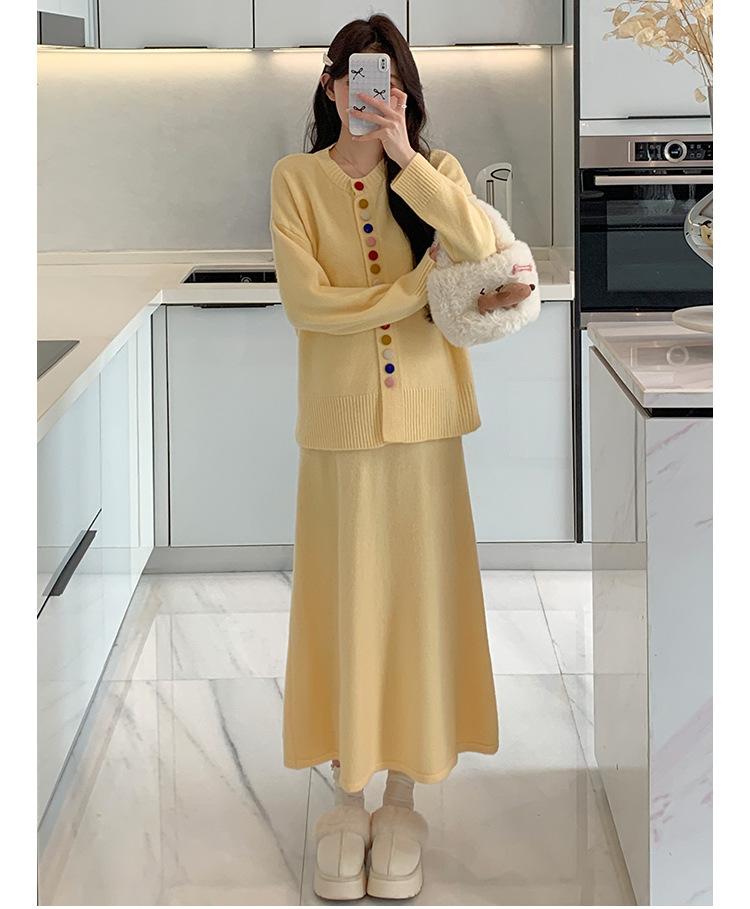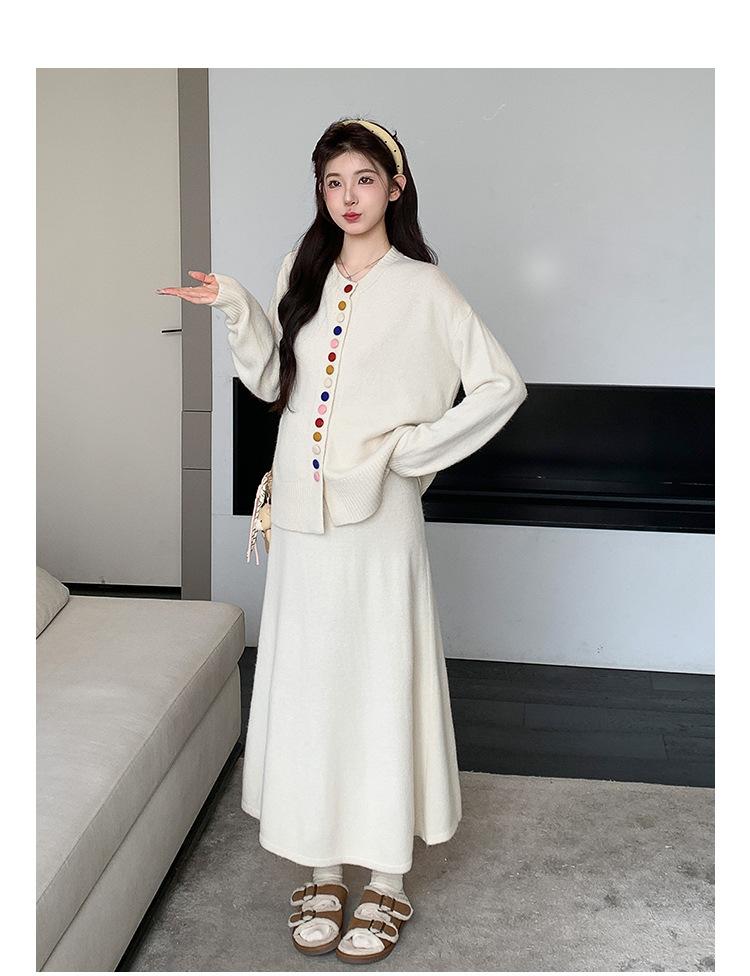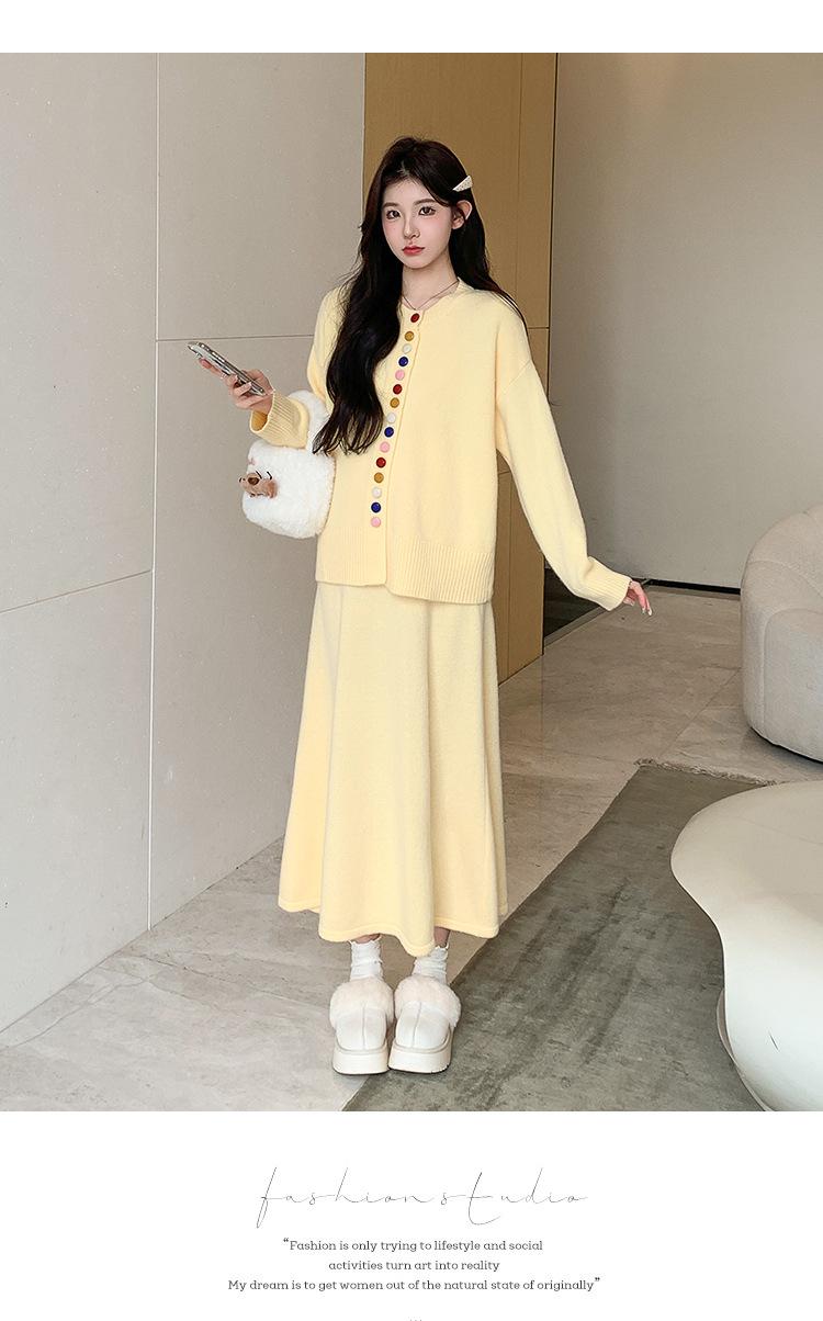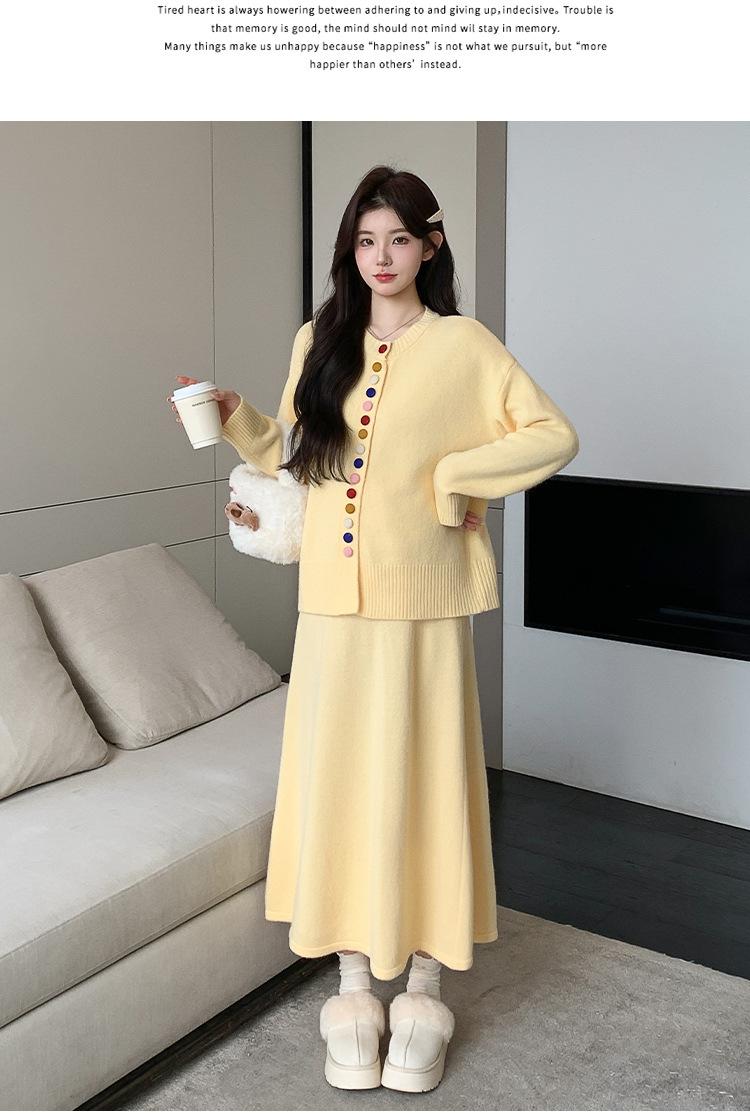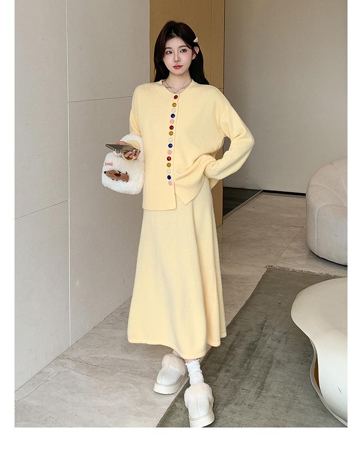 En Stock Otoño/Invierno 2025 Estilo Coreano Holgado Arcoíris Botón Jersey Top de Maternidad + Falda Midi Set de Maternidad Tejido