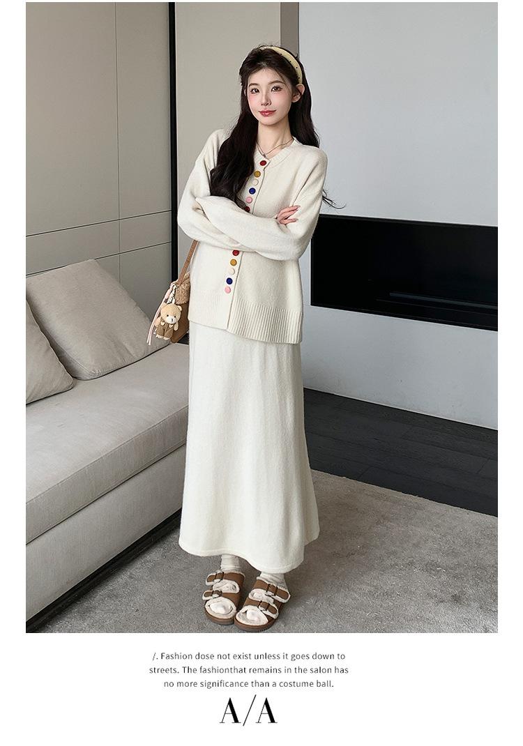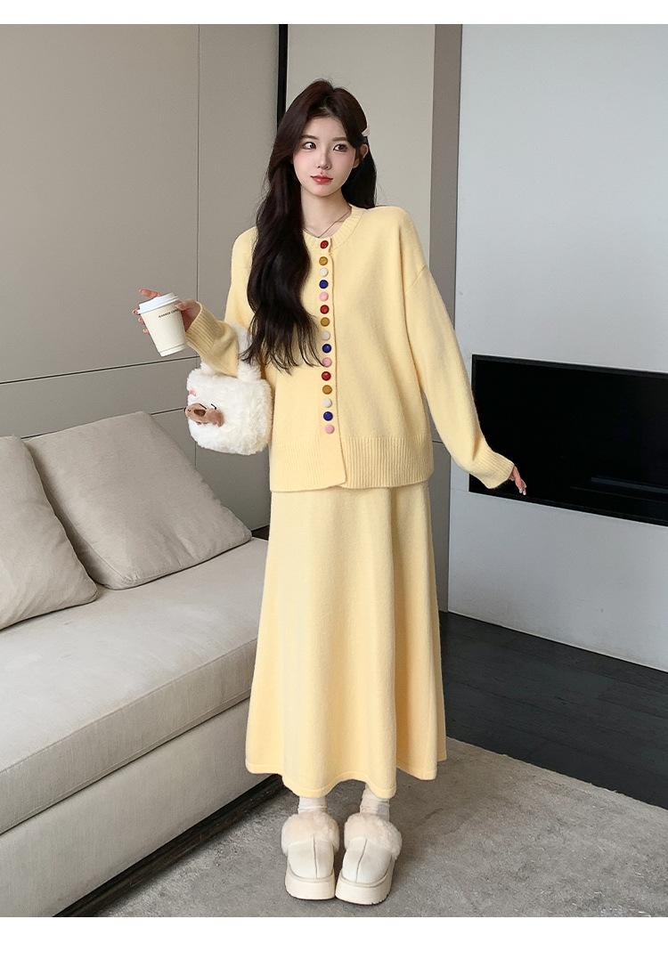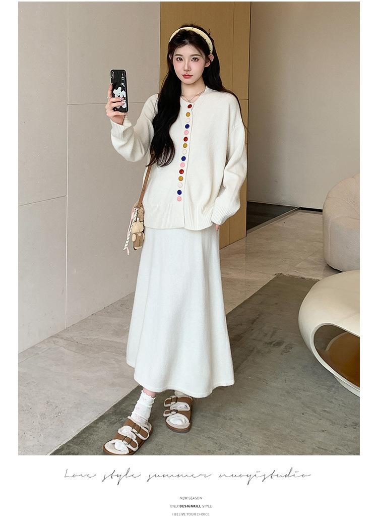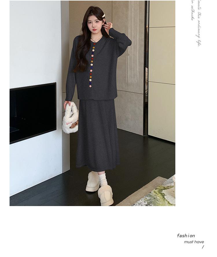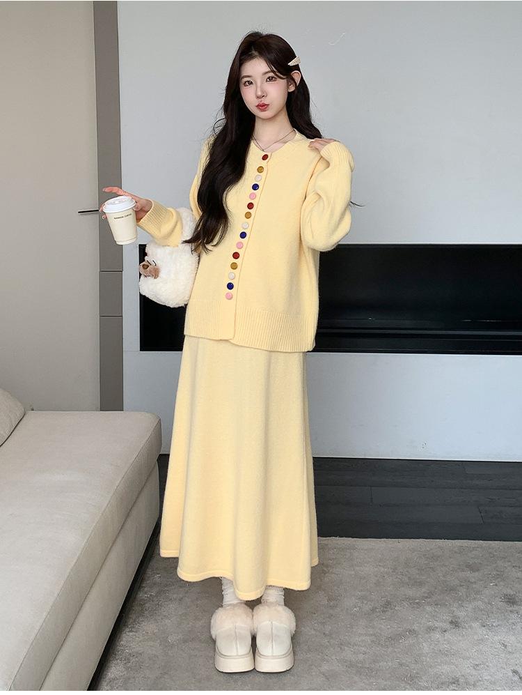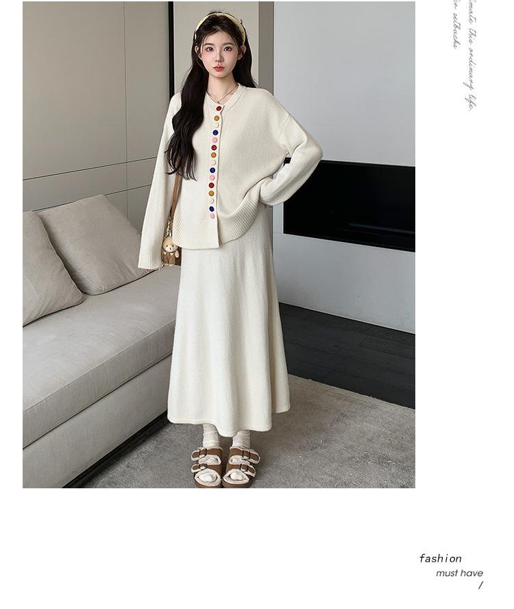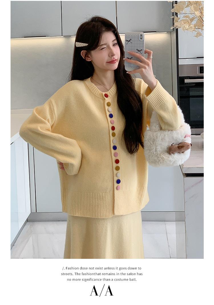 En Stock Otoño/Invierno 2025 Estilo Coreano Holgado Arcoíris Botón Jersey Top de Maternidad + Falda Midi Set de Maternidad Tejido
