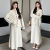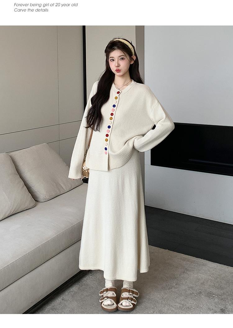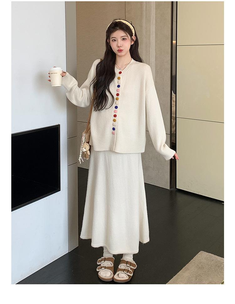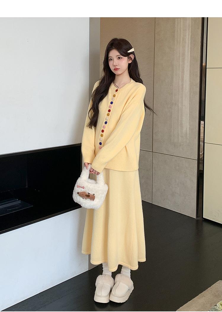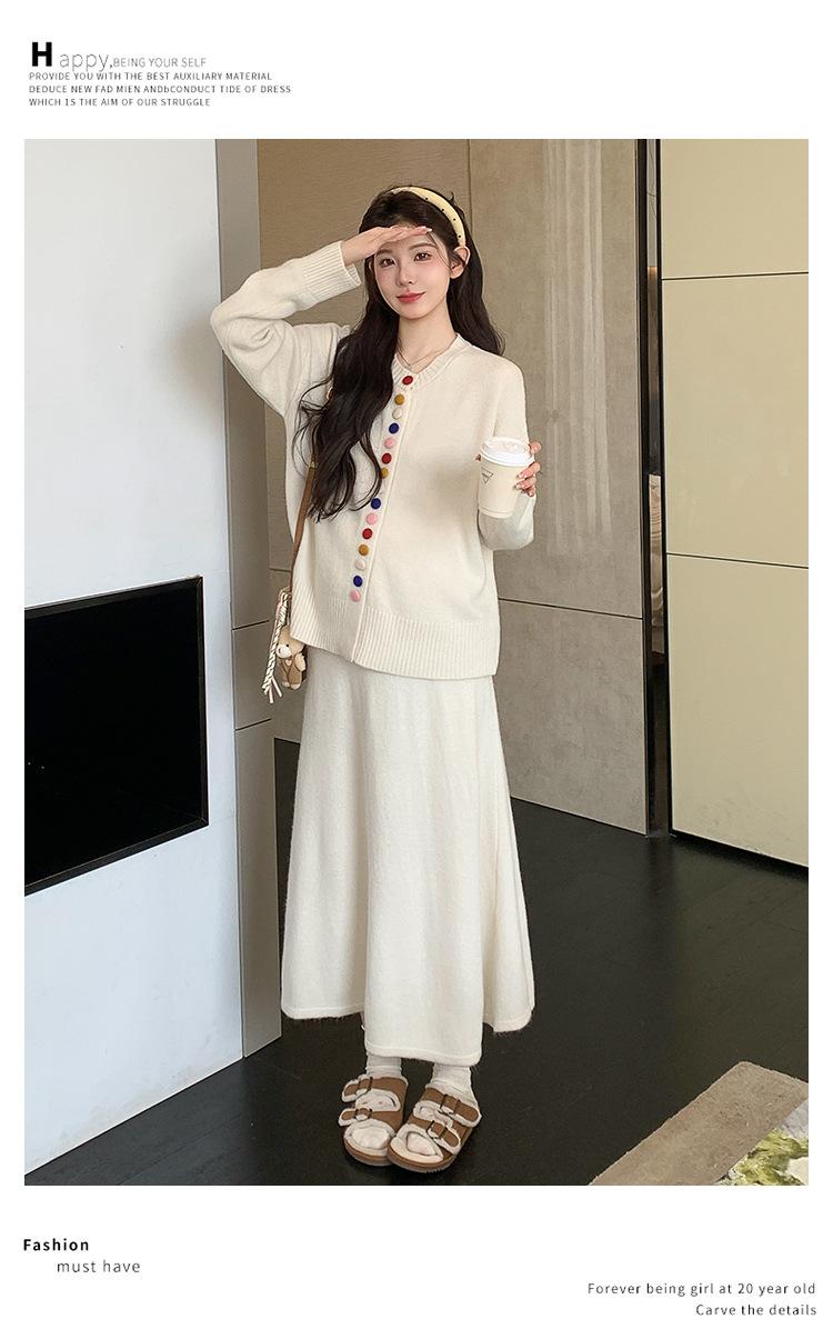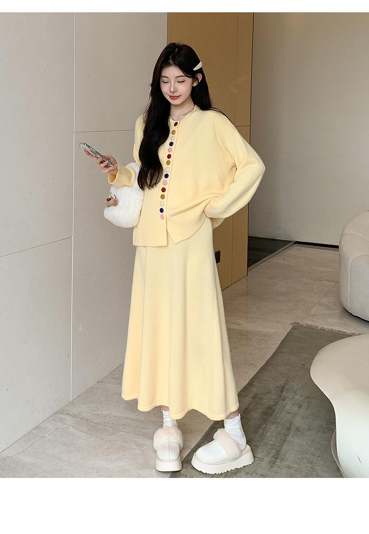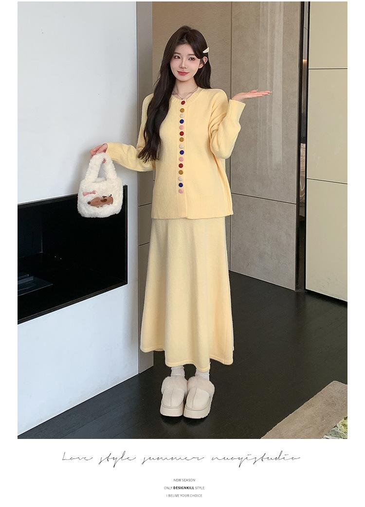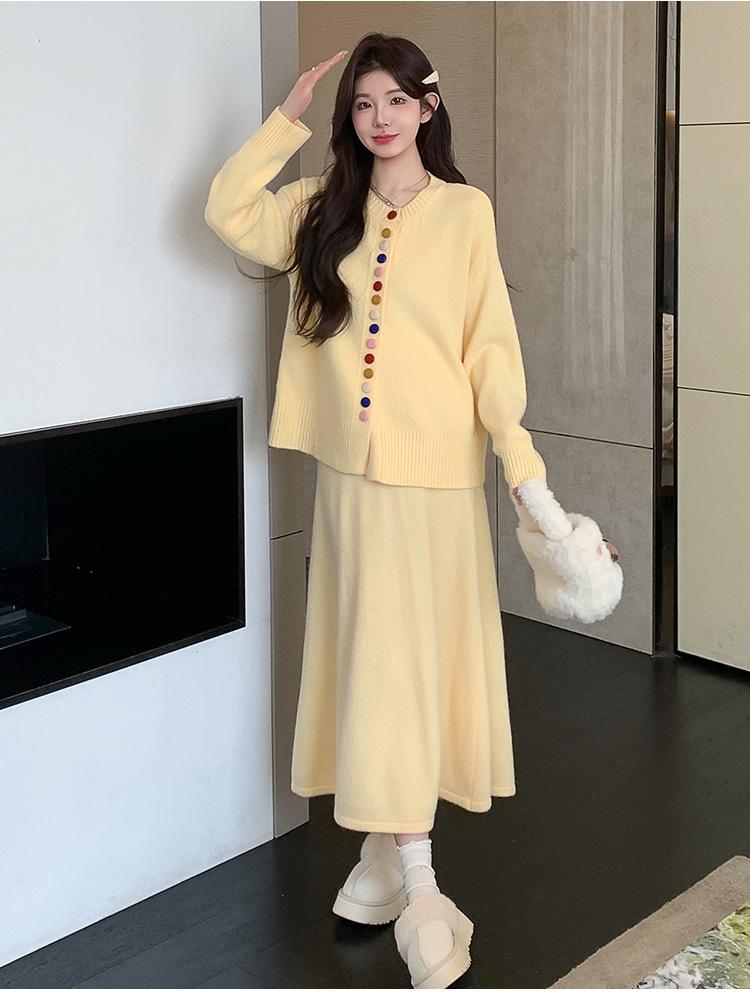En Stock Otoño/Invierno 2025 Estilo Coreano Holgado Arcoíris Botón Jersey Top de Maternidad + Falda Midi Set de Maternidad Tejido