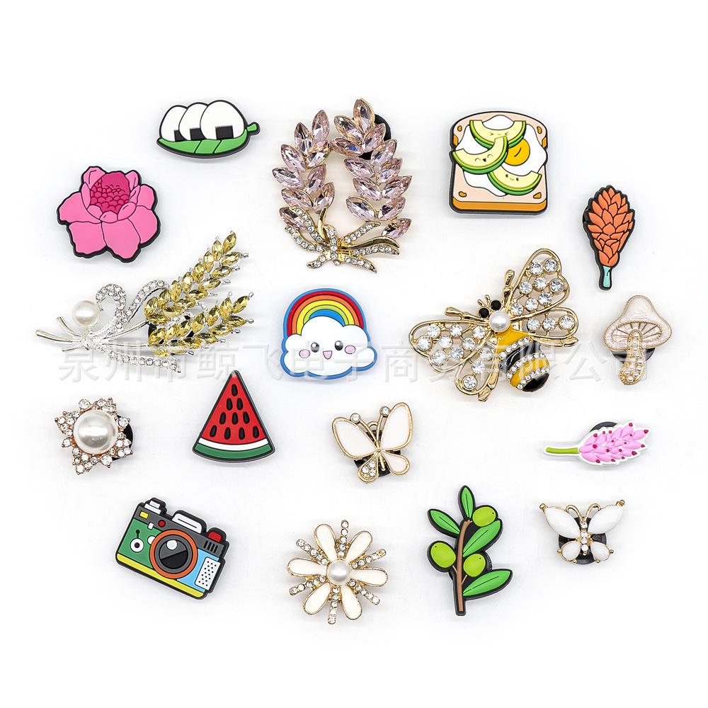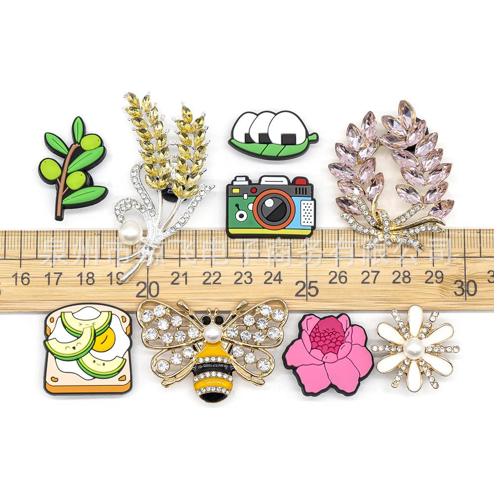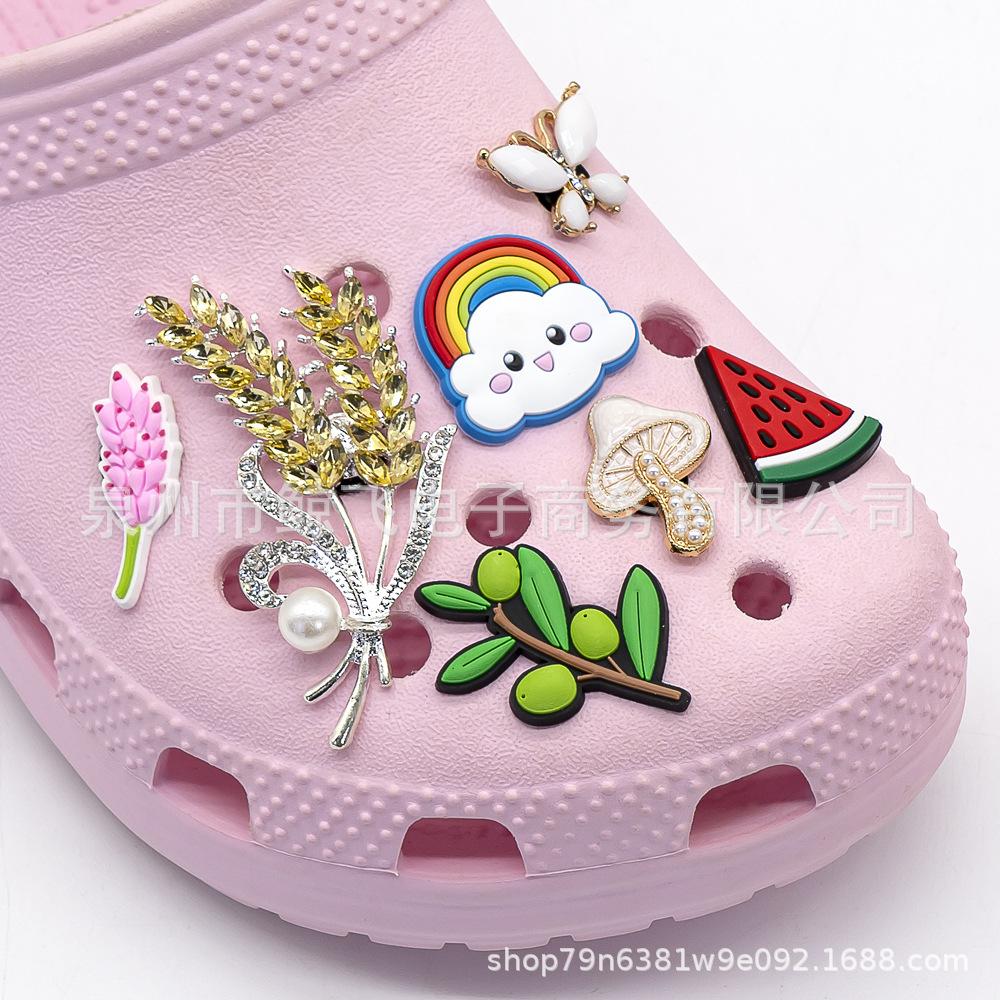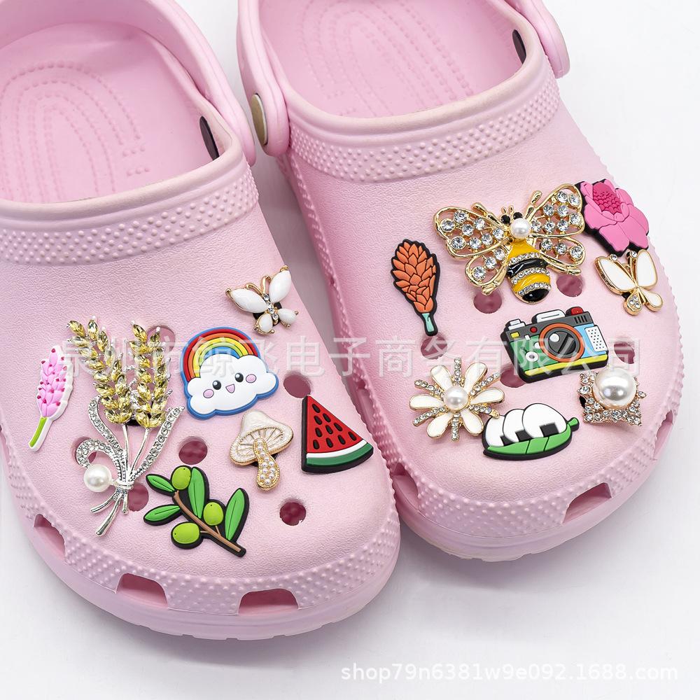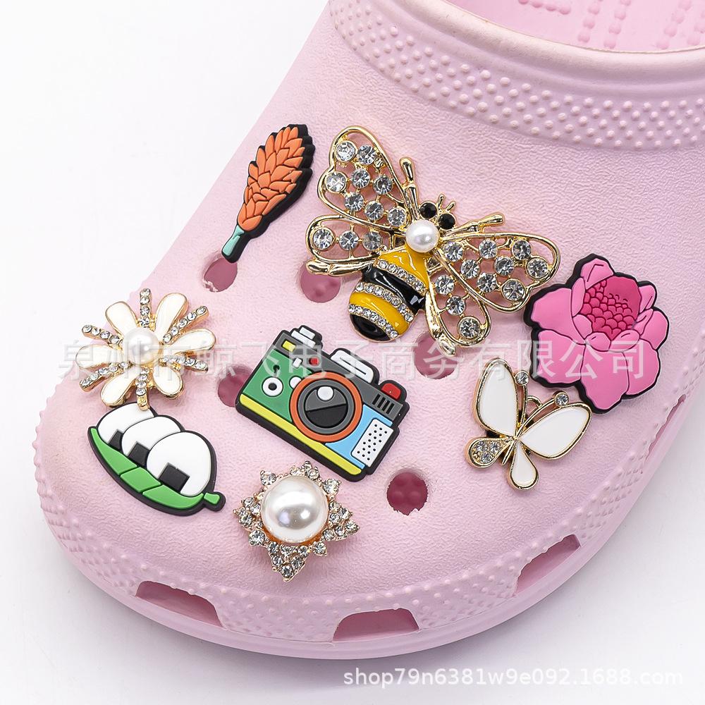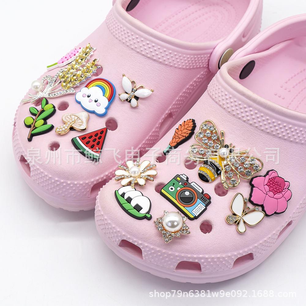 Zuecos Metálicos Nuevos de Venta Caliente Flor Casual Dibujos Animados Versátiles Zapatos de Jardín Hebilla de Zapato Sandalias DIY Accesorios para Zapatos de Cristal