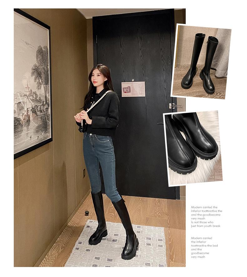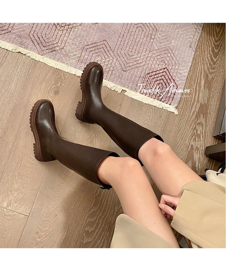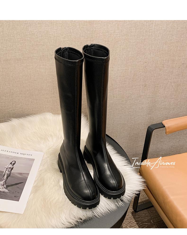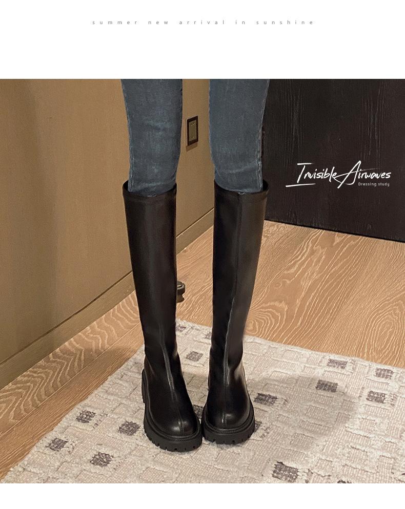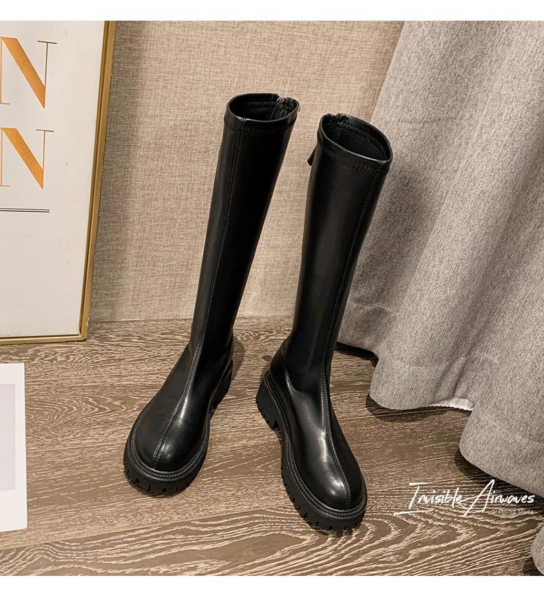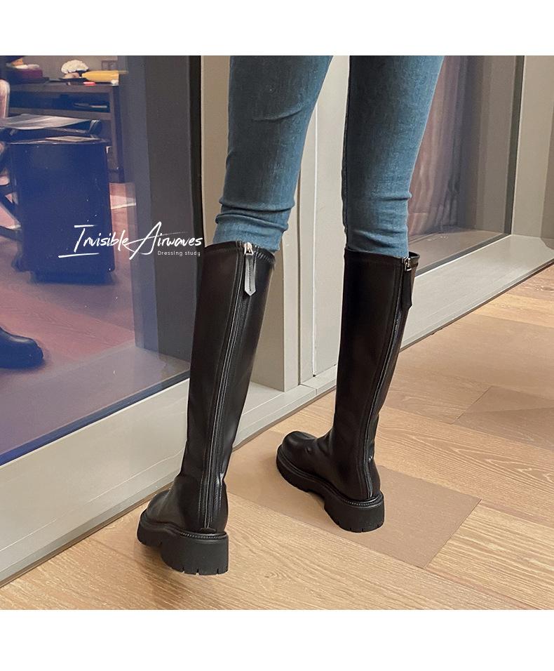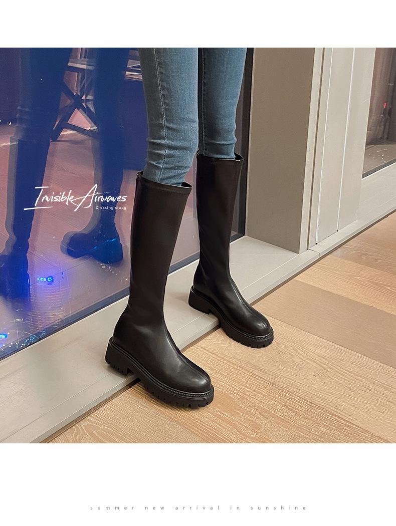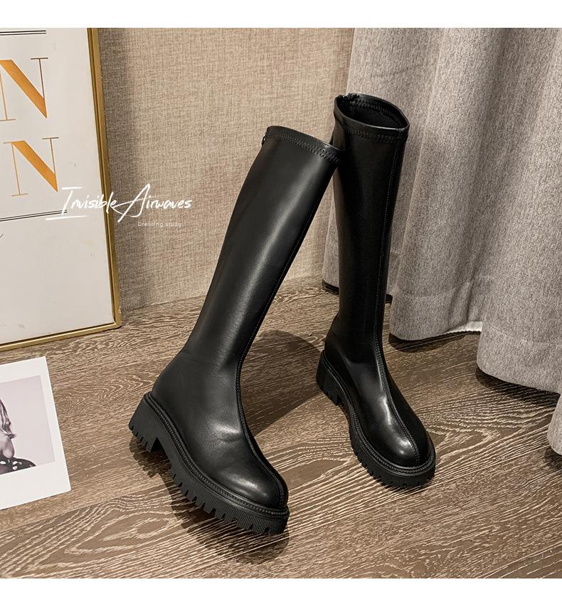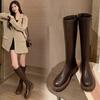 Botas hasta la rodilla para mujer 2023 Otoño e Invierno Botas ajustadas Botas largas de suela gruesa Botas de montar de caña alta con forro polar