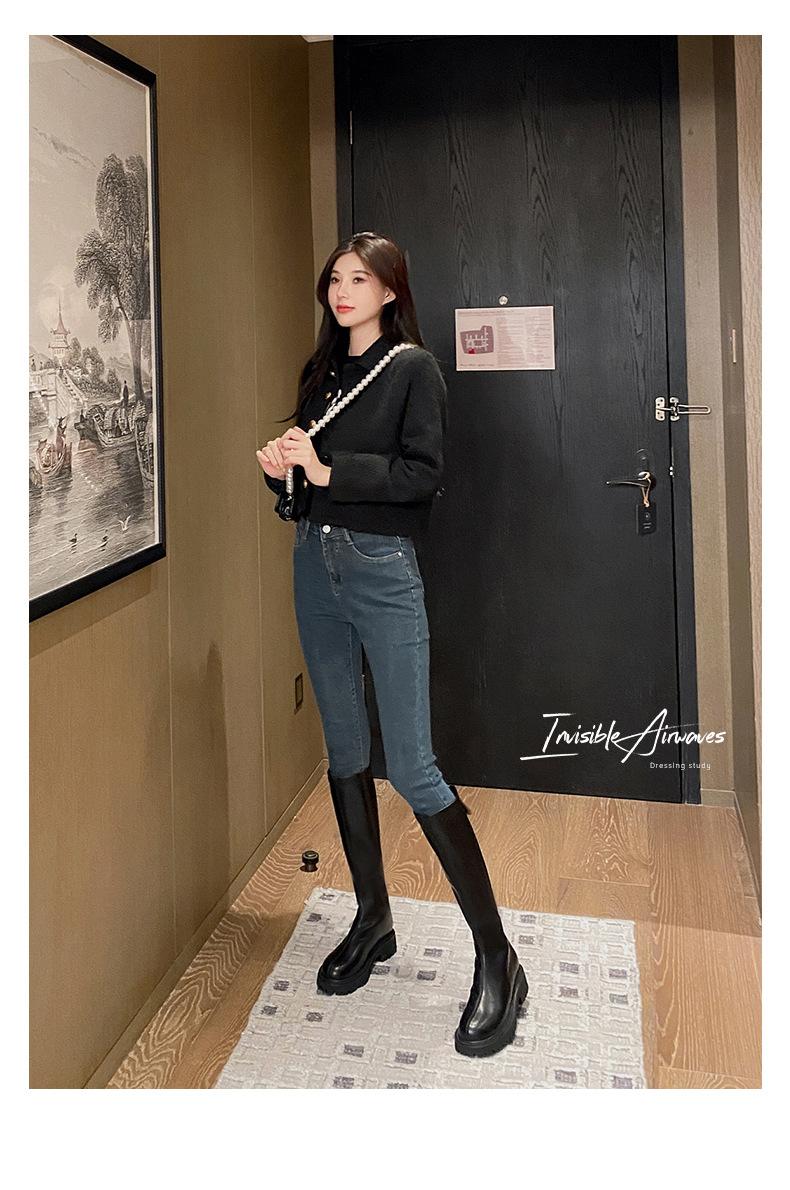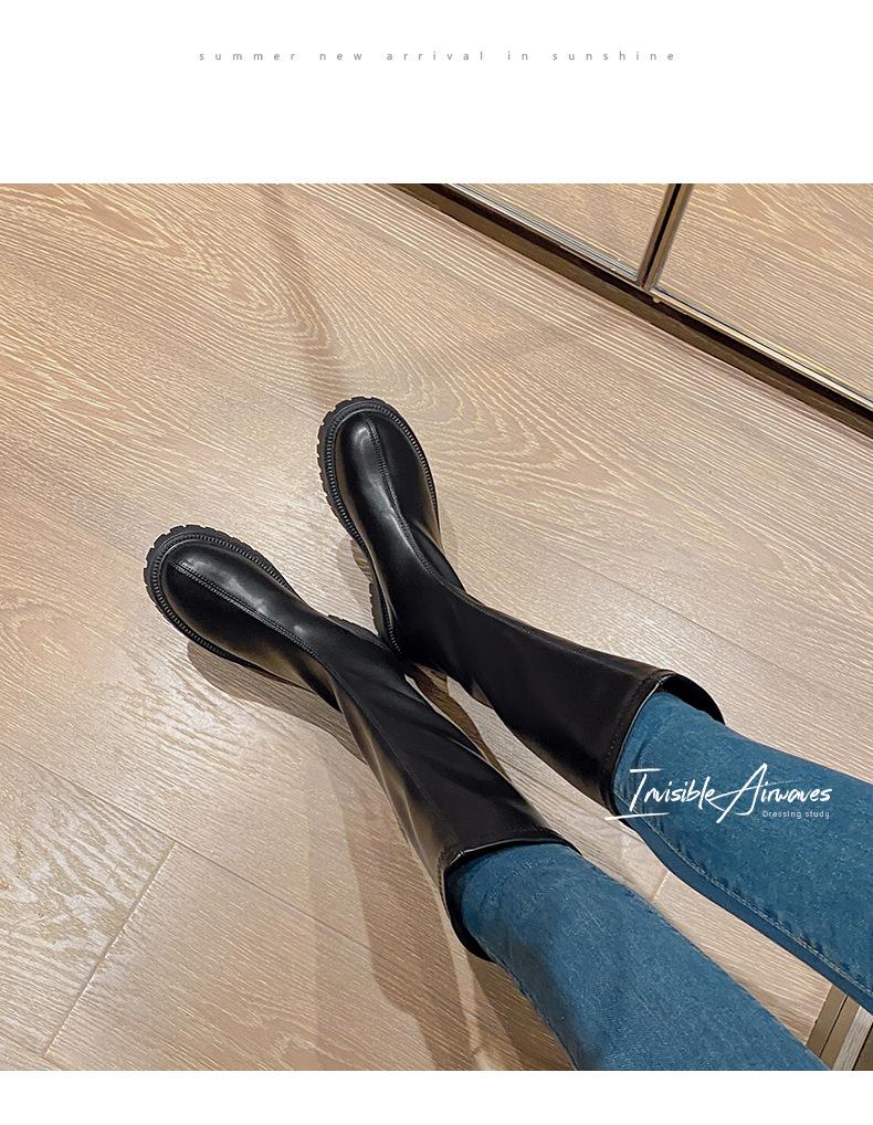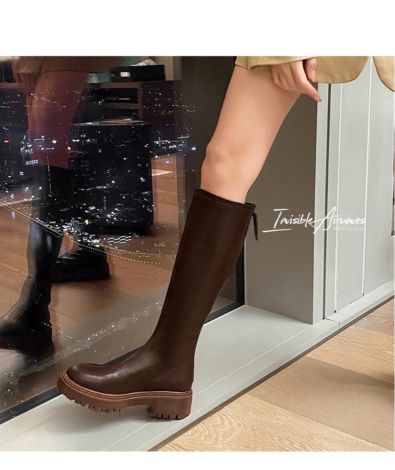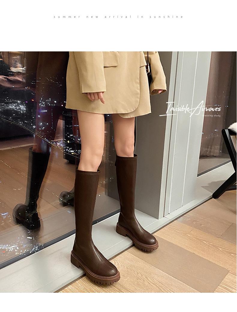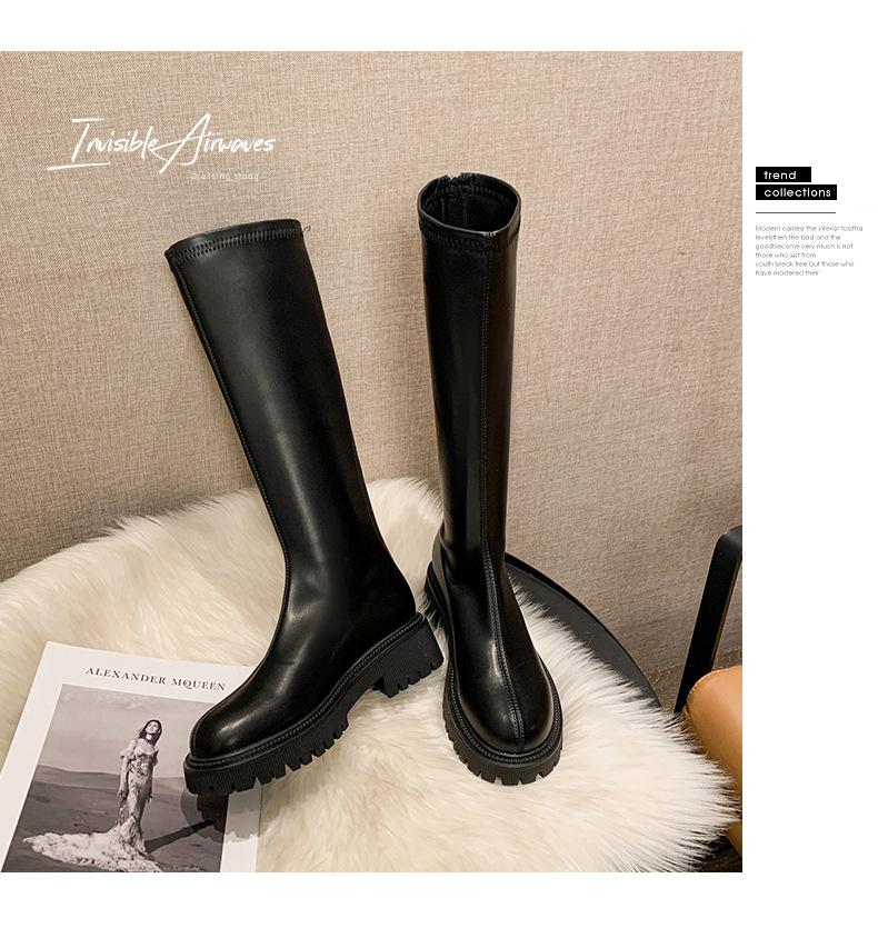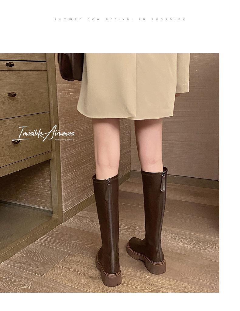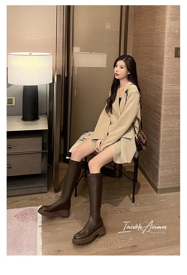 Botas hasta la rodilla para mujer 2023 Otoño e Invierno Botas ajustadas Botas largas de suela gruesa Botas de montar de caña alta con forro polar