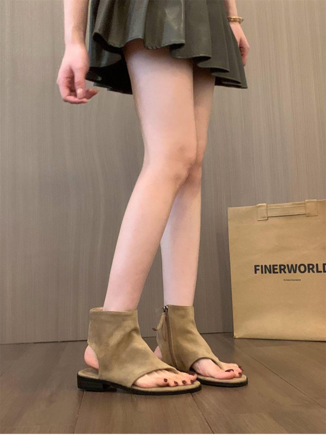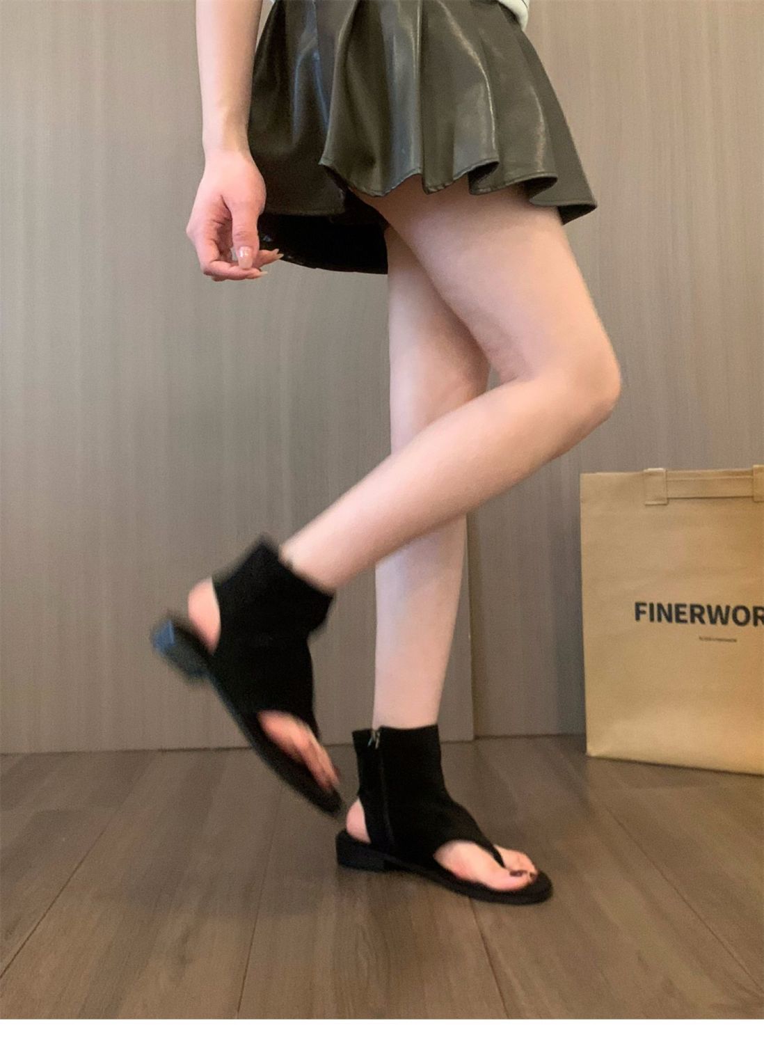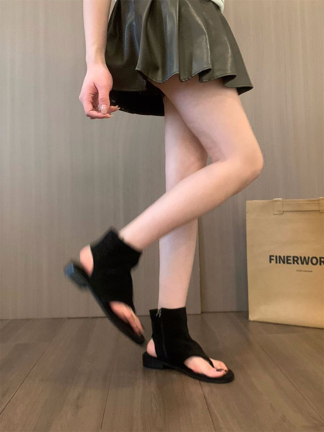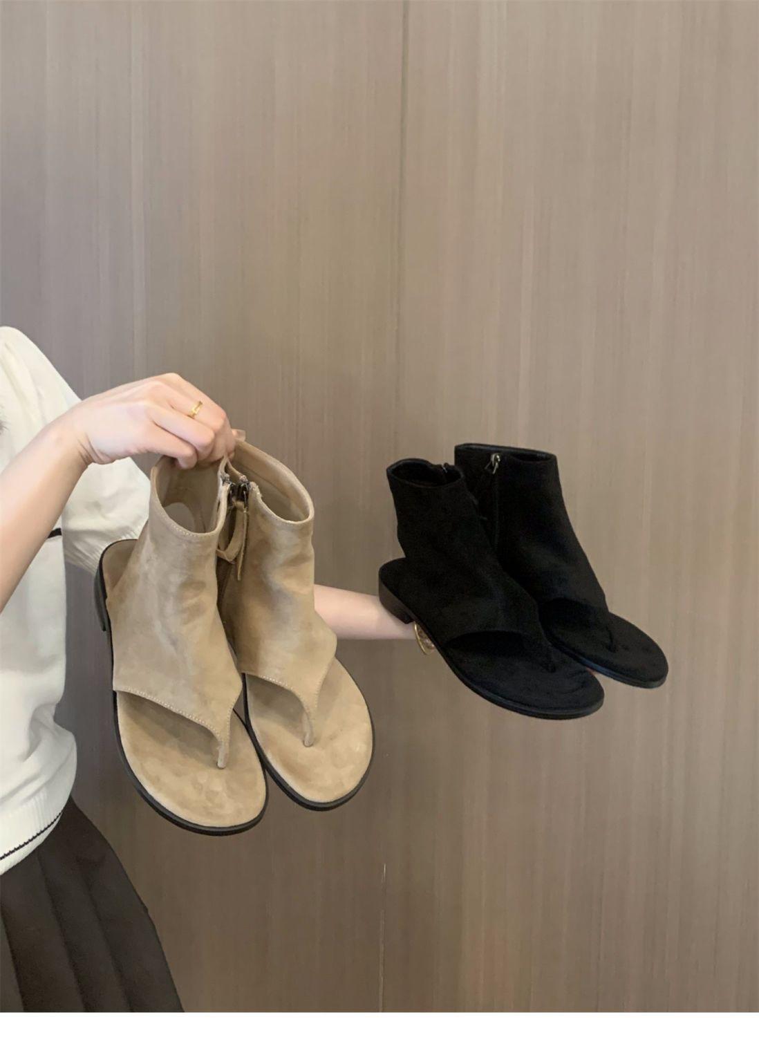 Sandalias de Tanga Casuales de Primavera y Otoño Nuevo Estilo Coreano para Mujer, Sandalias Cortas Versátiles de Tacón Bajo, Ropa Exterior de Moda para Mujer Celebridad de Internet