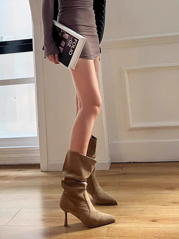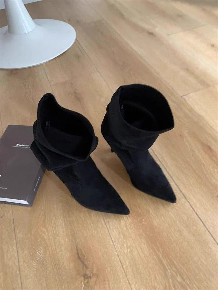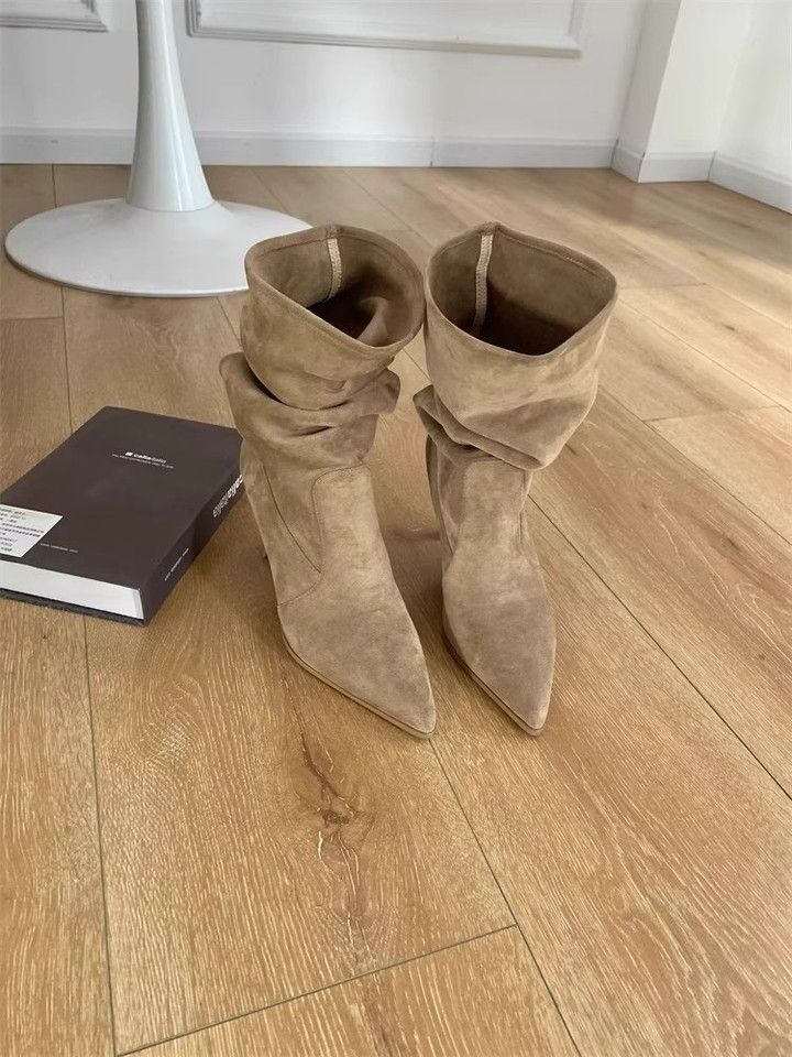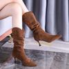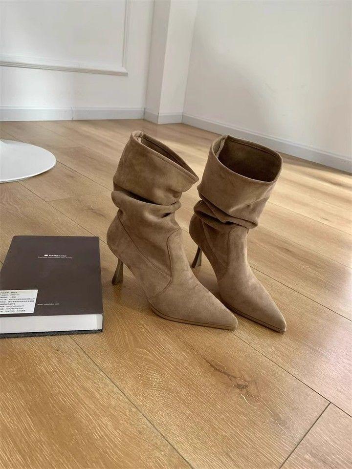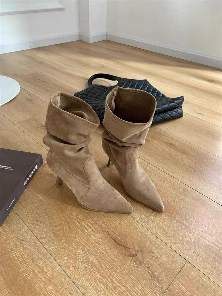 Botas slouch de caña corta occidentales tacones altos de aguja botas vaqueras versátiles botines mujeres adelgazantes moda elegante media pantorrilla botas individuales