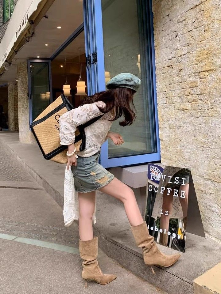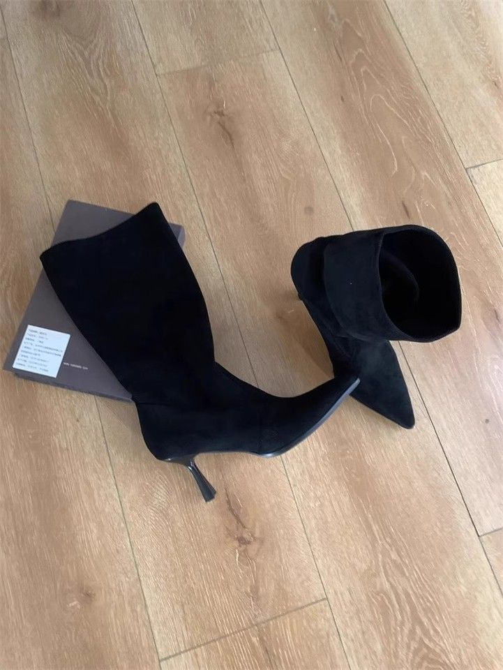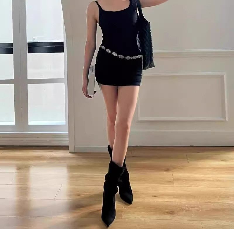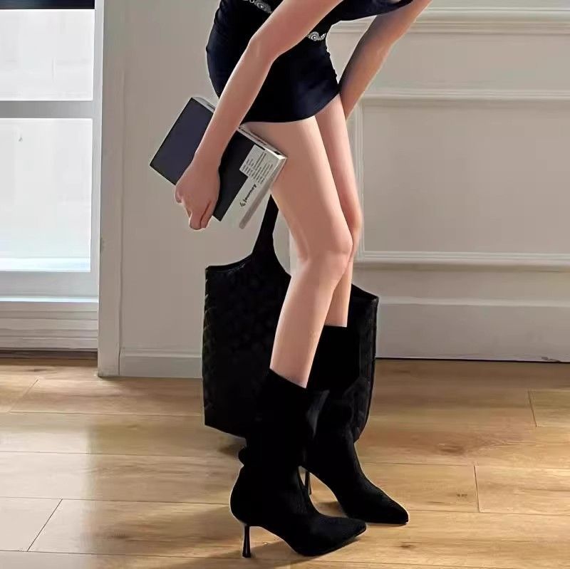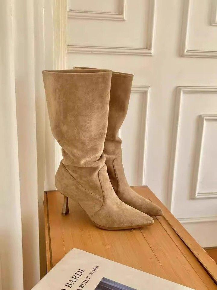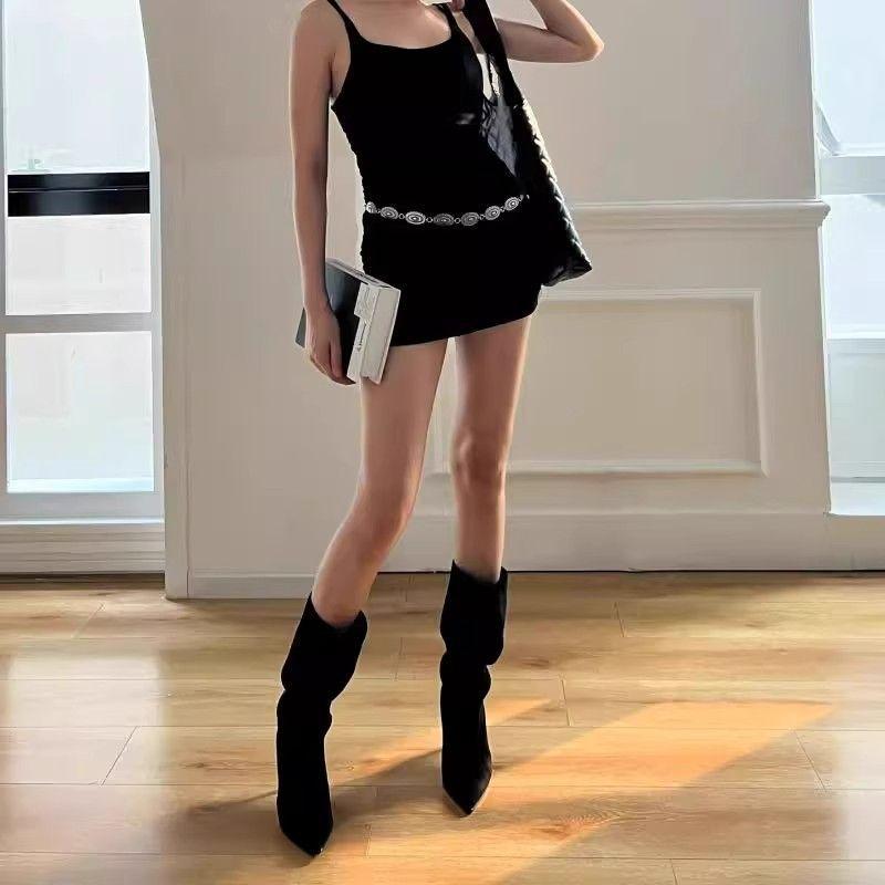 Botas slouch de caña corta occidentales tacones altos de aguja botas vaqueras versátiles botines mujeres adelgazantes moda elegante media pantorrilla botas individuales