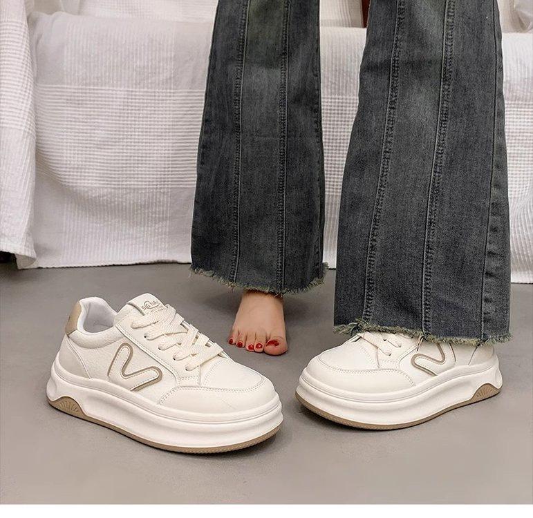 Tenis blancos de suela gruesa para mujer 2025 otoño nuevo estilo caliente versátiles zapatos de mujer zapatos deportivos zapatos de lona zapatos casuales de suela blanda para mujer