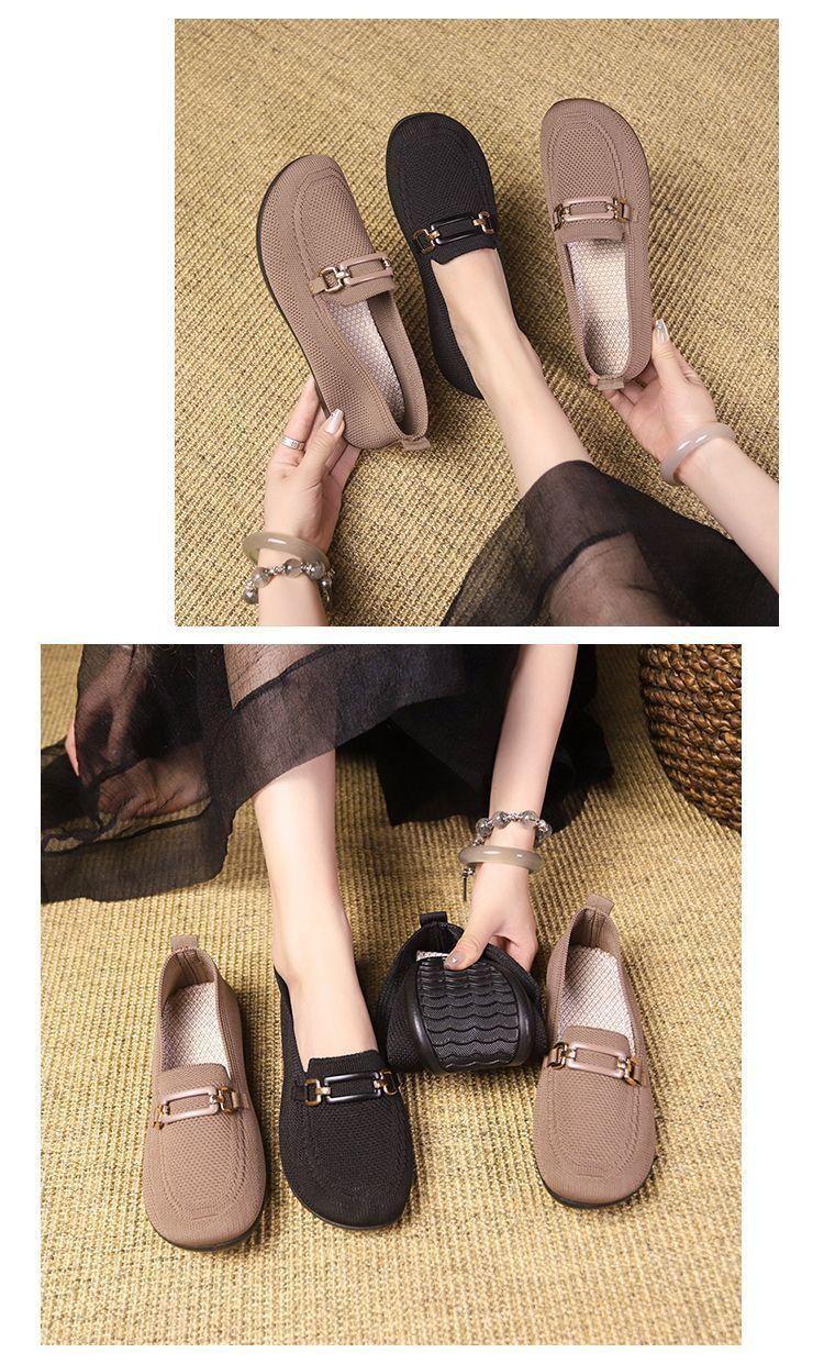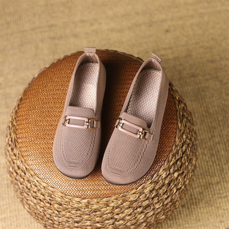 Mocasines de Trabajo Casuales Cómodos Transpirables Slip-on Suela Plana Zapatos de Mamá 2025 Verano Nuevo Estilo Zapatos de Tela de Pekín Antiguo Mujer