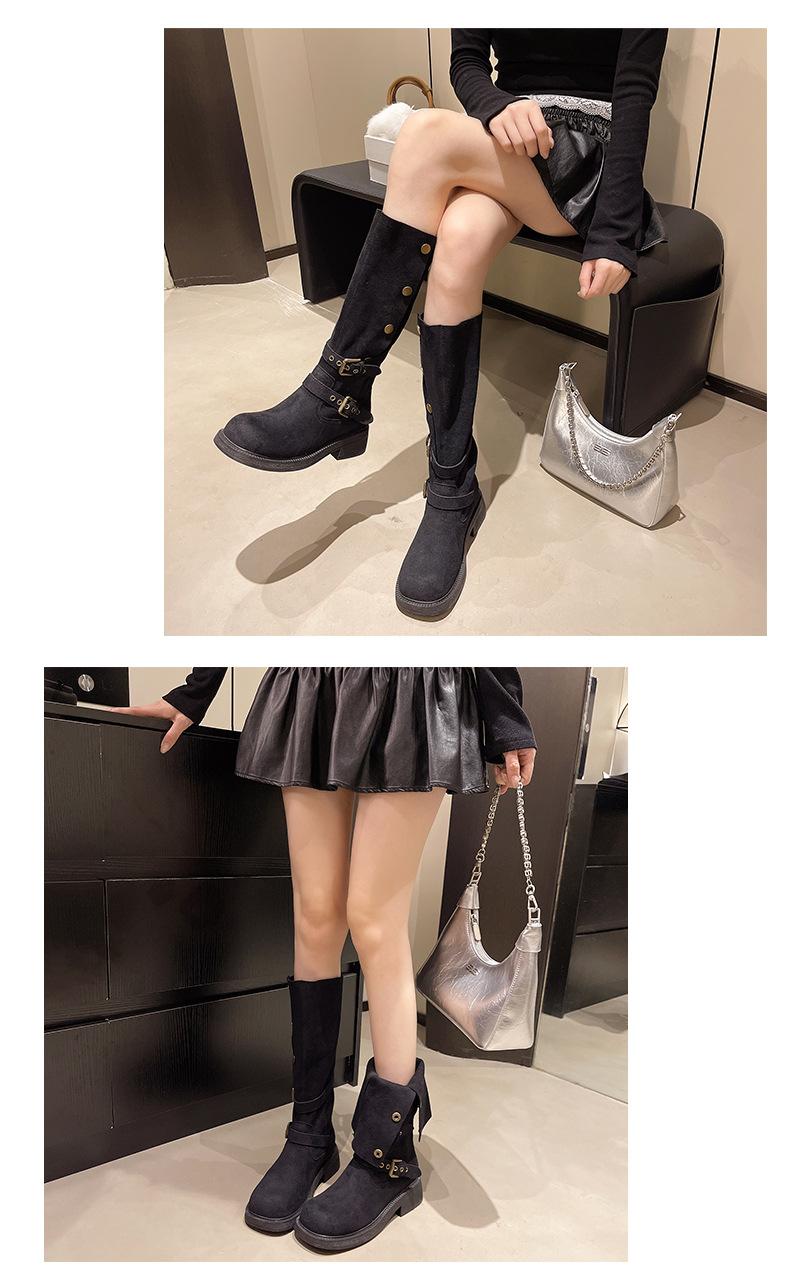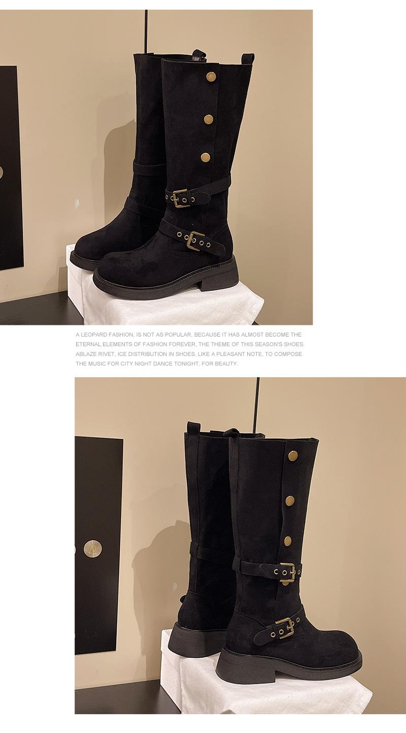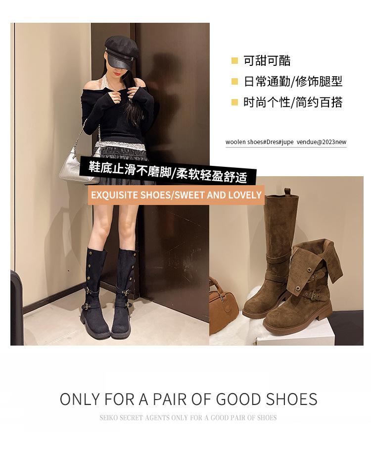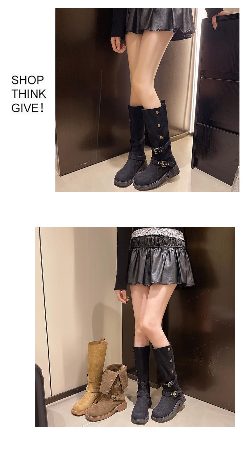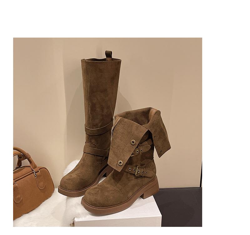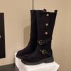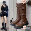 Botas Martin de Caña Alta con Solapa y Suela Gruesa para Mujer Otoño 2025 Nuevo Retro Vaquero Occidental Caballero Botas Adelgazantes de Caña Alta