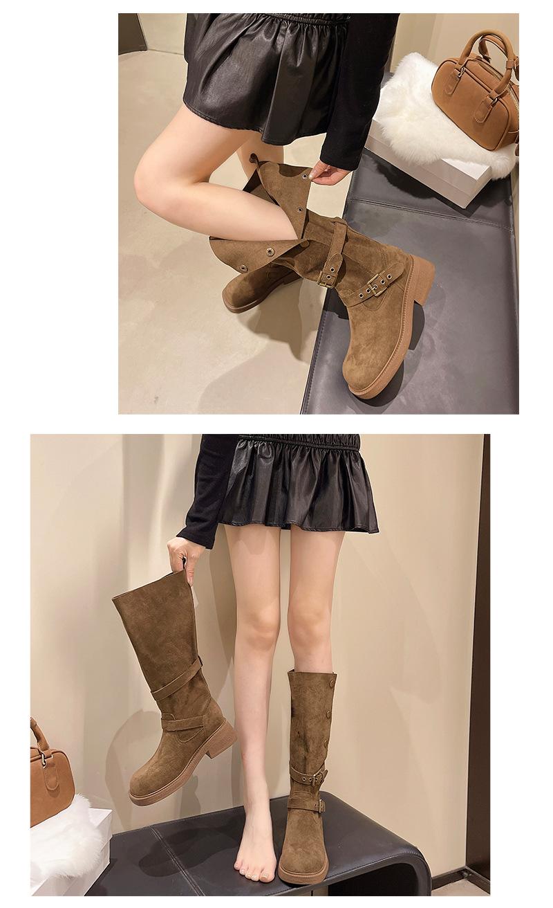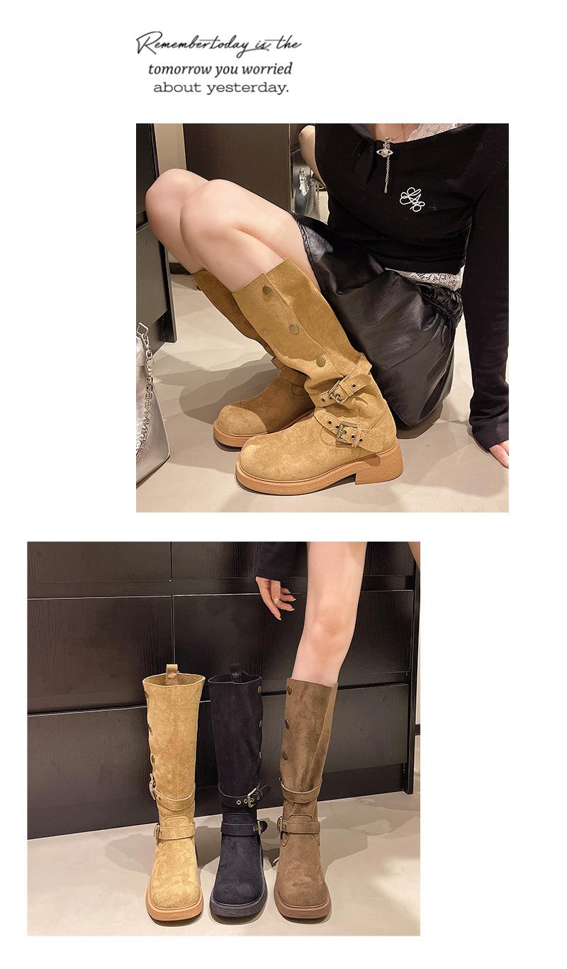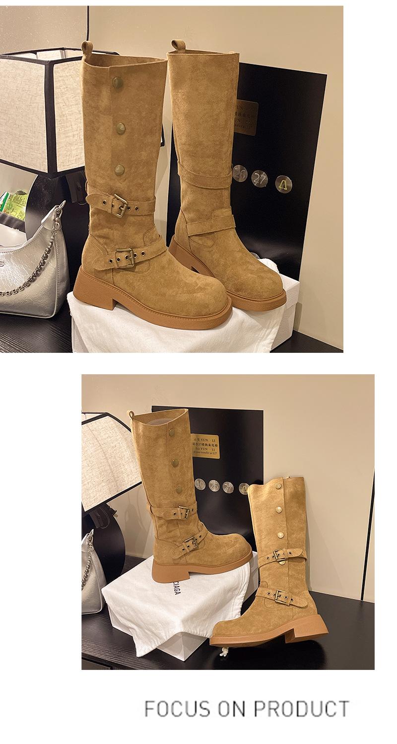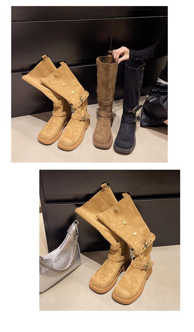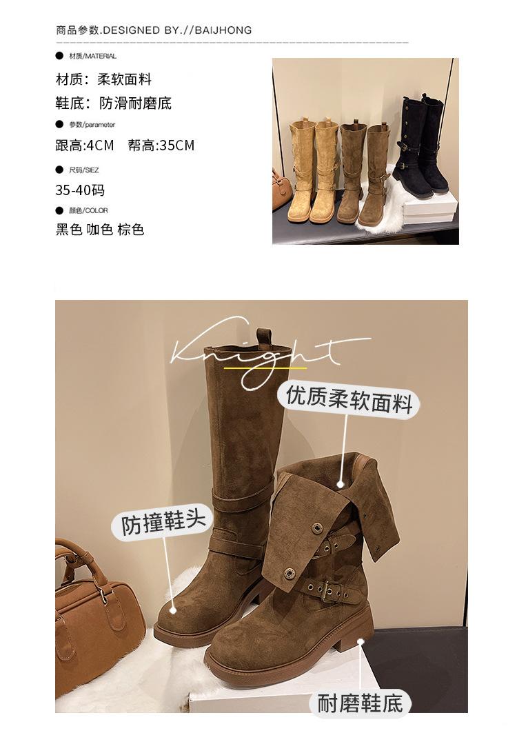 Botas Martin de Caña Alta con Solapa y Suela Gruesa para Mujer Otoño 2025 Nuevo Retro Vaquero Occidental Caballero Botas Adelgazantes de Caña Alta