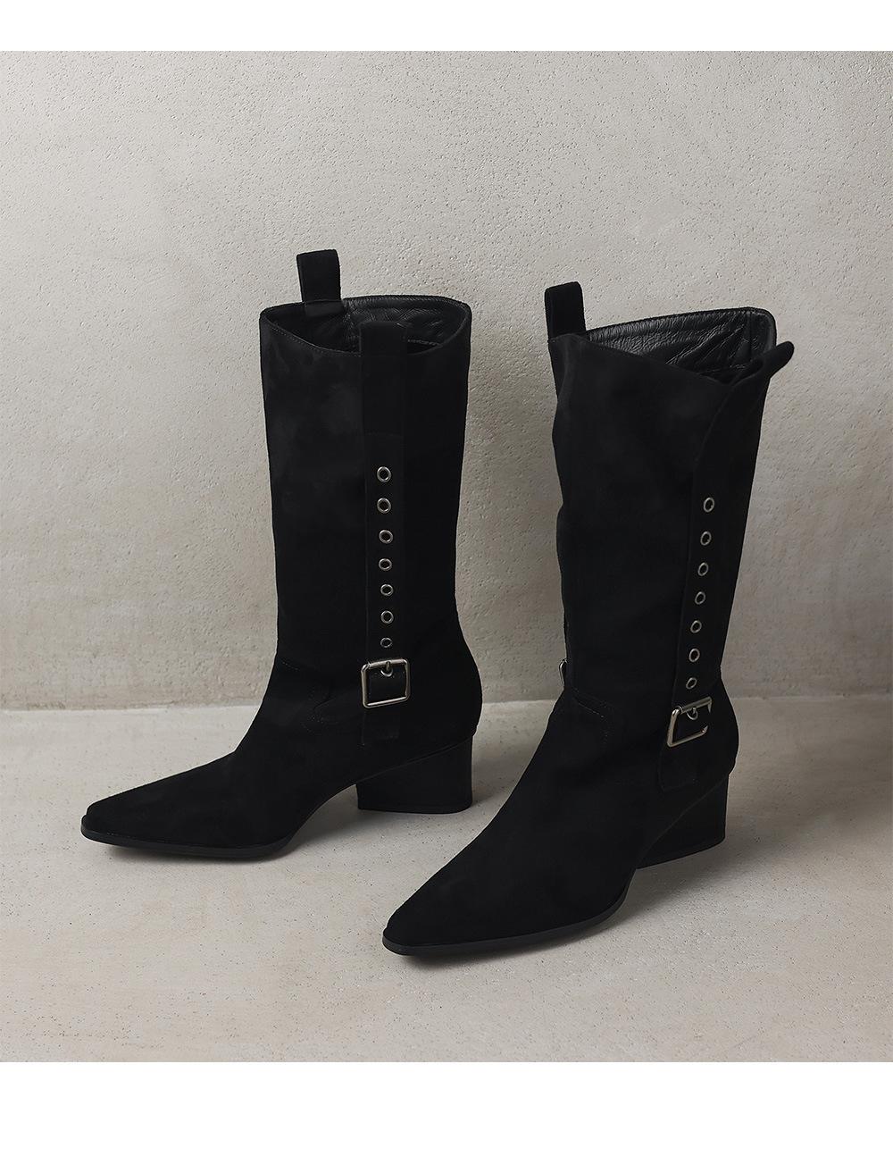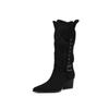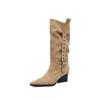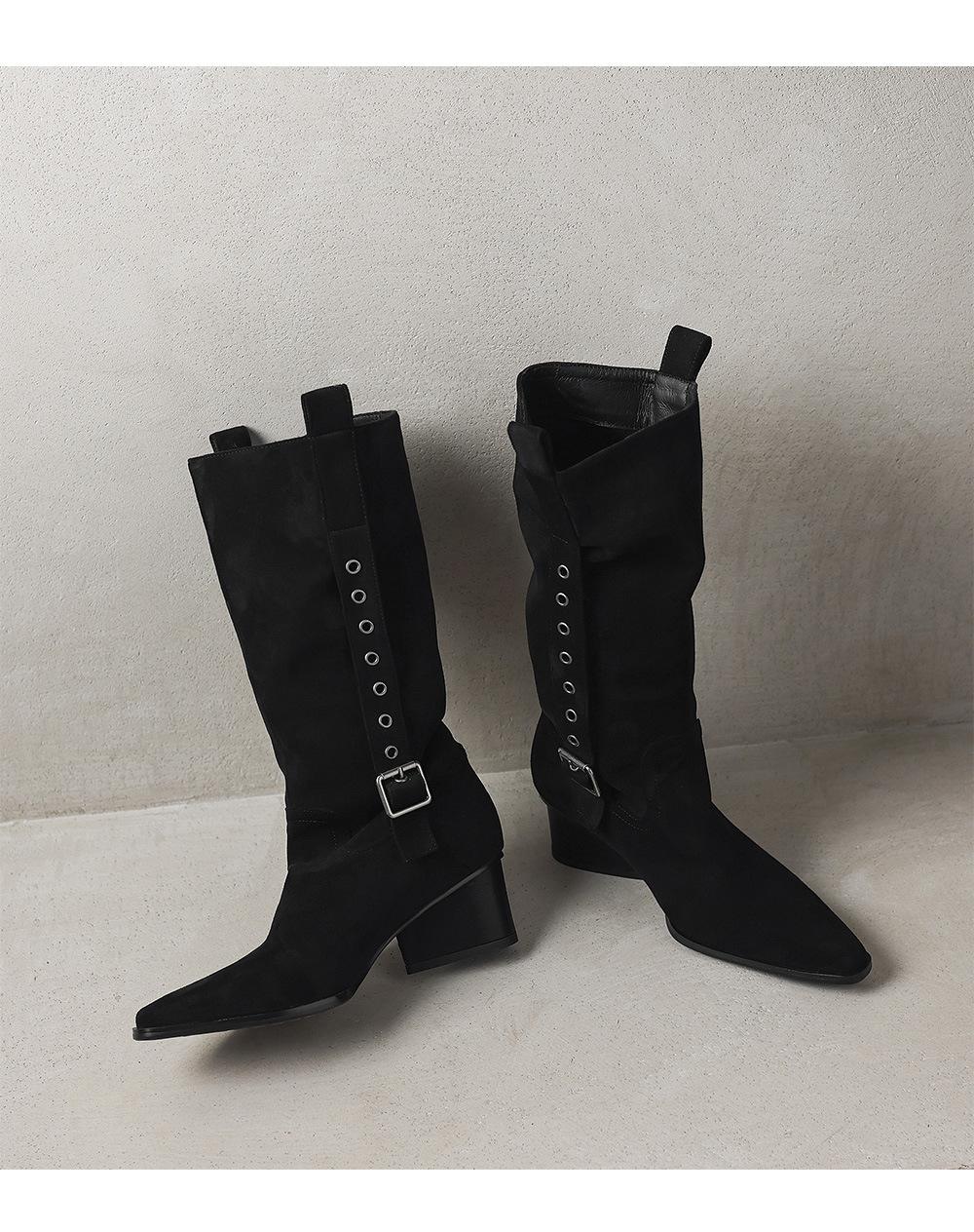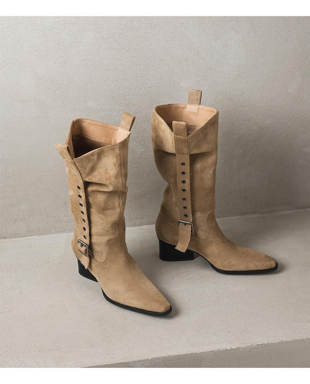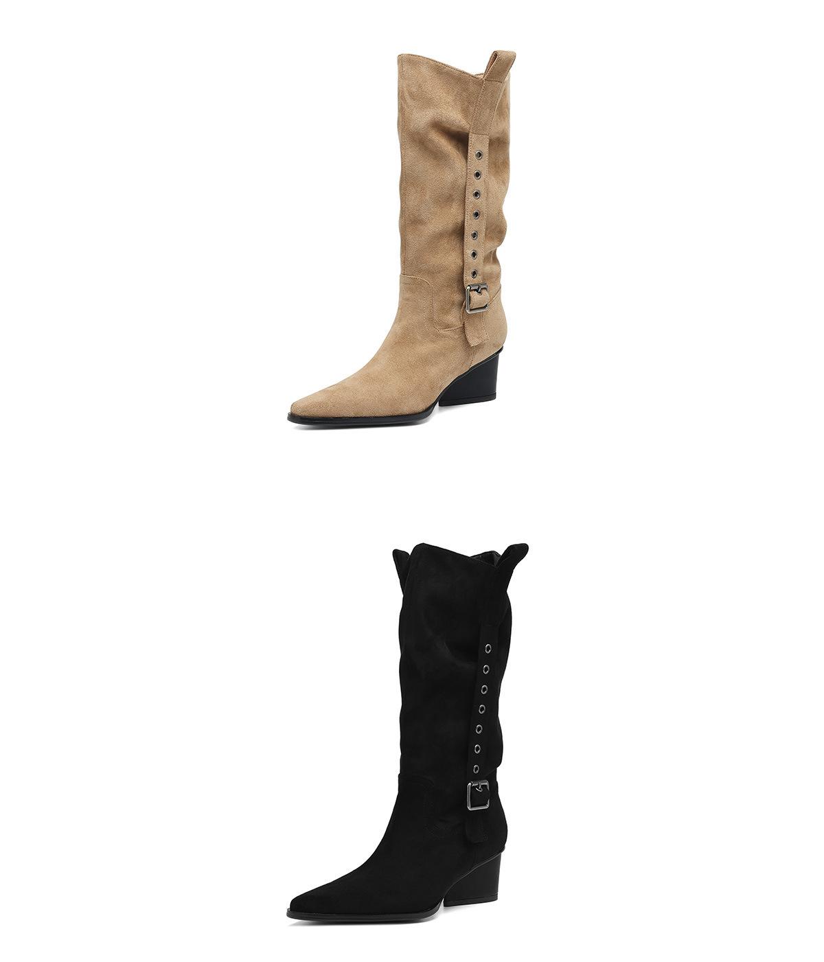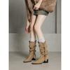 Botas francesas de tacón grueso fruncidas slouch hasta media pantorrilla para mujer 2025 otoño/invierno nuevas caña ancha botas vaqueras occidentales botas cortas adelgazantes