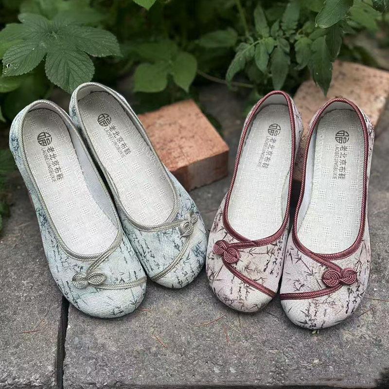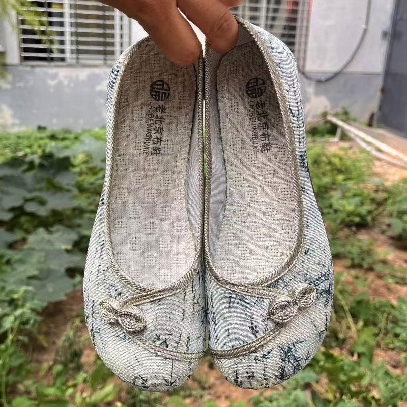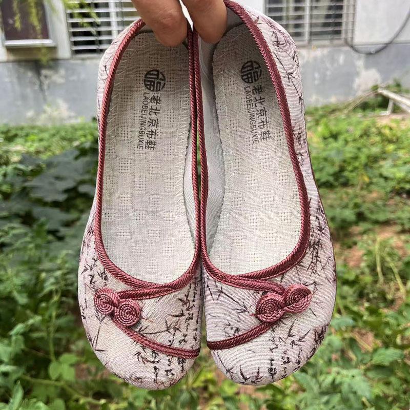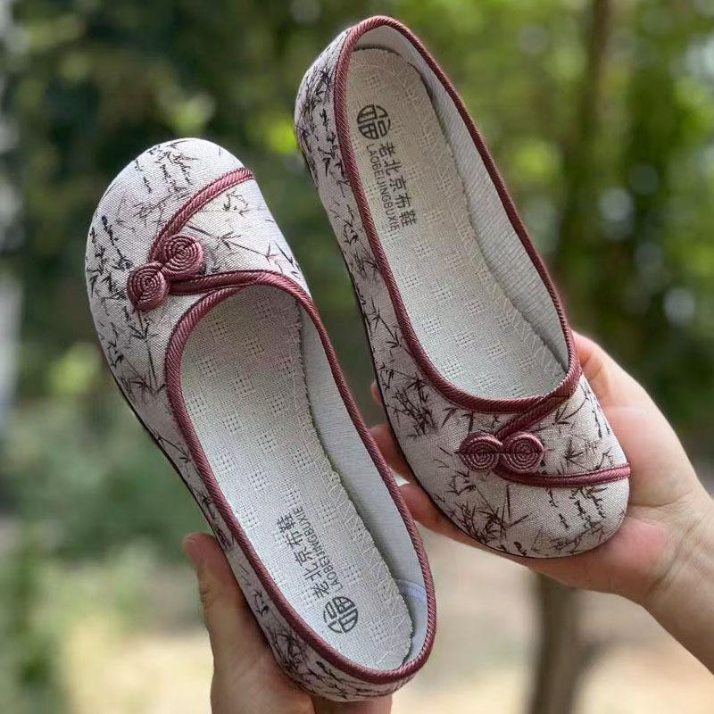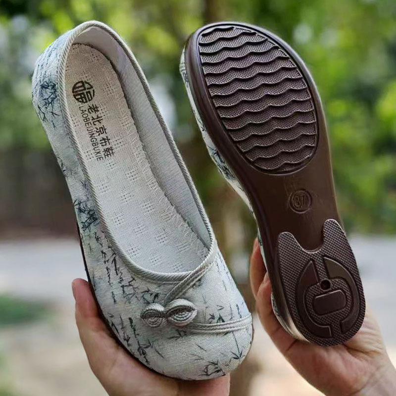 Zapatos de Tela Estilo Nuevo Pekín Antiguo para Mujer Suela Suave Tacón Plano Edad Media y Avanzada Slip-On de Un Paso Zapatos de Madre para Señora Zapatos de Mujer de Corte Bajo