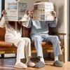 Pantuflas de algodón con sensación de pisar mierda para mujer 2025 nuevo estilo invierno hogar cálido pareja transpirables pantuflas de felpa hombres otoño invierno