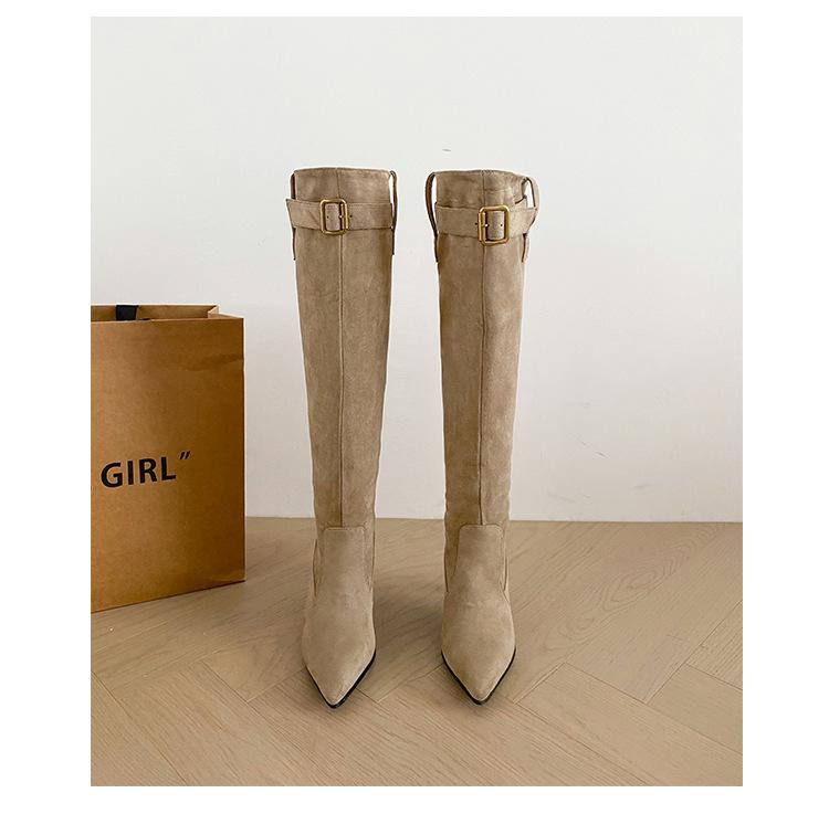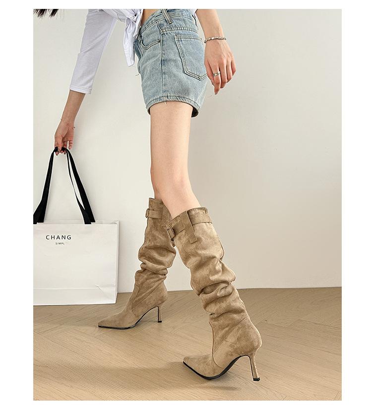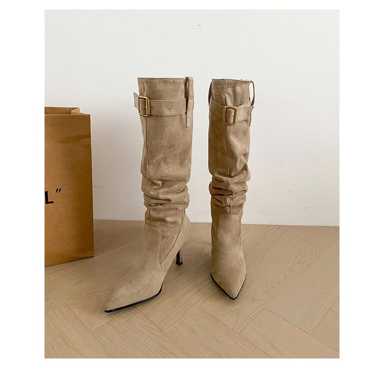 Punta Puntiaguda Tacón de Aguja Adelgazantes Botas Altas hasta el Muslo para Mujer Otoño Invierno 2025 Botas Slouch Hebilla Tacón Alto Botas Altas hasta el Muslo Botas Ajustadas