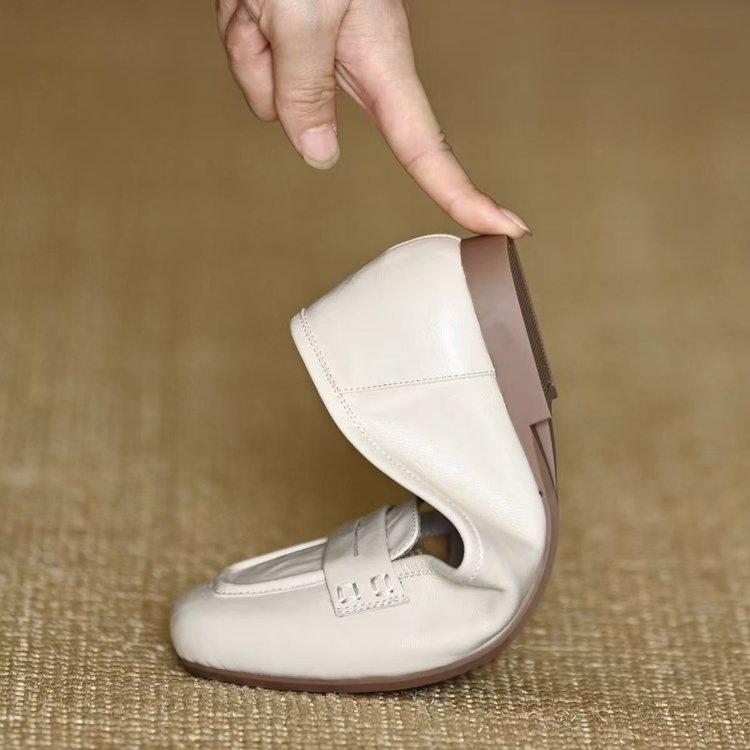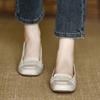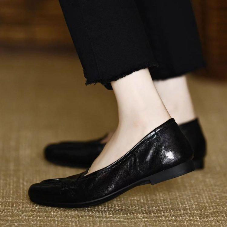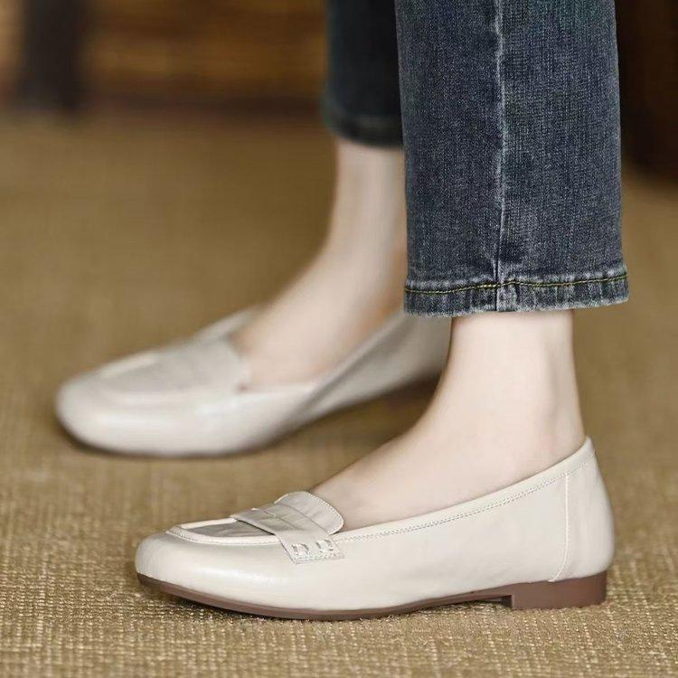 Zapatos planos de corte bajo de piel suave francesa para mujer 2025 otoño nuevos suela blanda sin cordones punta cuadrada mocasines loafers