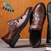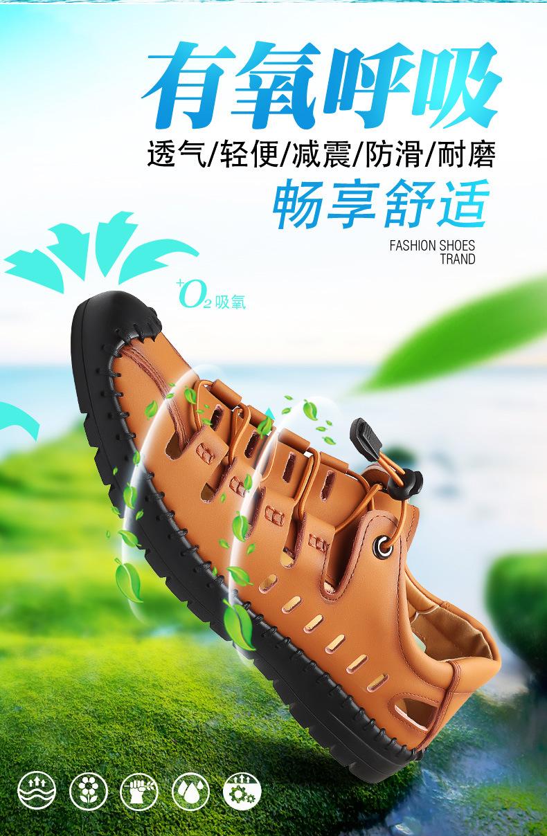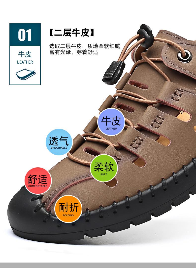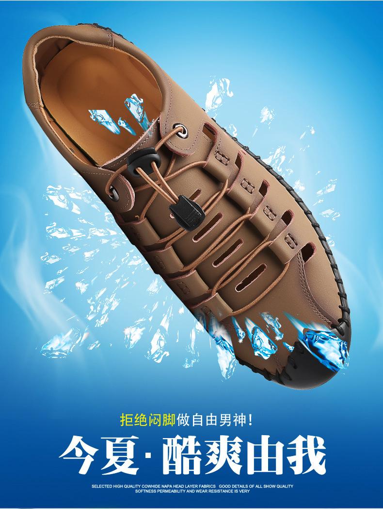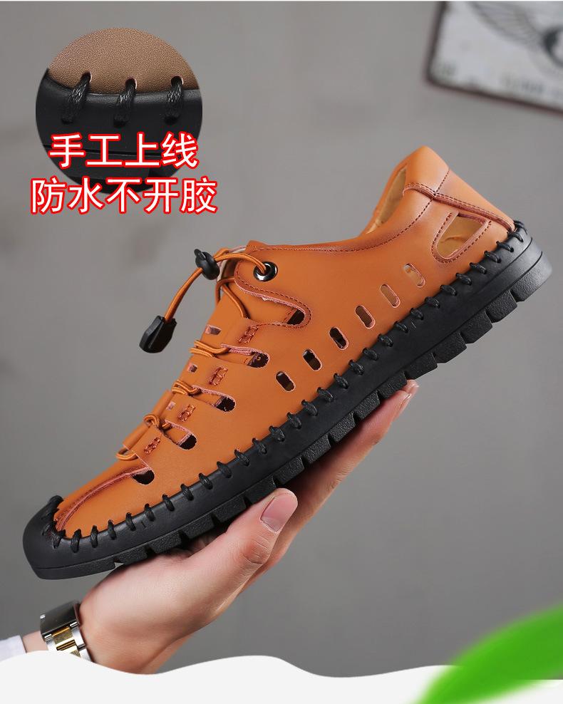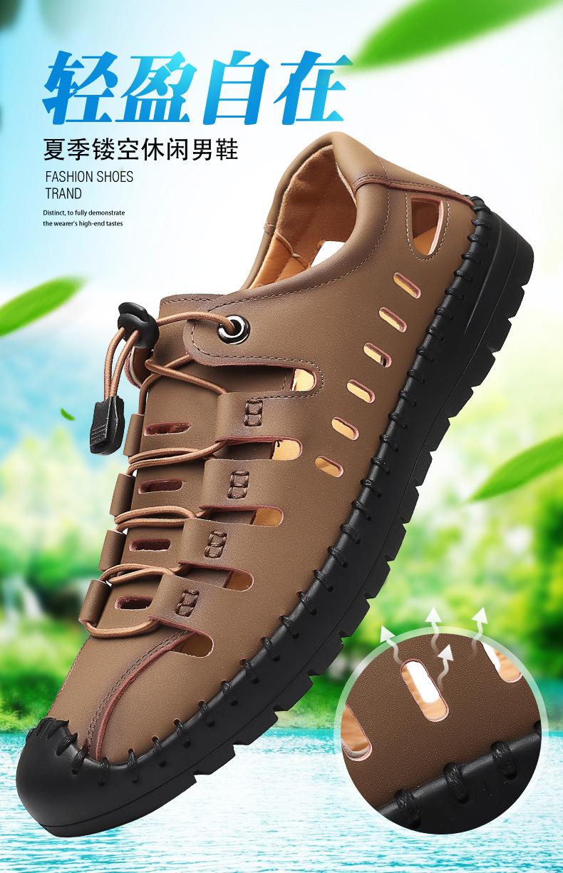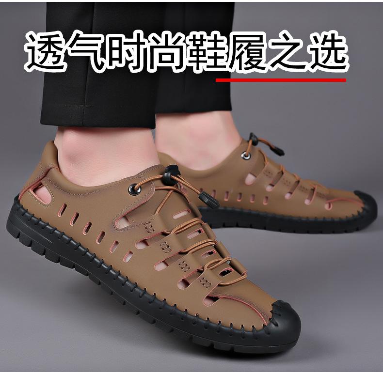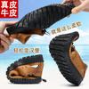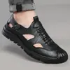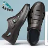 Sandalias de cuero genuino para hombre con envío directo transfronterizo, verano 2025, nuevo, casual, calado, suela blanda, para conducir, con agujeros, zapatos de hombre