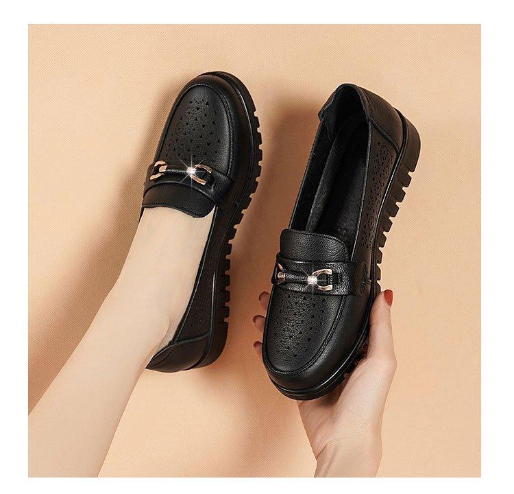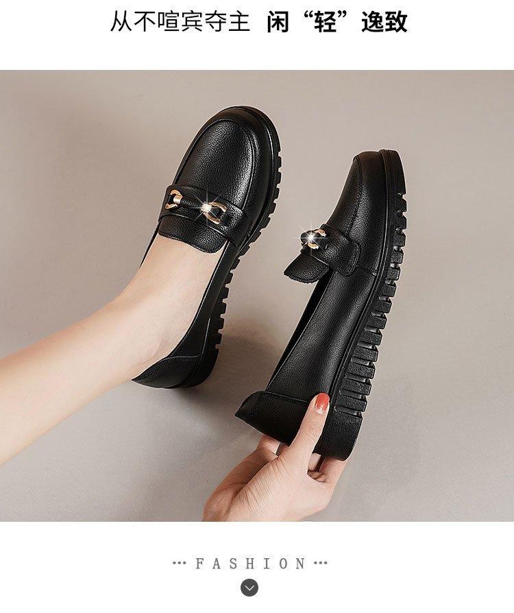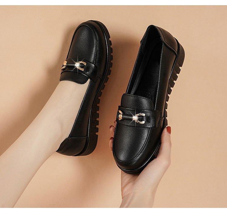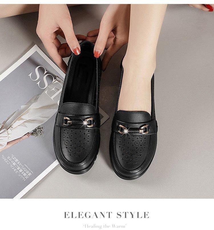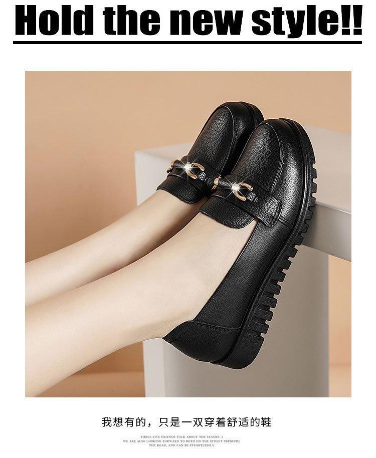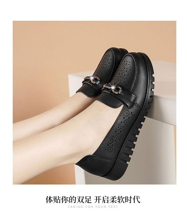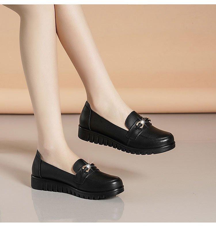 Mocasines Nuevos para Mujer Otoño 2025 Cómodos Versátiles Trabajo Zapatos de Cuero Edad Media y Adulta Mayor Casual Zapatos de Mamá Zapatos Individuales