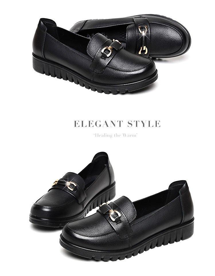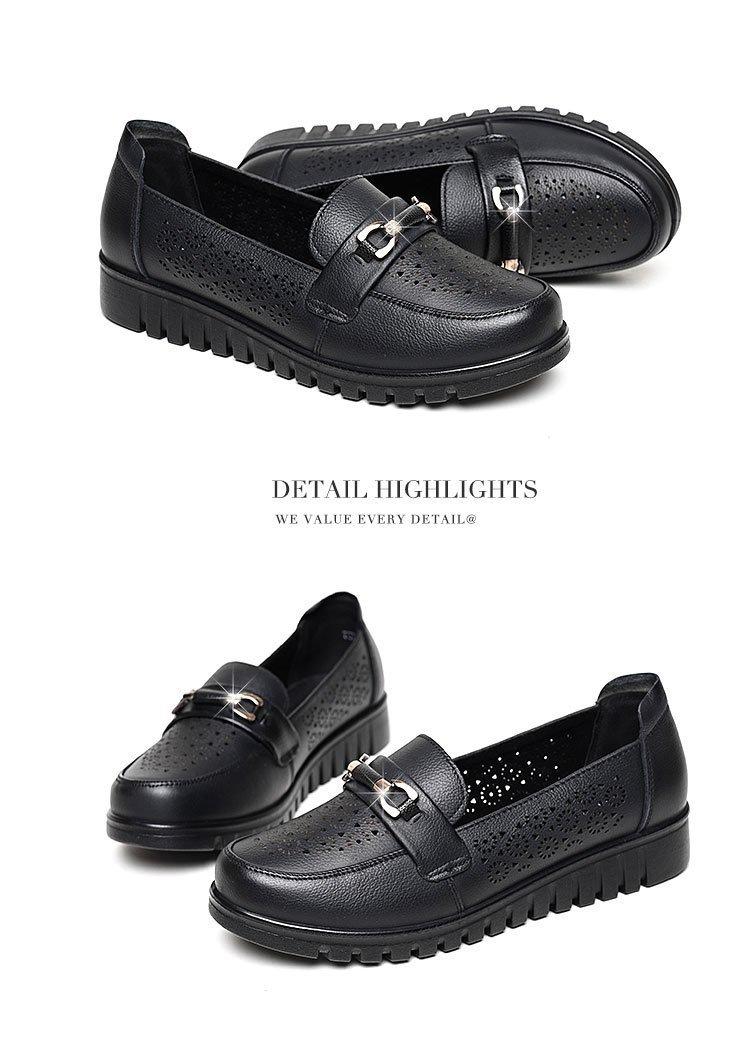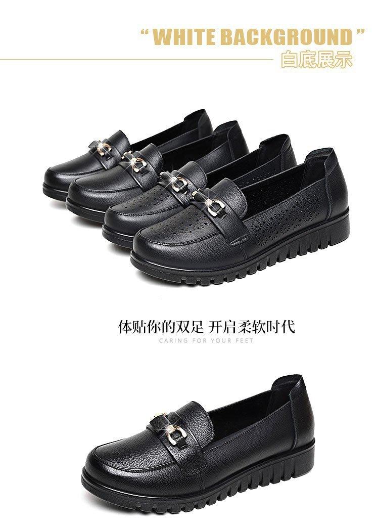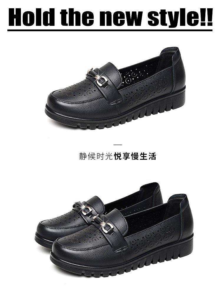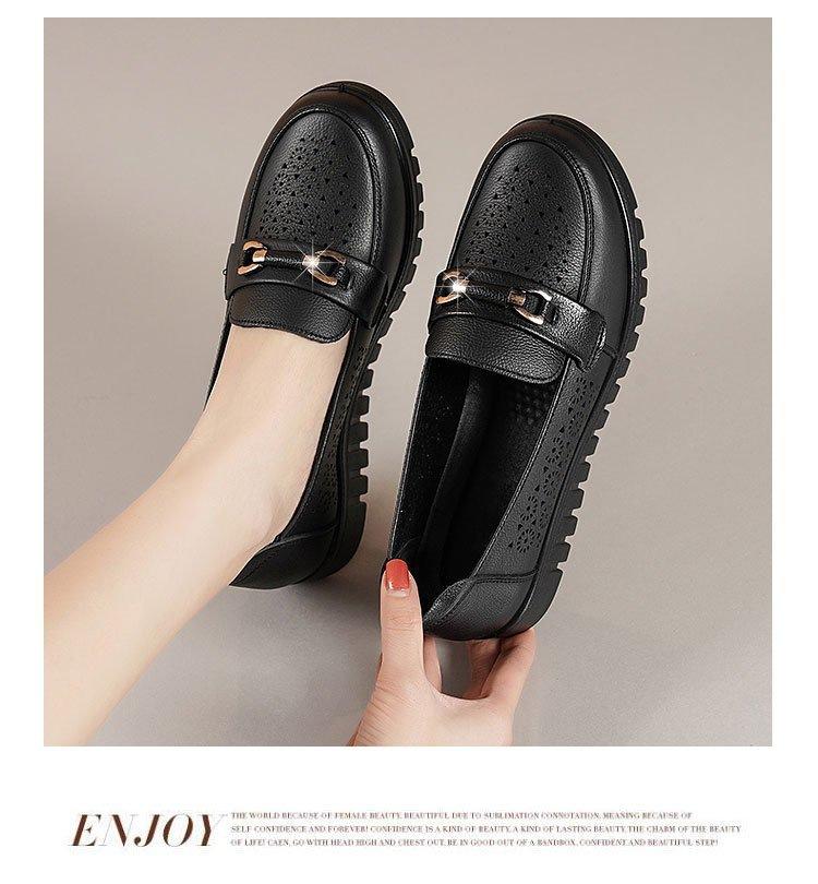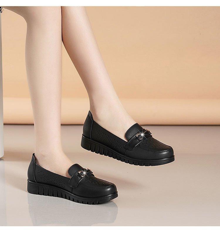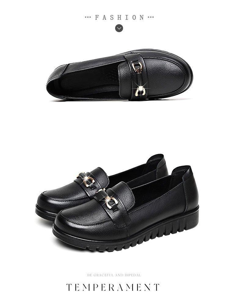 Mocasines Nuevos para Mujer Otoño 2025 Cómodos Versátiles Trabajo Zapatos de Cuero Edad Media y Adulta Mayor Casual Zapatos de Mamá Zapatos Individuales