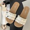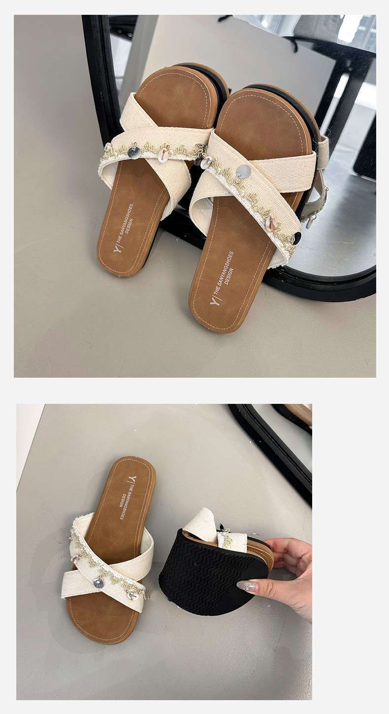 Sandalias planas de tiras cruzadas para mujer Verano para salir 2025 Nuevo estilo de vacaciones en la playa Chanclas Combinación casual Falda Zapatos