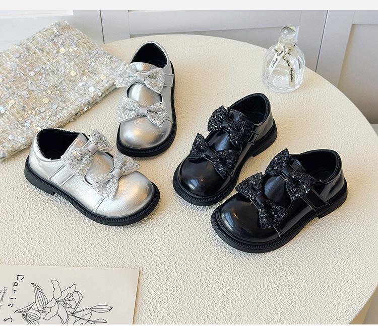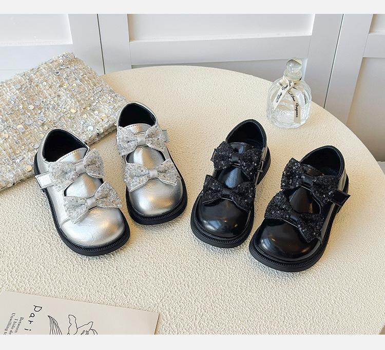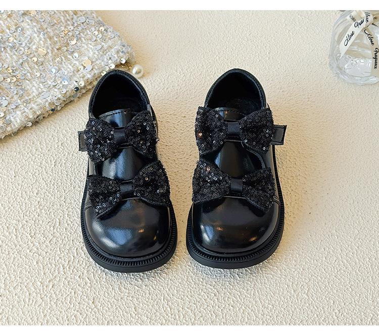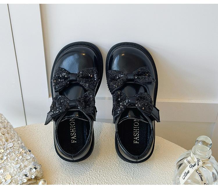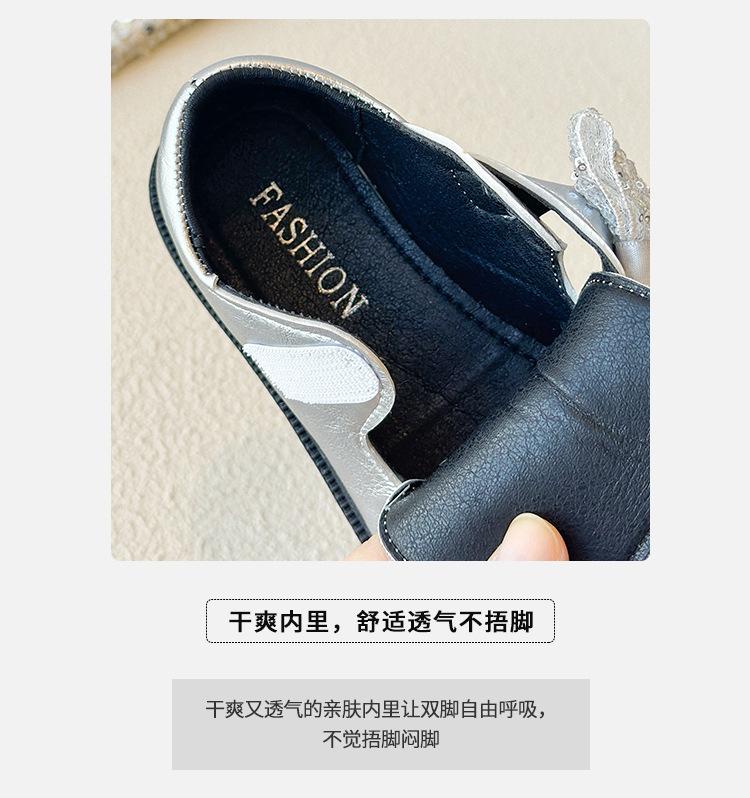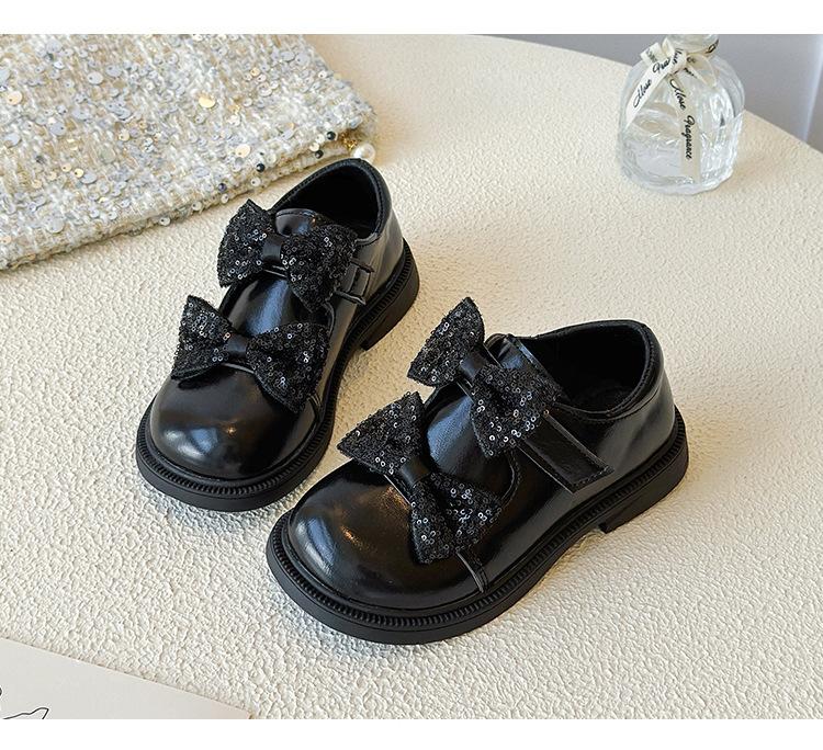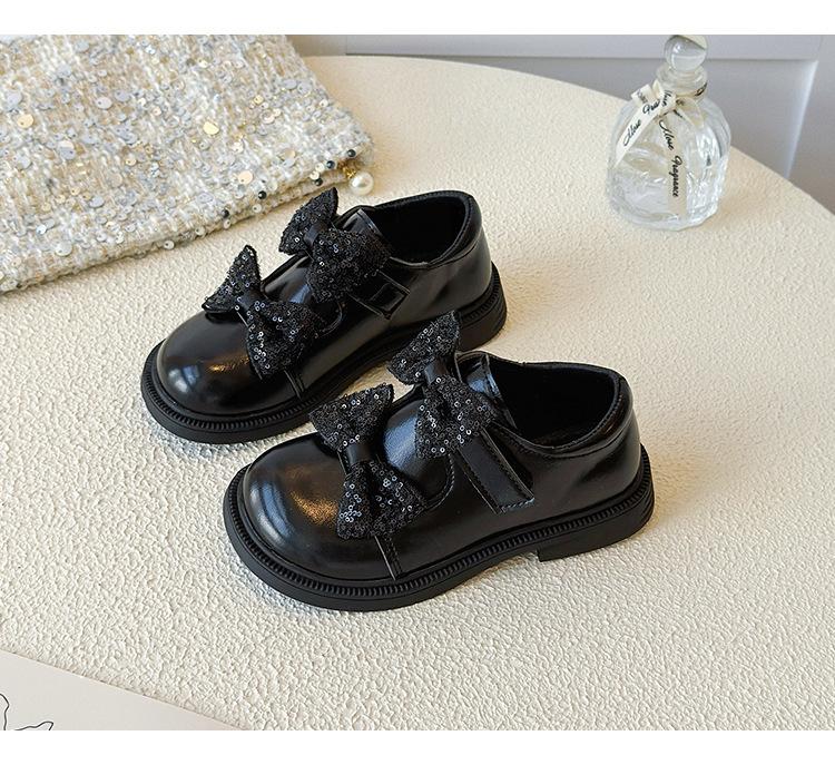Zapatos para Niñas Zapatos de Cuero para Niñas Otoño 2025 Nuevo Estilo Niña Lazo de Cristal Suela Blanda Zapatos de Princesa Negros