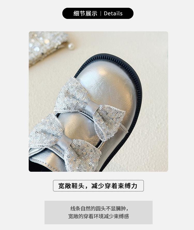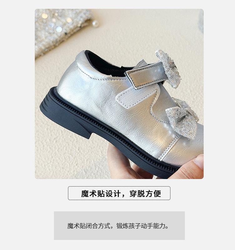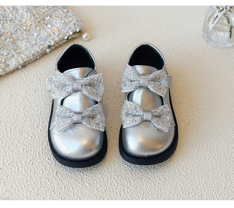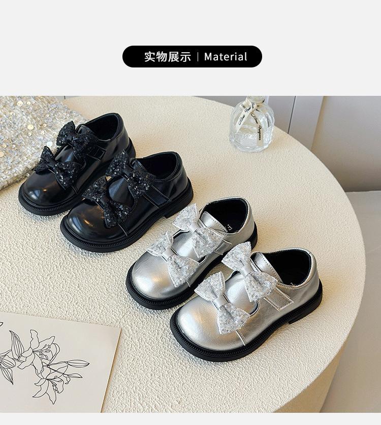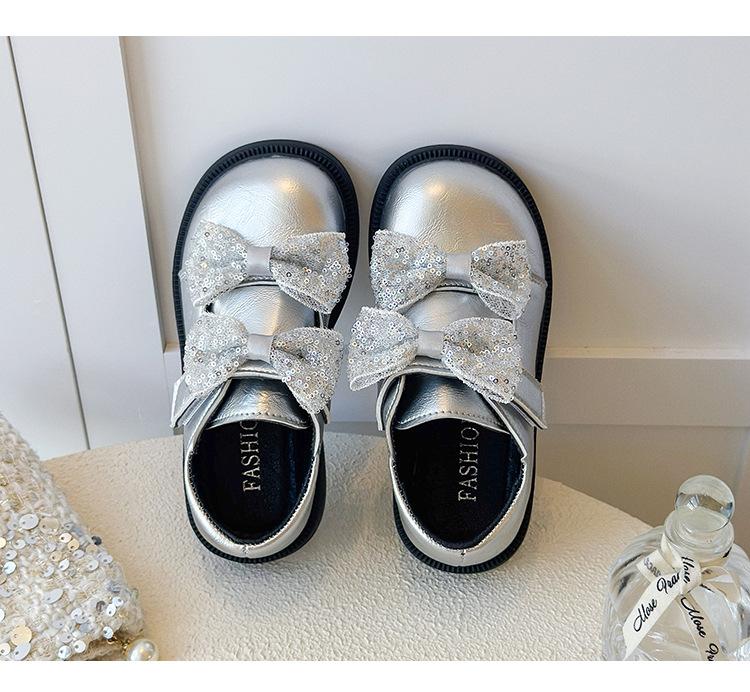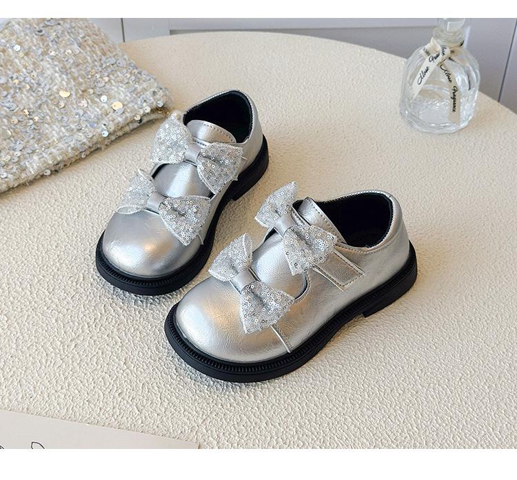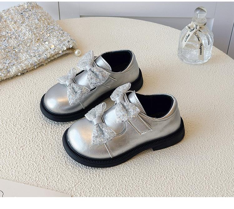 Zapatos para Niñas Zapatos de Cuero para Niñas Otoño 2025 Nuevo Estilo Niña Lazo de Cristal Suela Blanda Zapatos de Princesa Negros