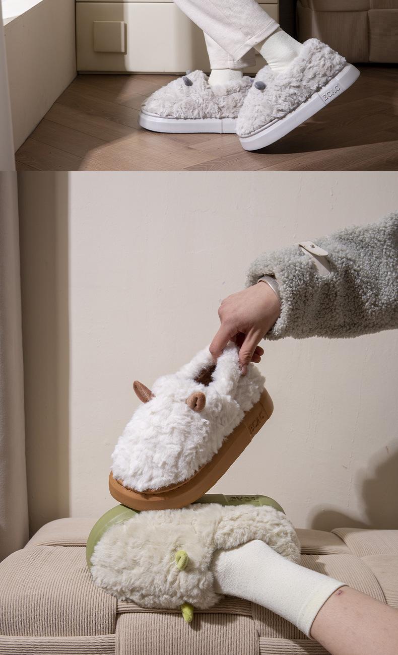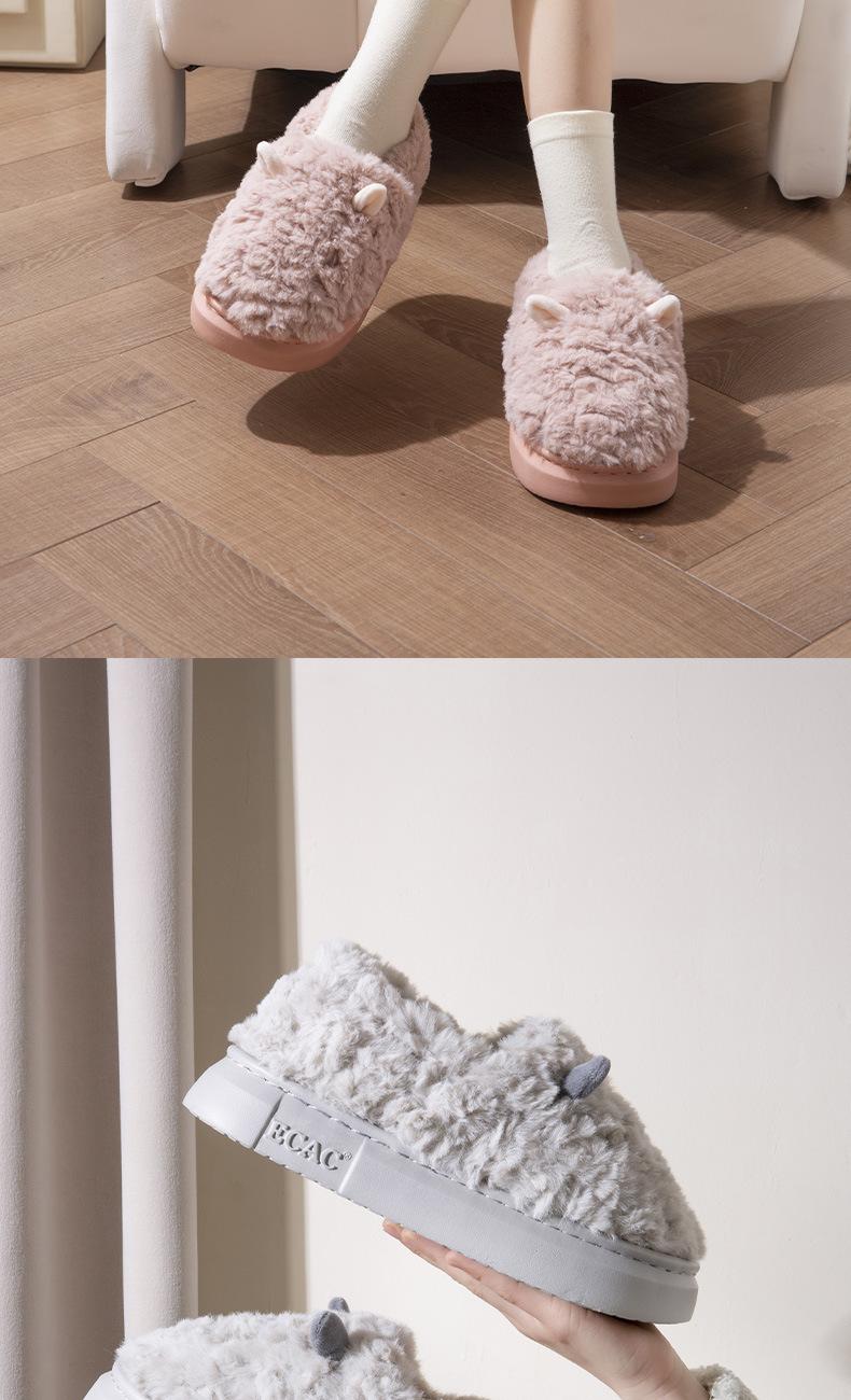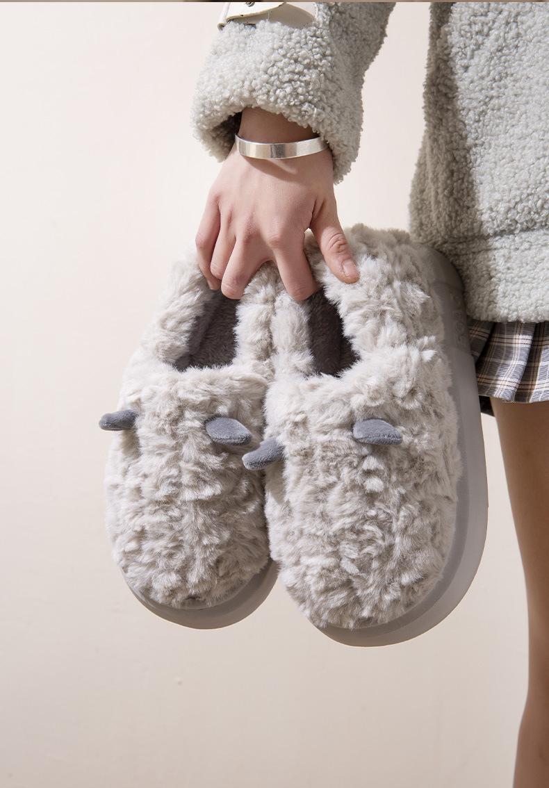 Pantuflas de algodón que cubren el talón para mujer invierno 2025 nuevas de suela gruesa más terciopelo cálidas antideslizantes para pareja para uso exterior zapatos de algodón peludos para hombre