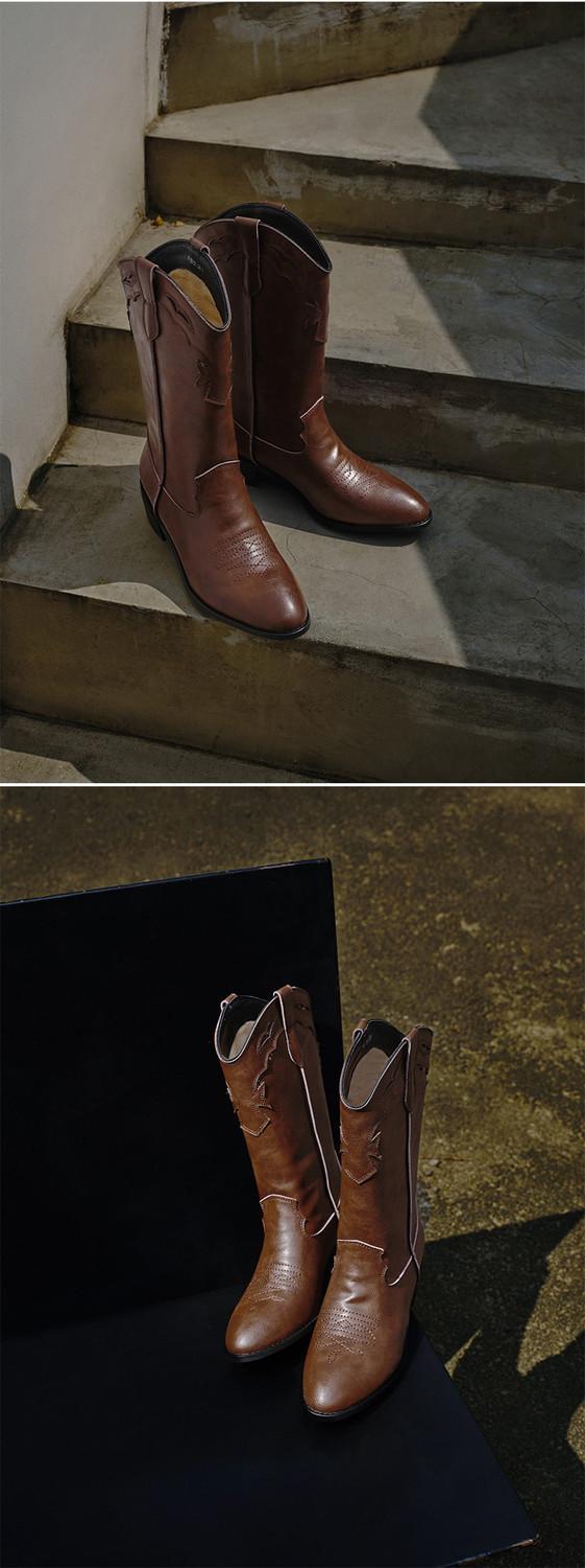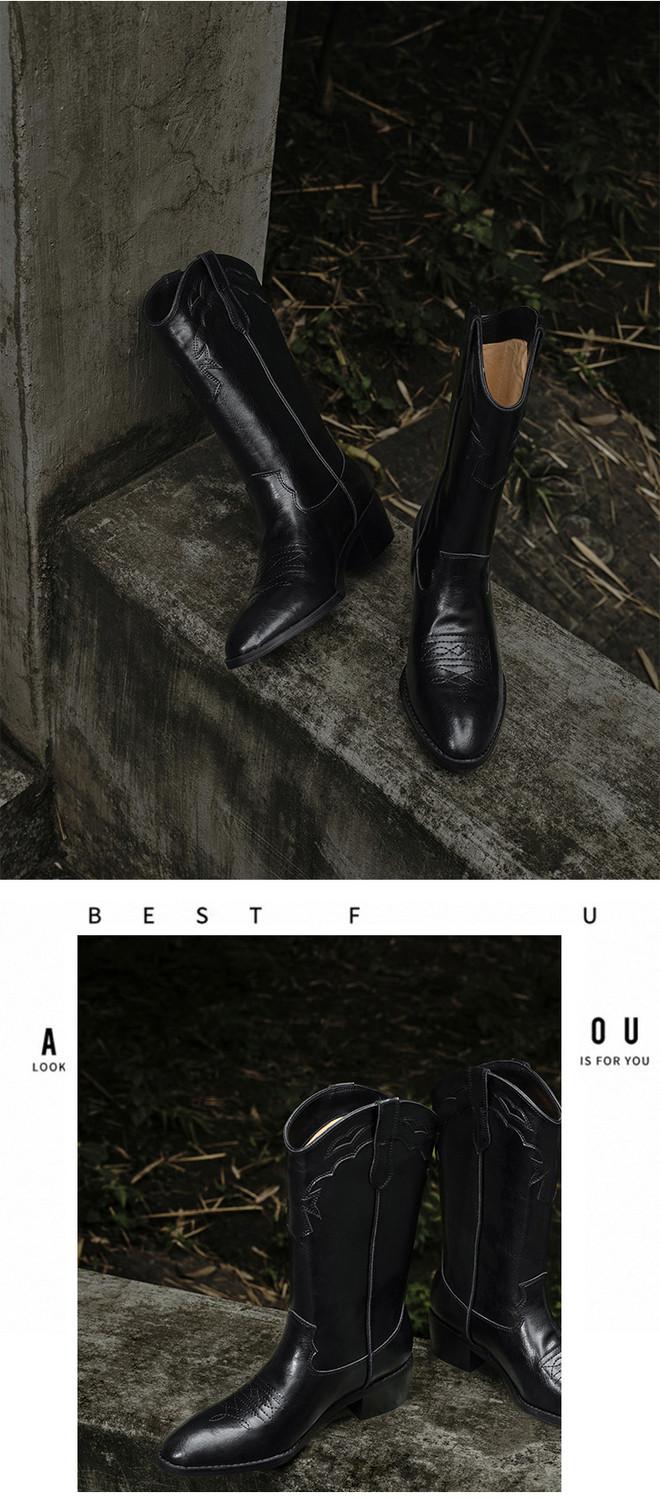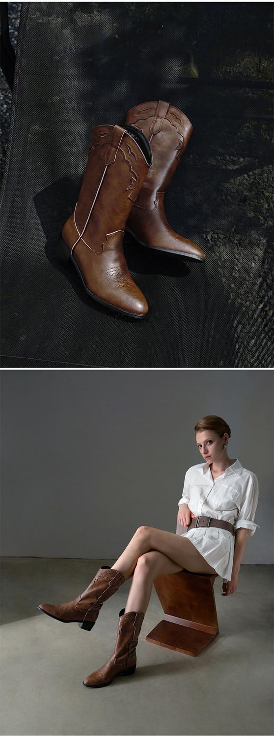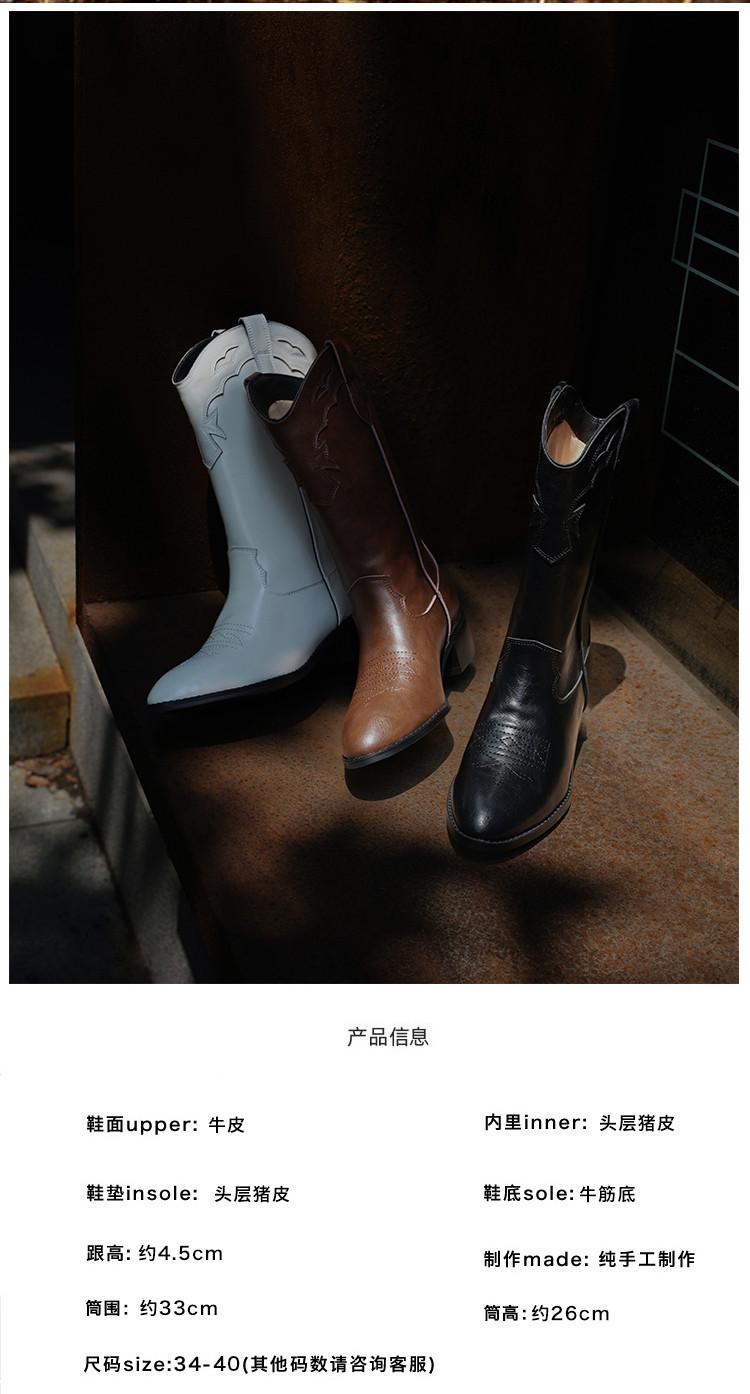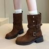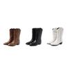 Botas versátiles de tacón grueso hasta la pantorrilla para mujer europeas y americanas 2025 otoño e invierno nuevas botas vaqueras occidentales de pierna ancha botas cortas casuales